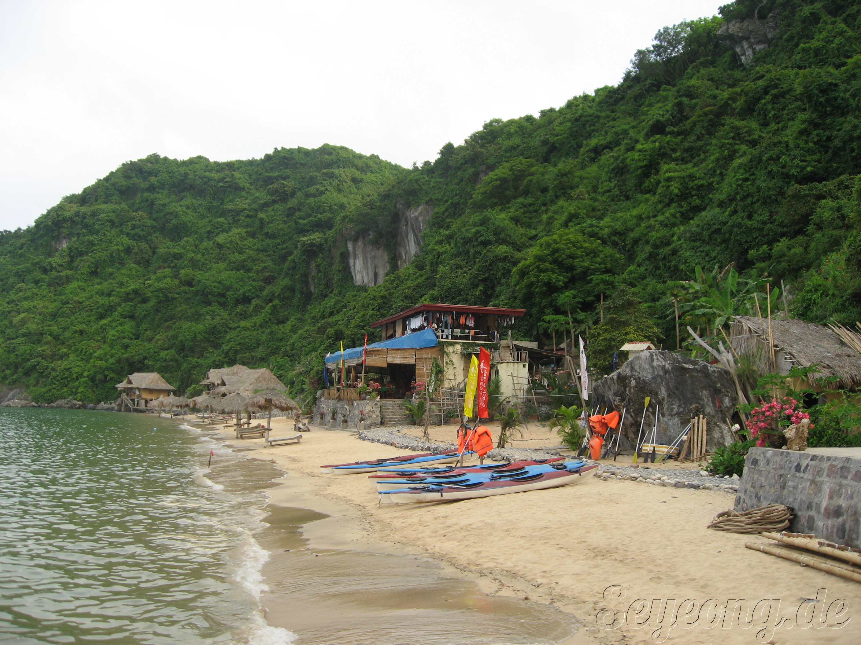 우리가 2박을 묵을 섬은 개인 소유의 인공섬이다. 하롱베이의 섬 위치상 해변을 갖는 섬이 없는데 인공적으로 모래를 날라 해변을 만들고, 그 안에 방갈로와 레스토랑을 만들었다.