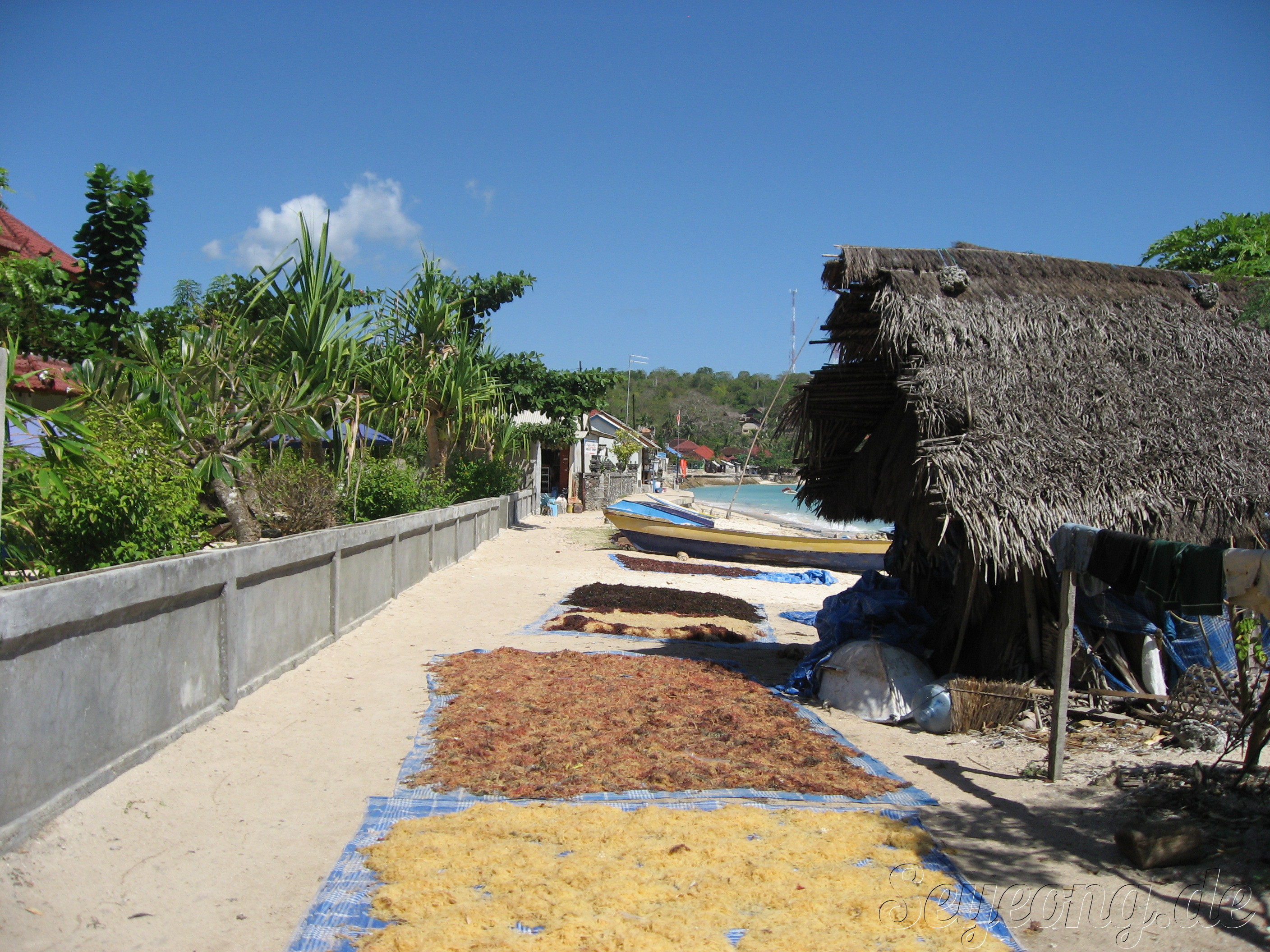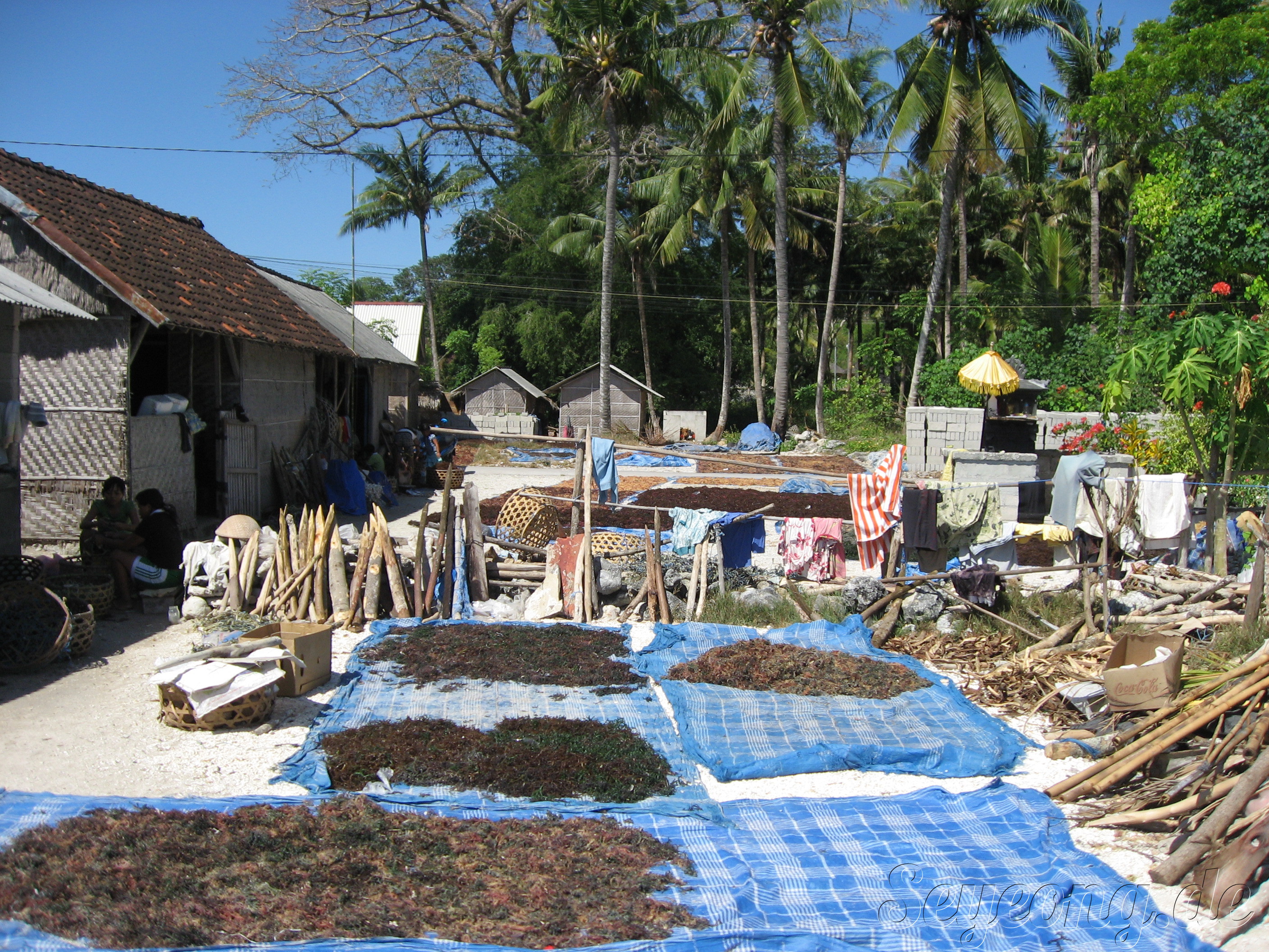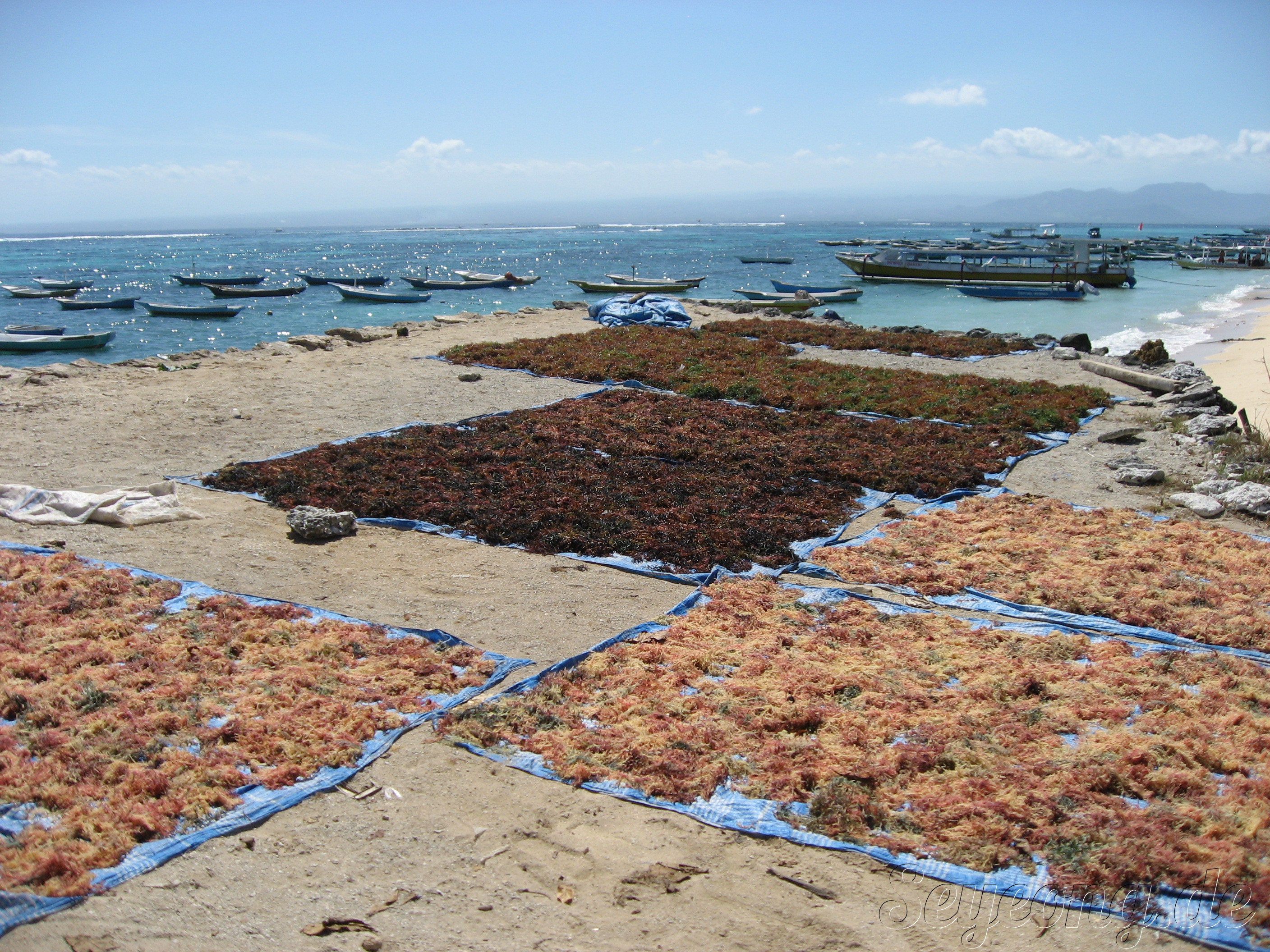 이곳 해변은 관광객이 아닌 주민들의 해초 말림으로 인해 점령당하였다.