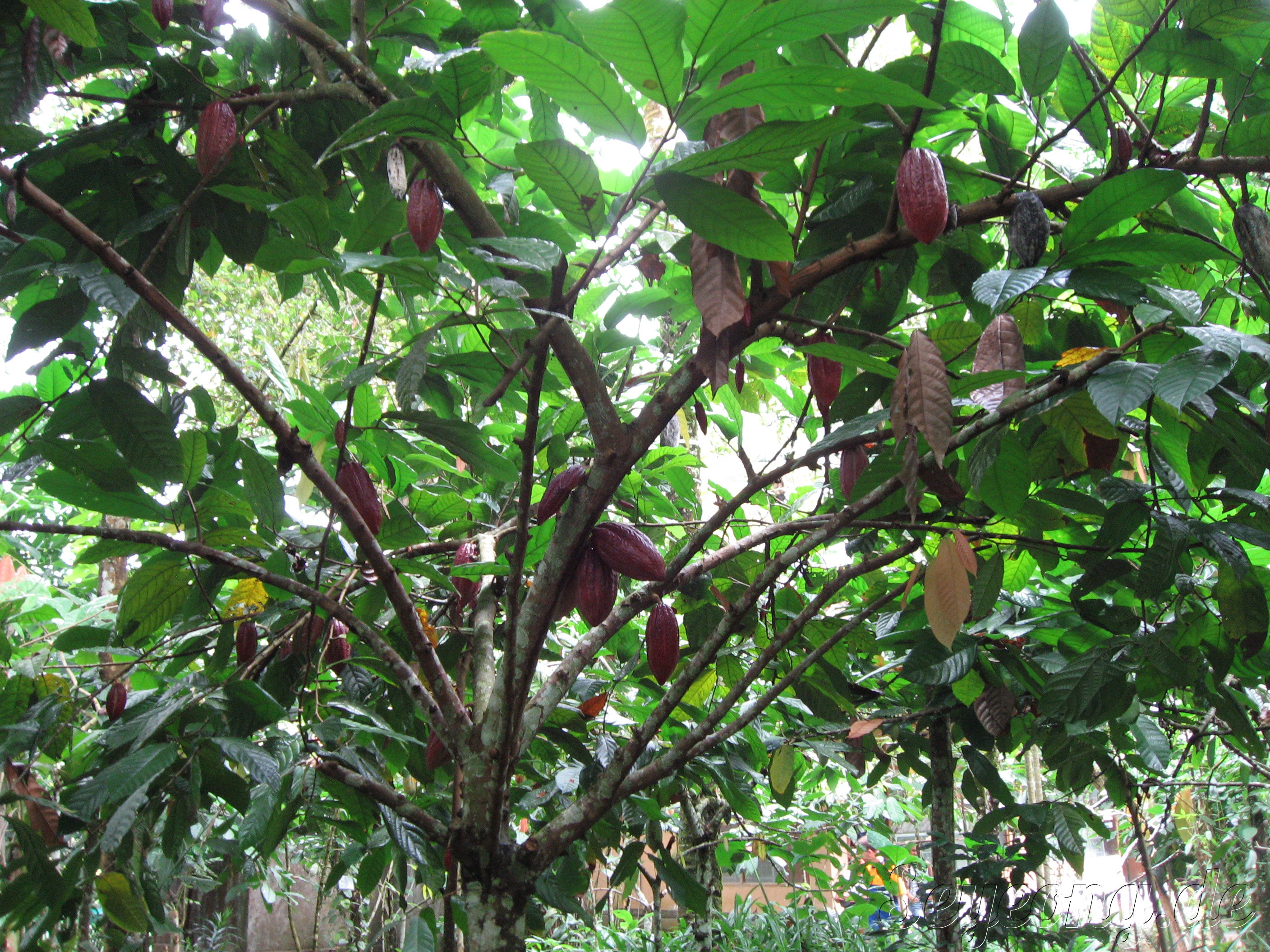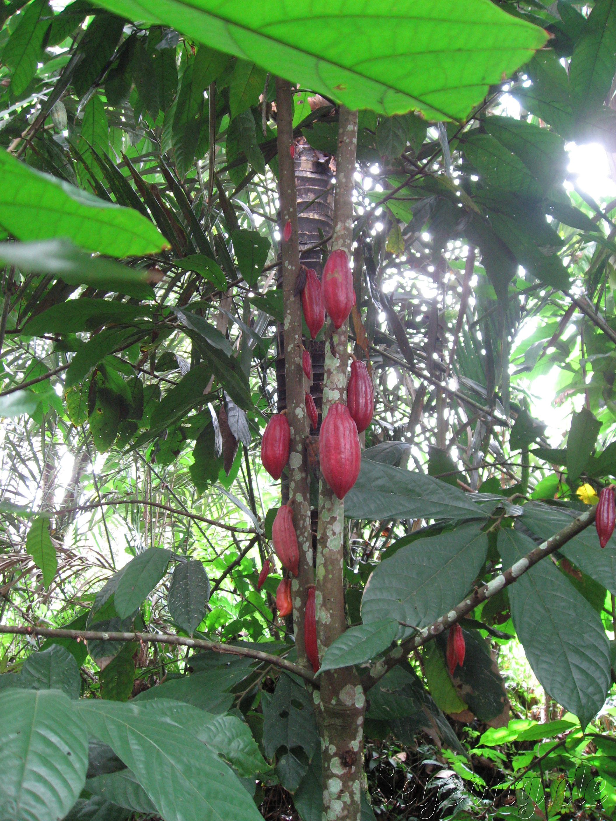주렁 주렁 달려 있는 초콜렛의 원재료 카카오 콩들.