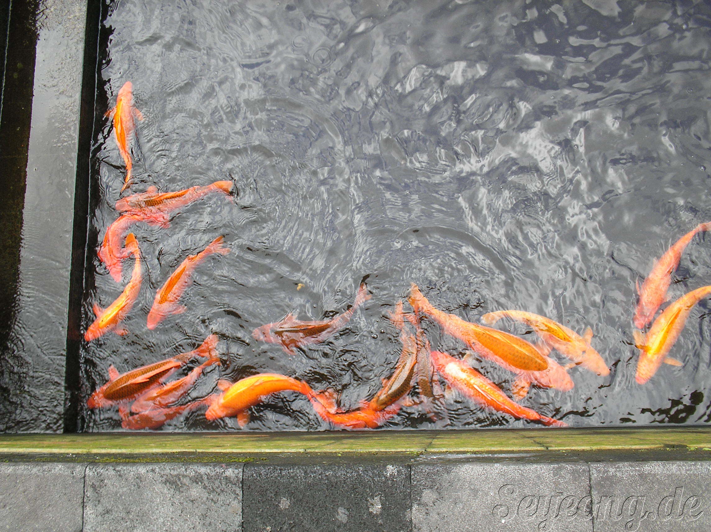 사원 안에 여러 개의 오두막을 지난 뒤 내려가면.