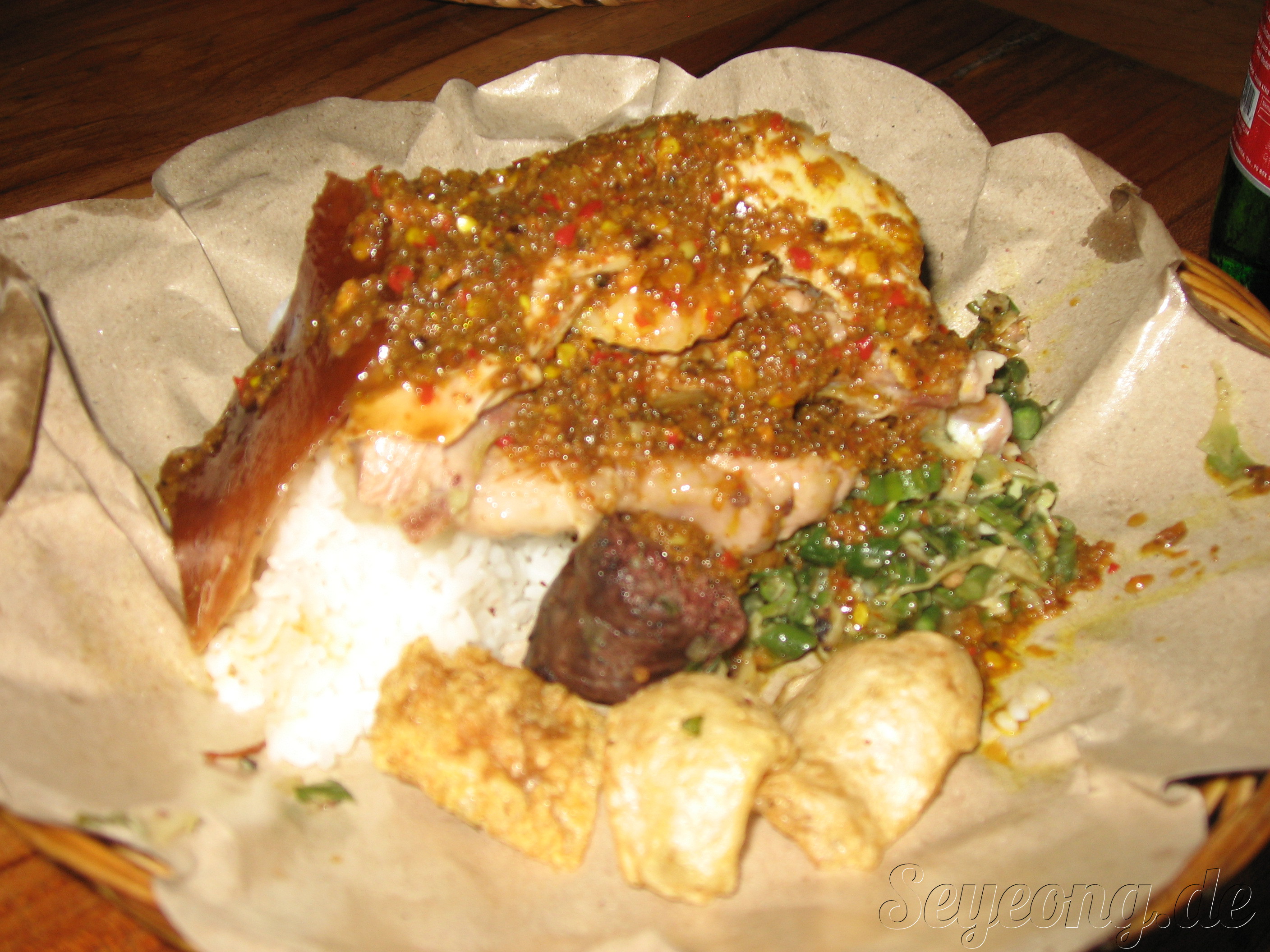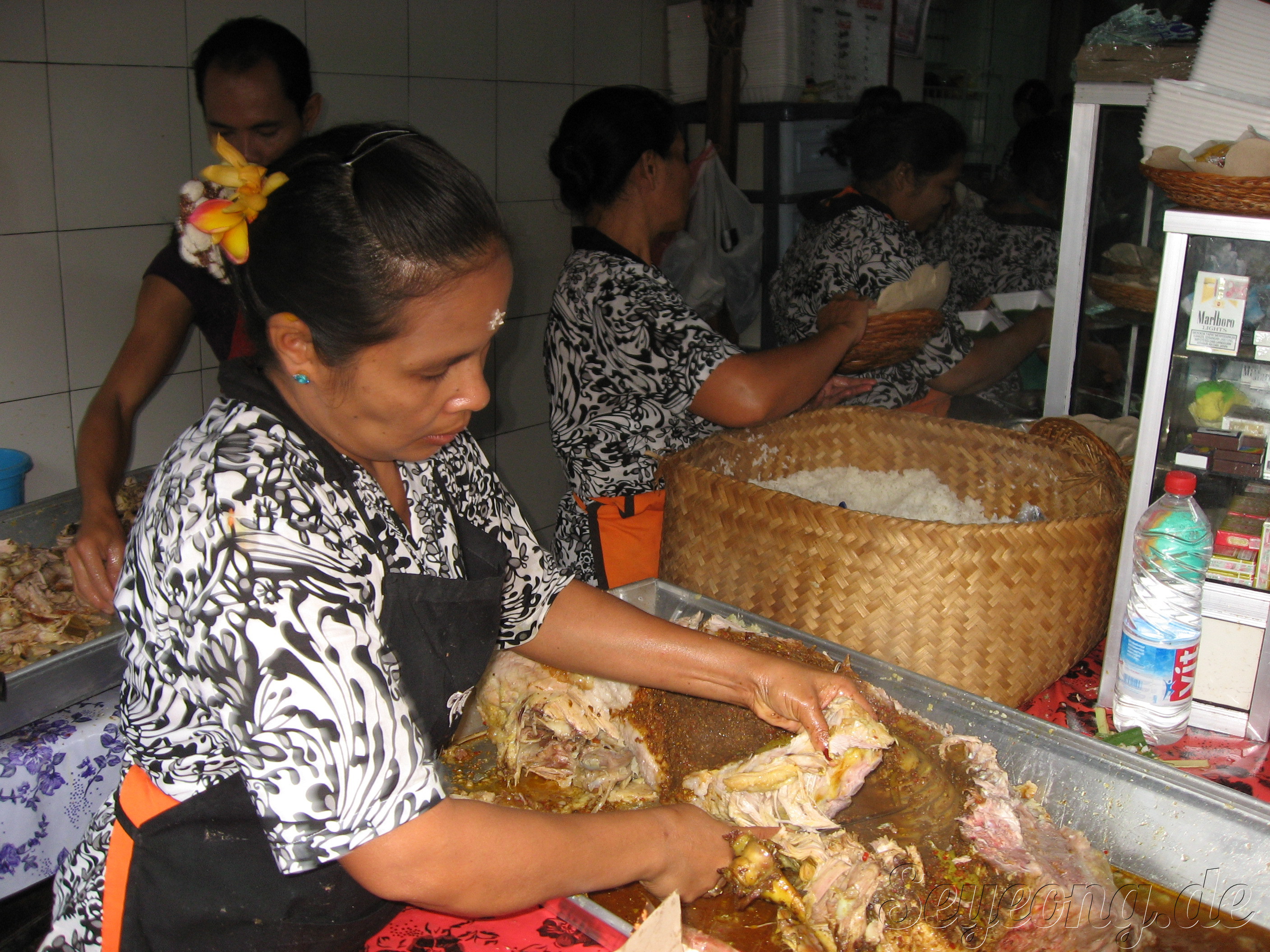 발리 고유의 돼지 요리이지만 그 맛은 외국인을 사로잡을 만한 입소문을 타서 지금은 줄을 서야만 먹을 수 있는 맛집이 되었다.