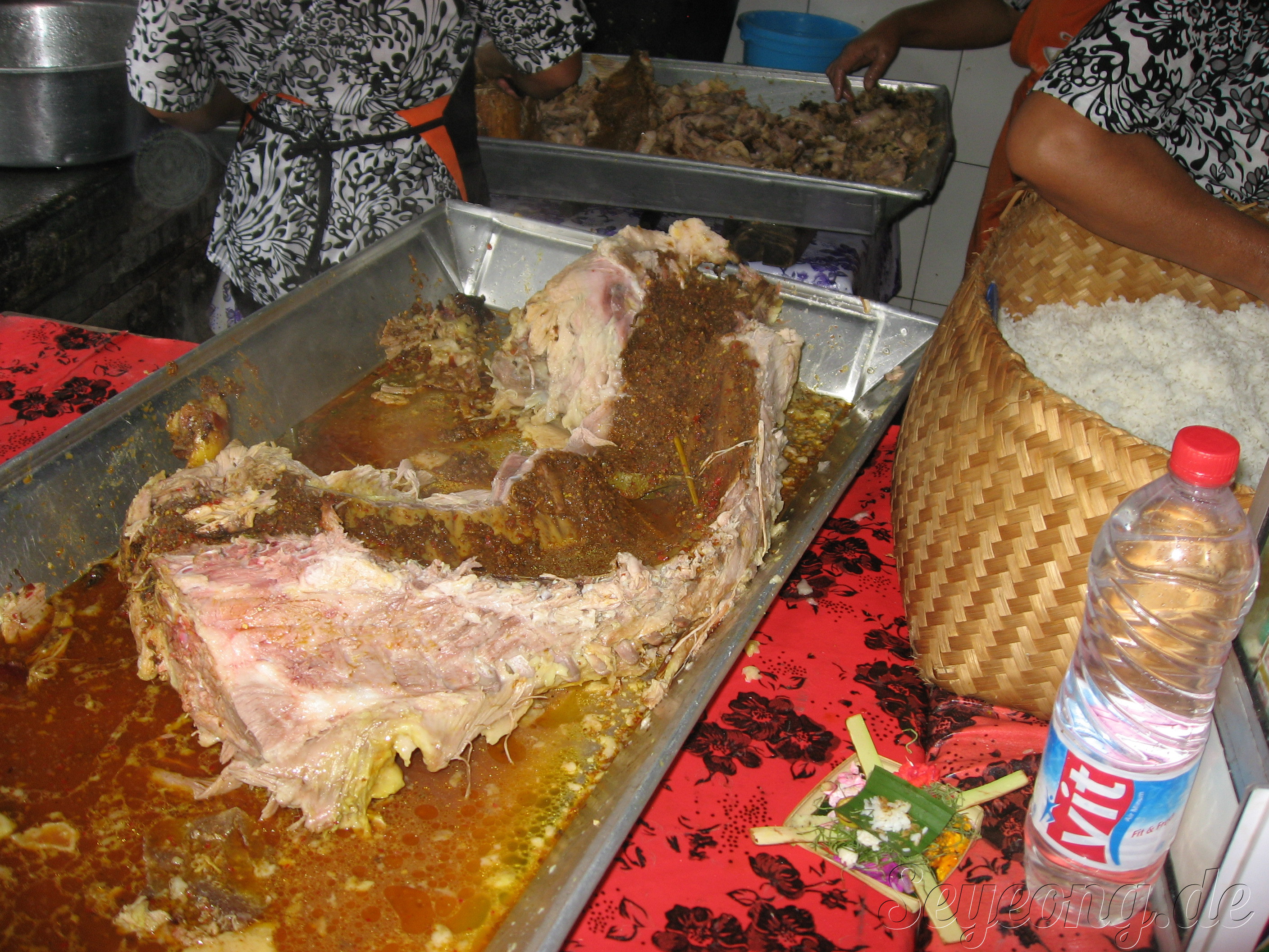 각종 인도네시아의 향신료로 요리된 돼지요리.