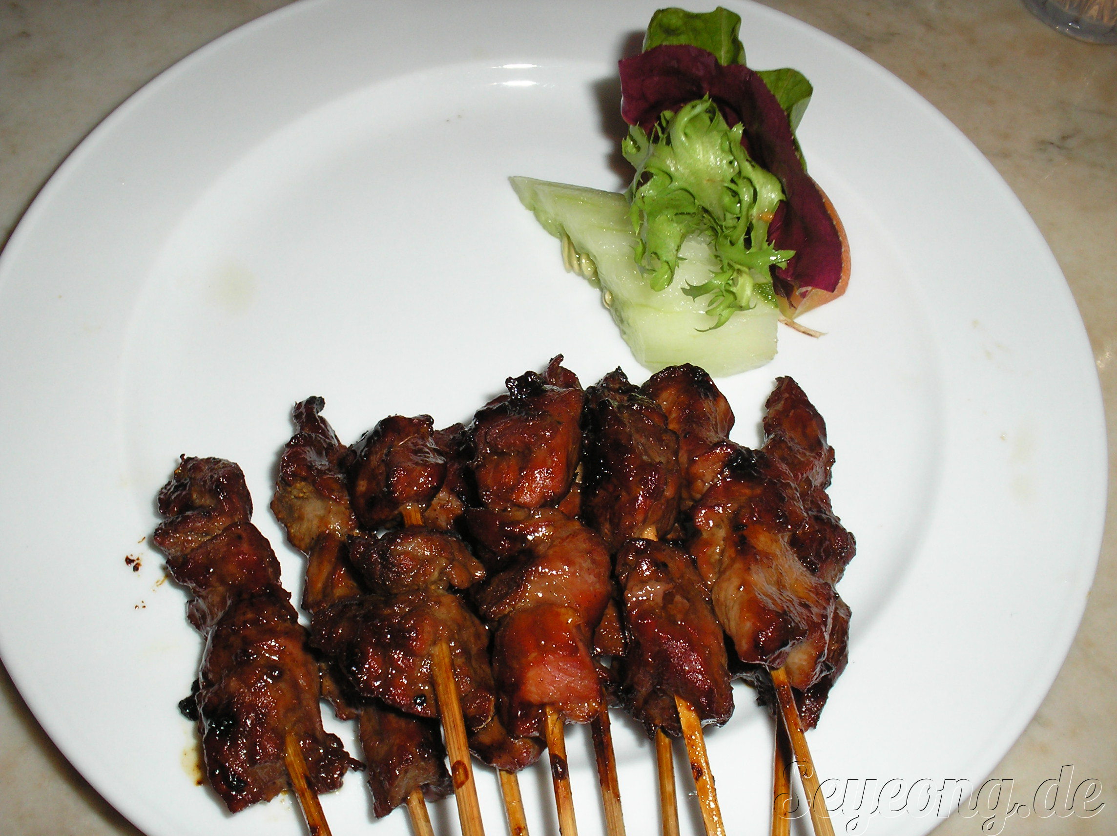 사테이는 우리의 꼬치와 비슷한 요리로 구워진 돼지고기에 땅콩 소스등 여러 가지를 찍어먹을 수 있다.