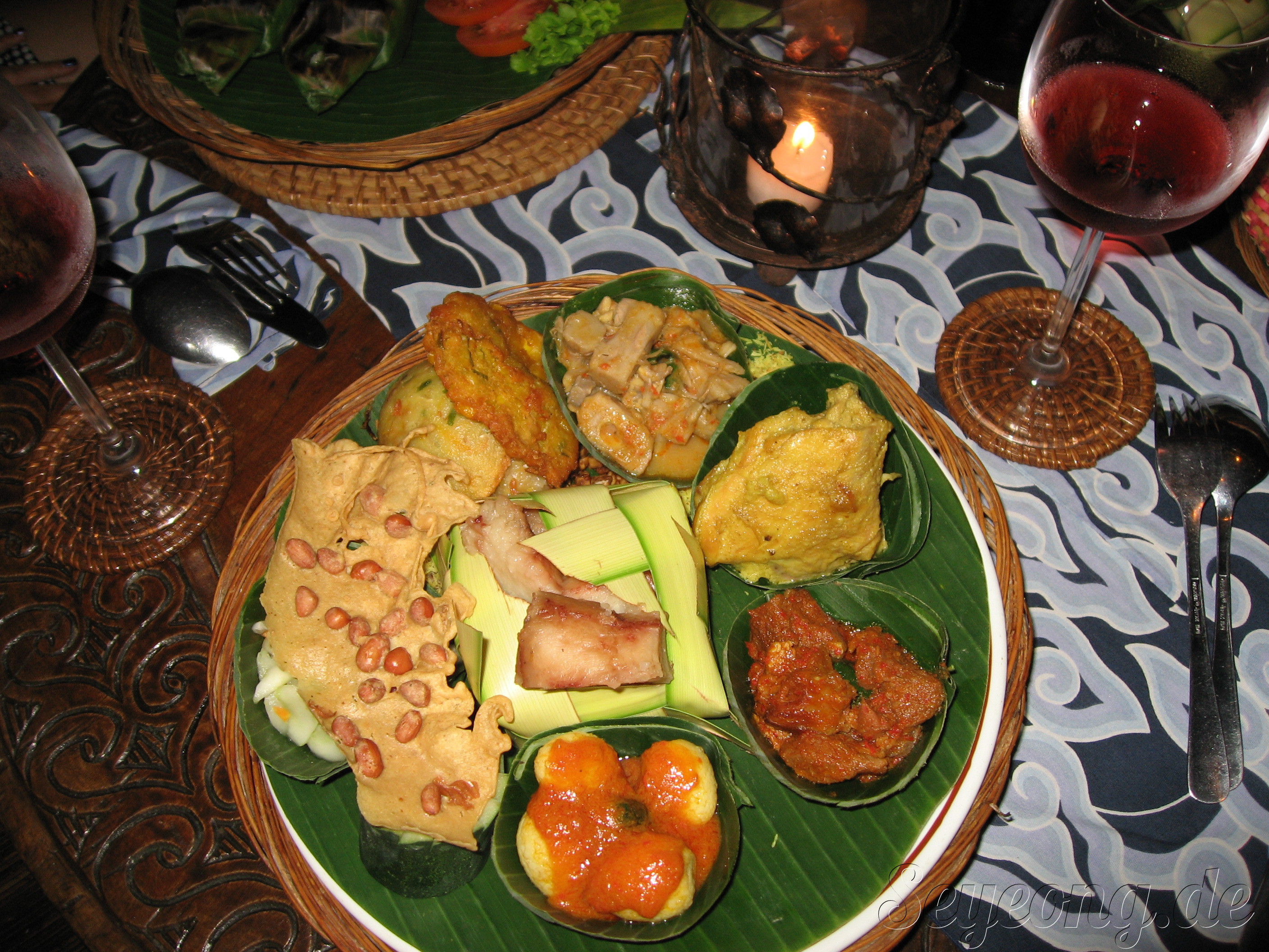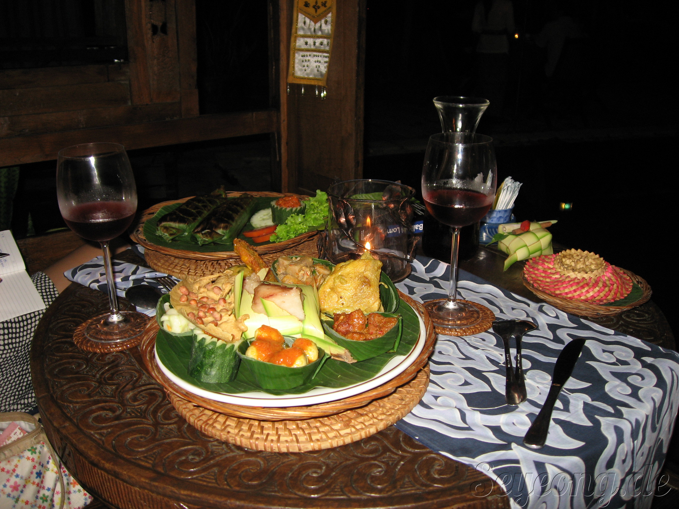 와인과 함께한 다양한 발리 음식들.