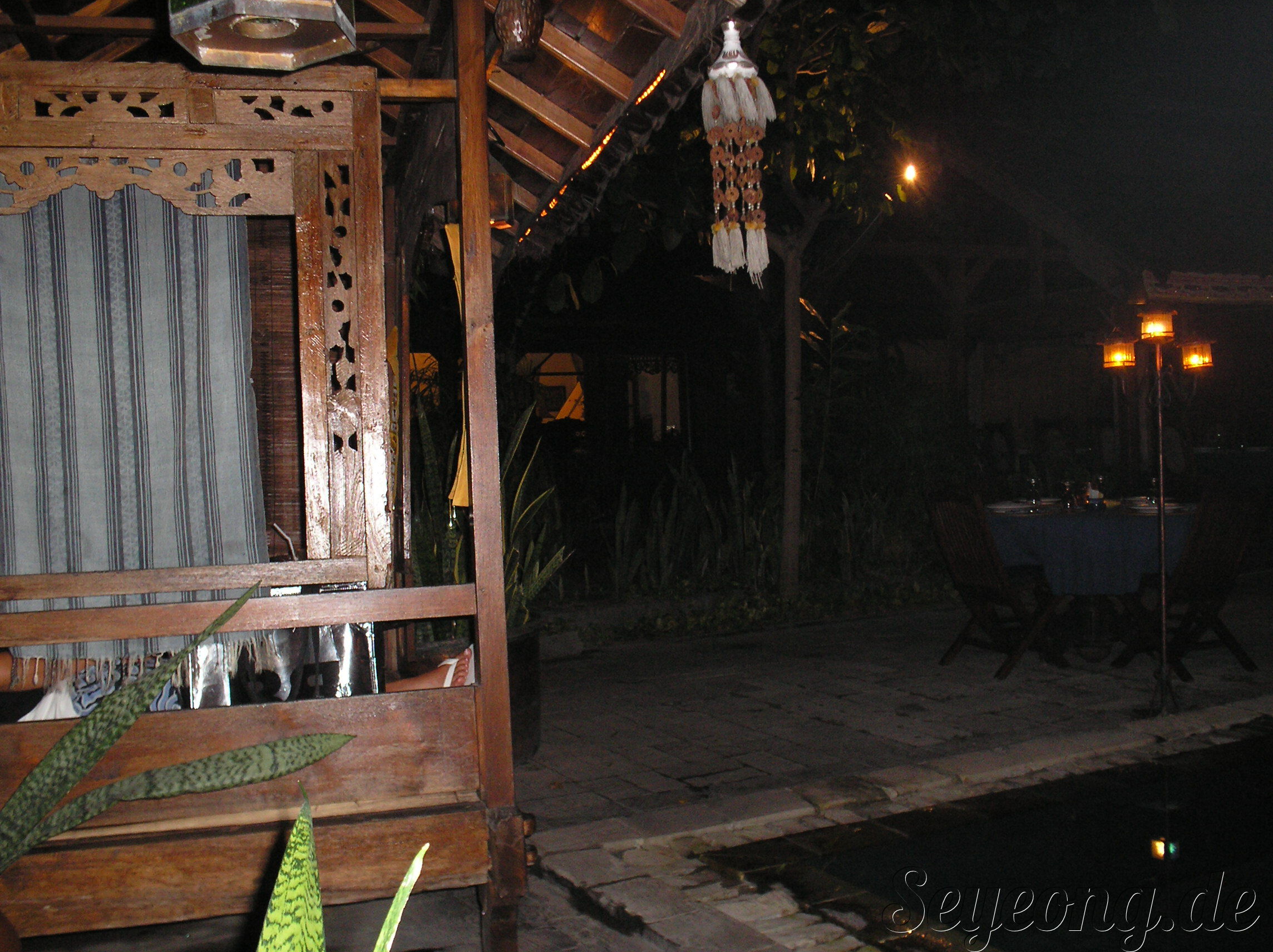 은은한 촛불이 켜진 지붕이 달리고 오픈된 우리의 오두막 같은 곳이나 아니면 수영장 옆의 테이블에서 음식을 시킬 수 있다.