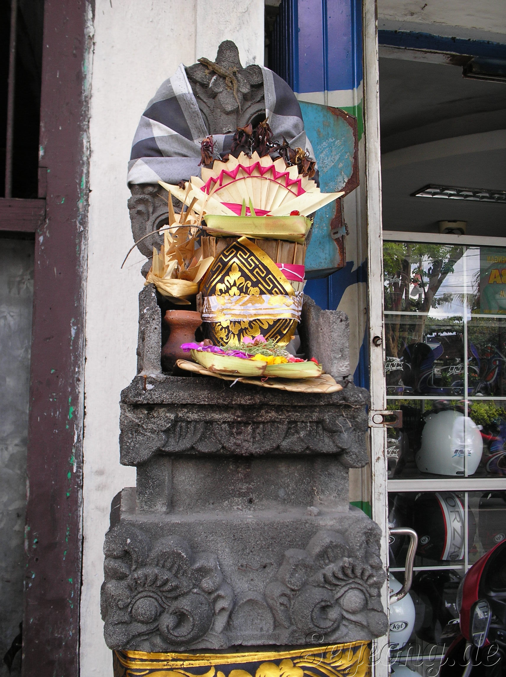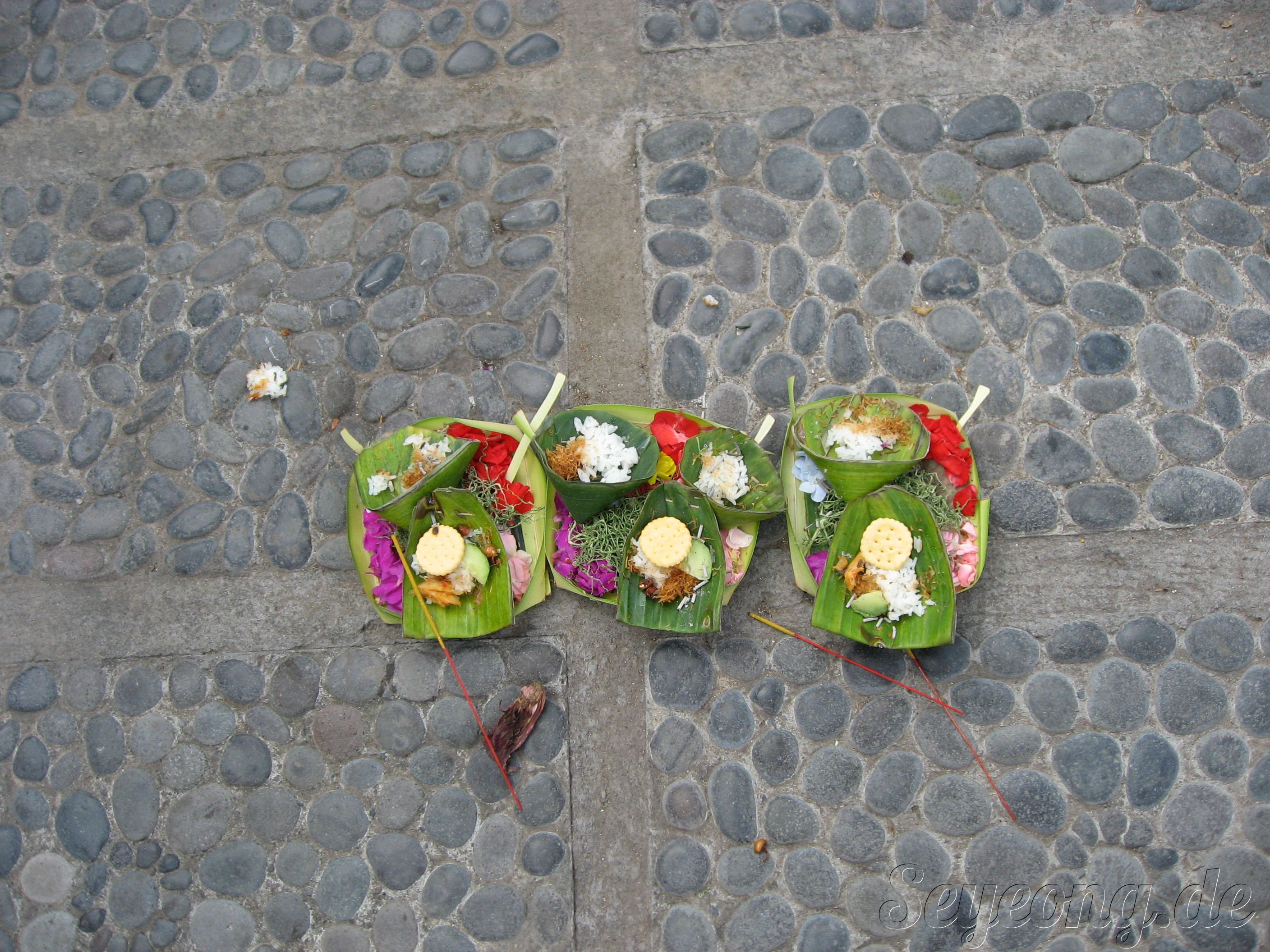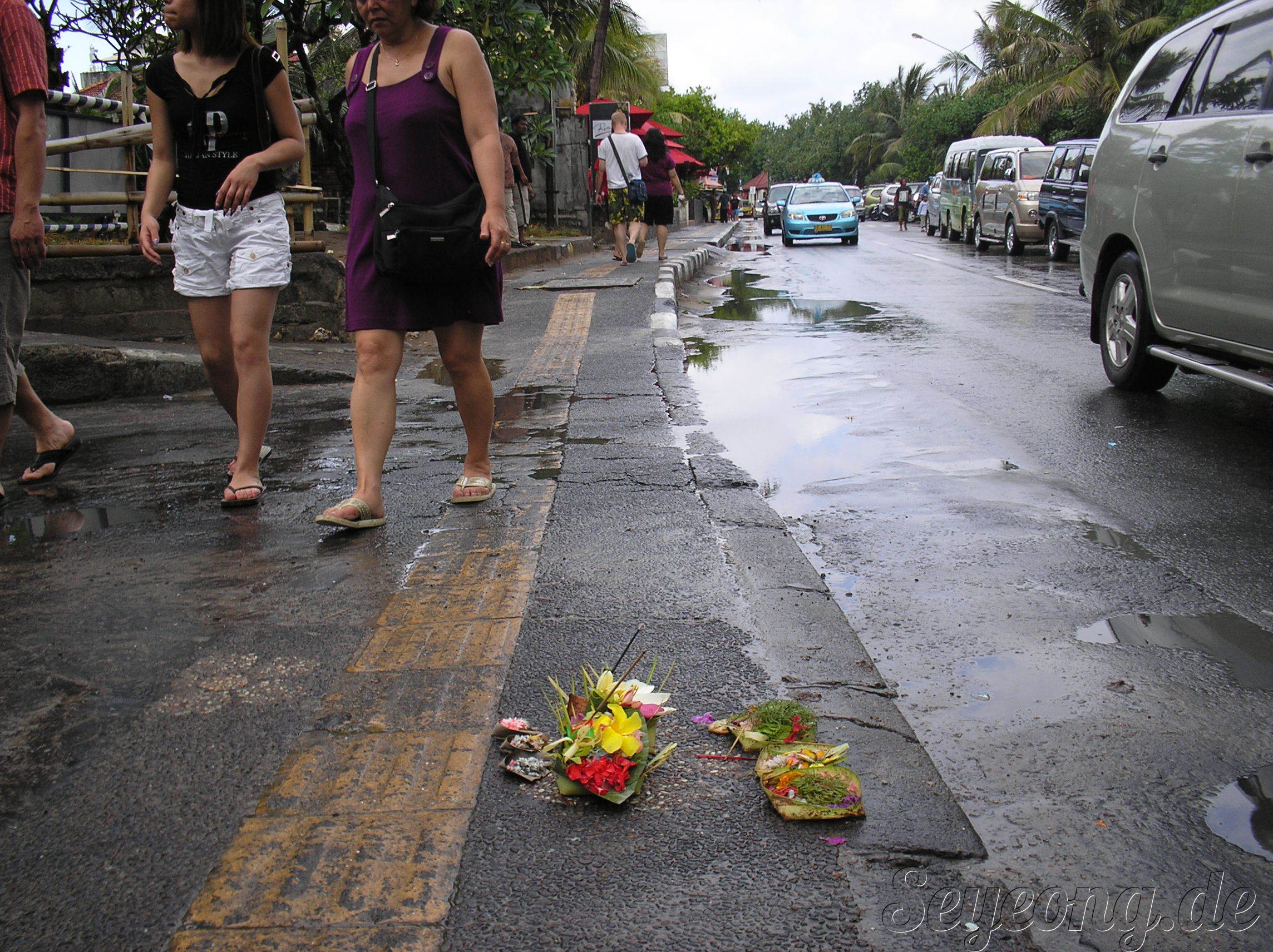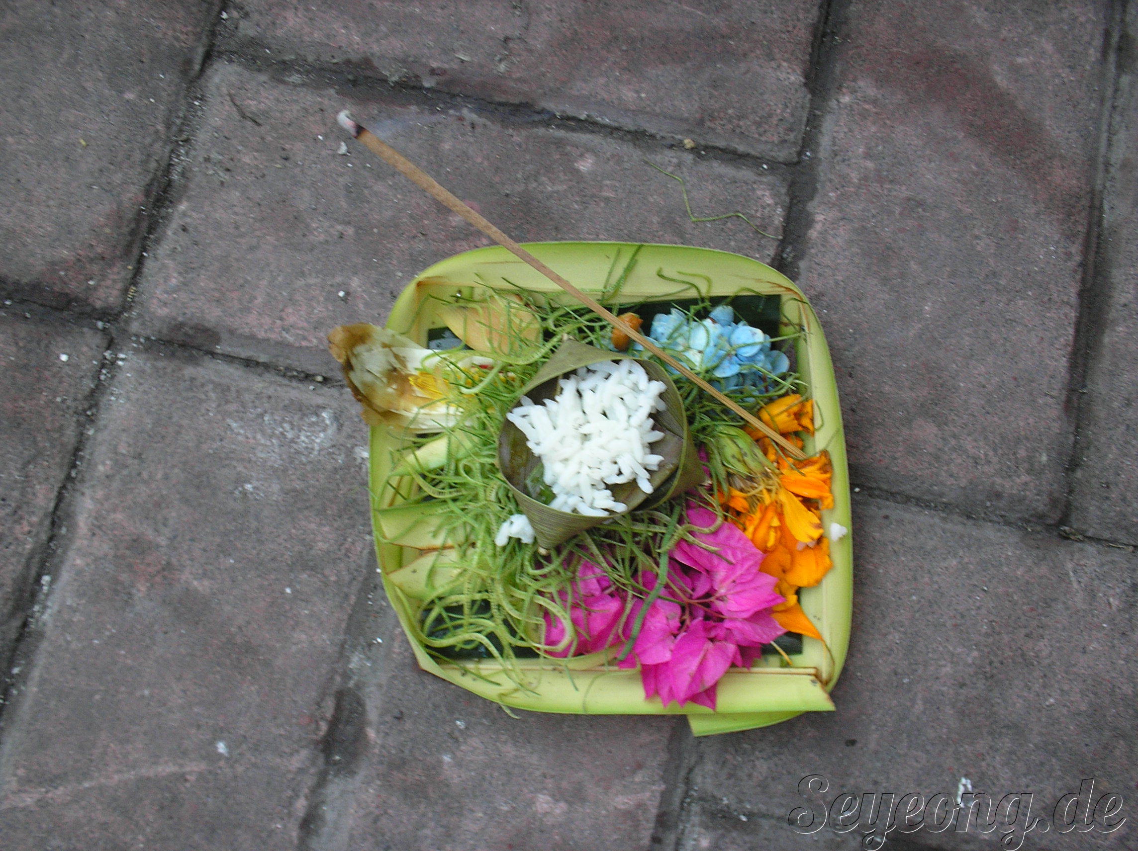 도착하자 마자 느낀 발리에서는 조그마한 바나나 껍질에 담긴 수많은 꽃과 작은 음식들을 거리에서 볼 수 있다.