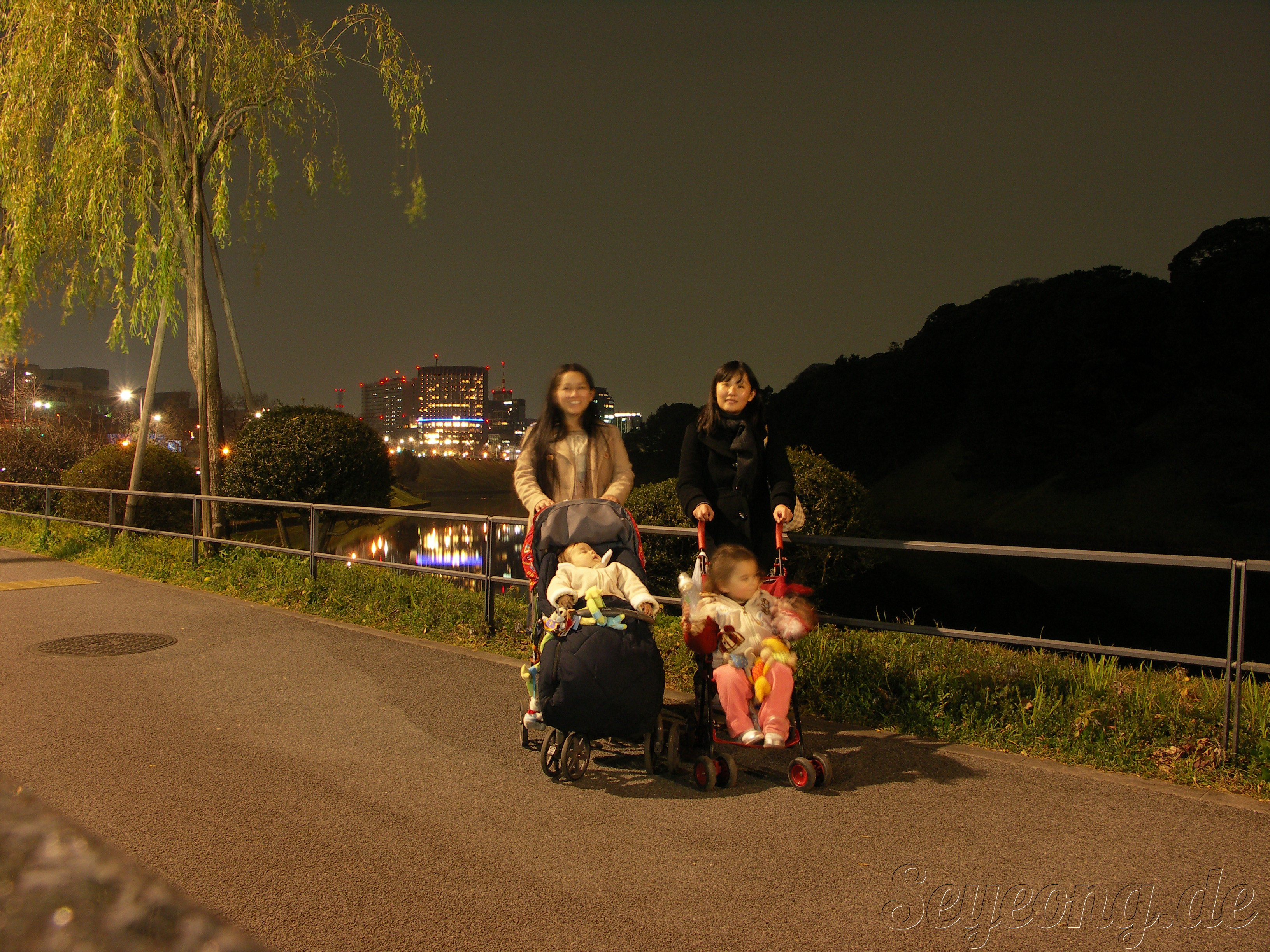 시내 이곳저곳을 유묘차 끌고 다니고, 도쿄 성도 보자 어느새 저녁.