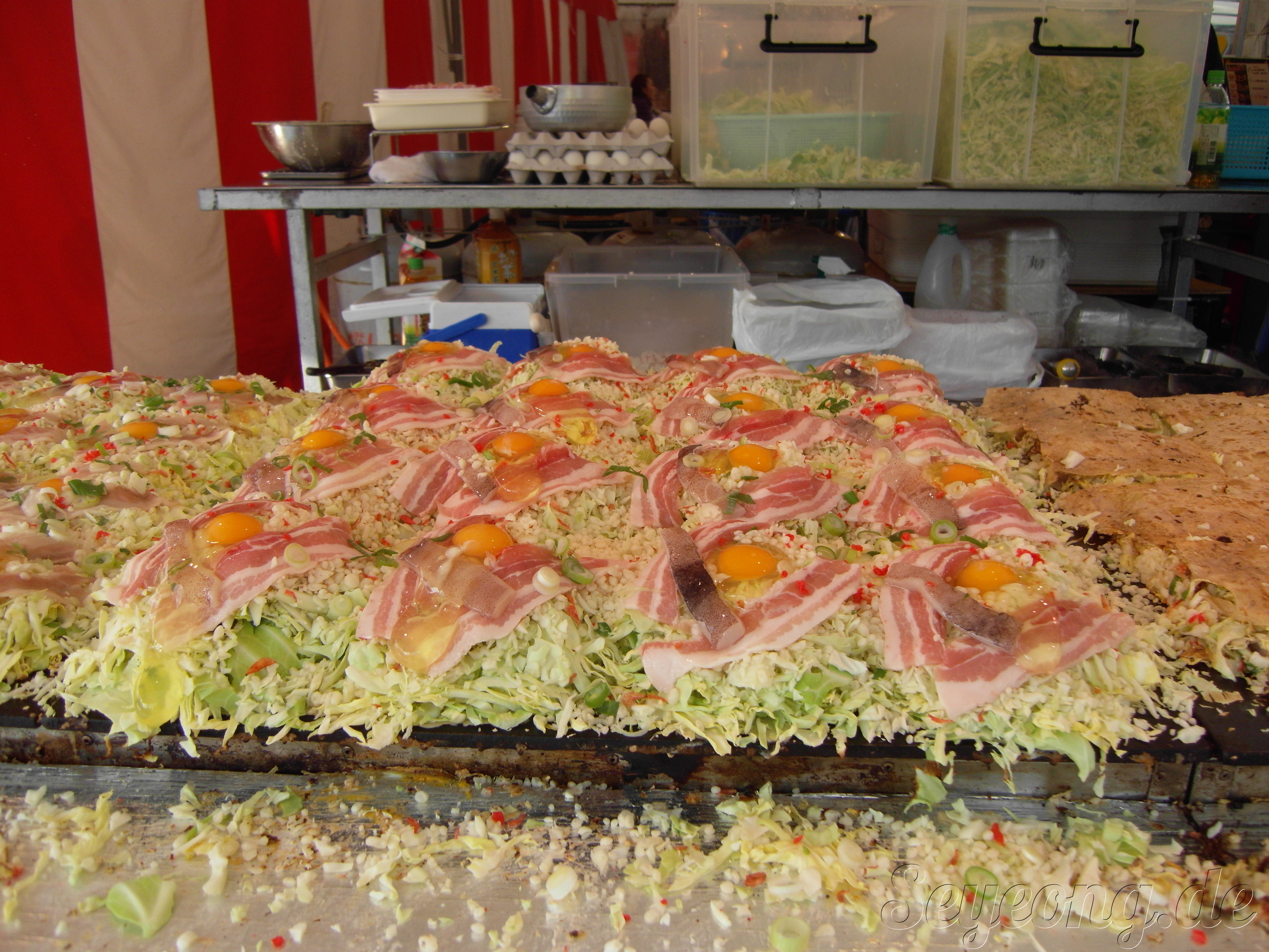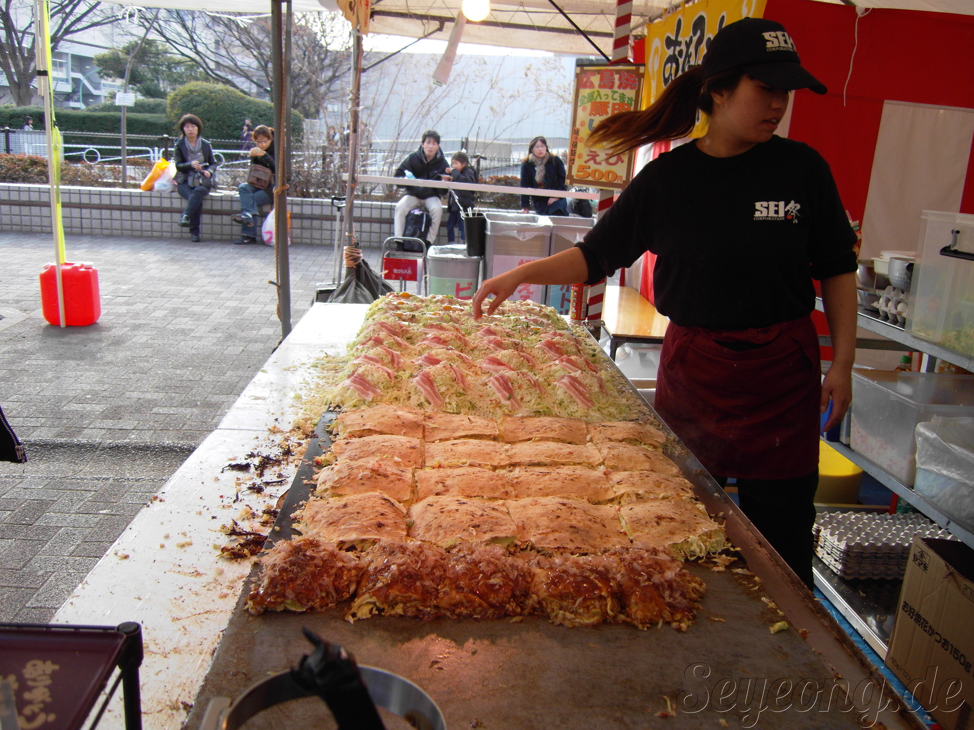 오코노미야끼의 참맛을 보여주겠다며 뵨과 같이 나누어 먹었다.