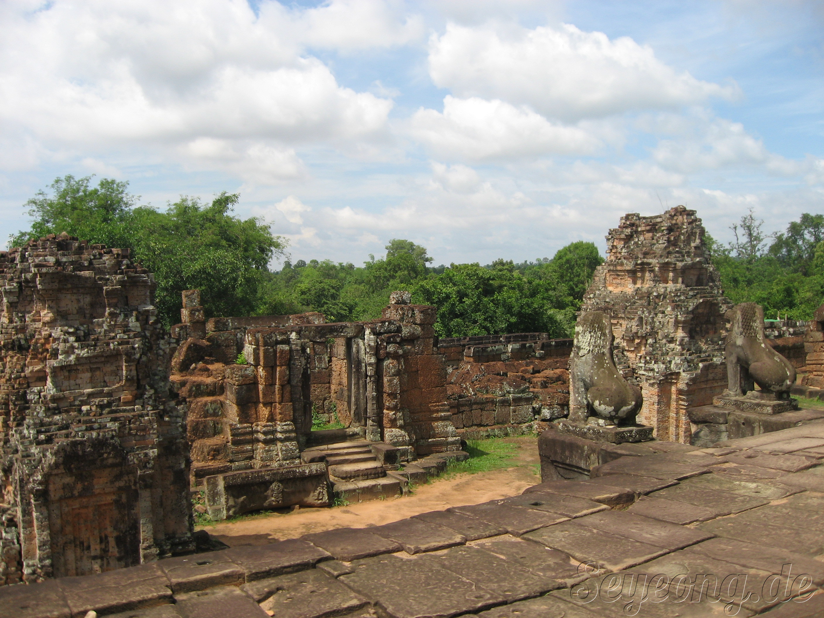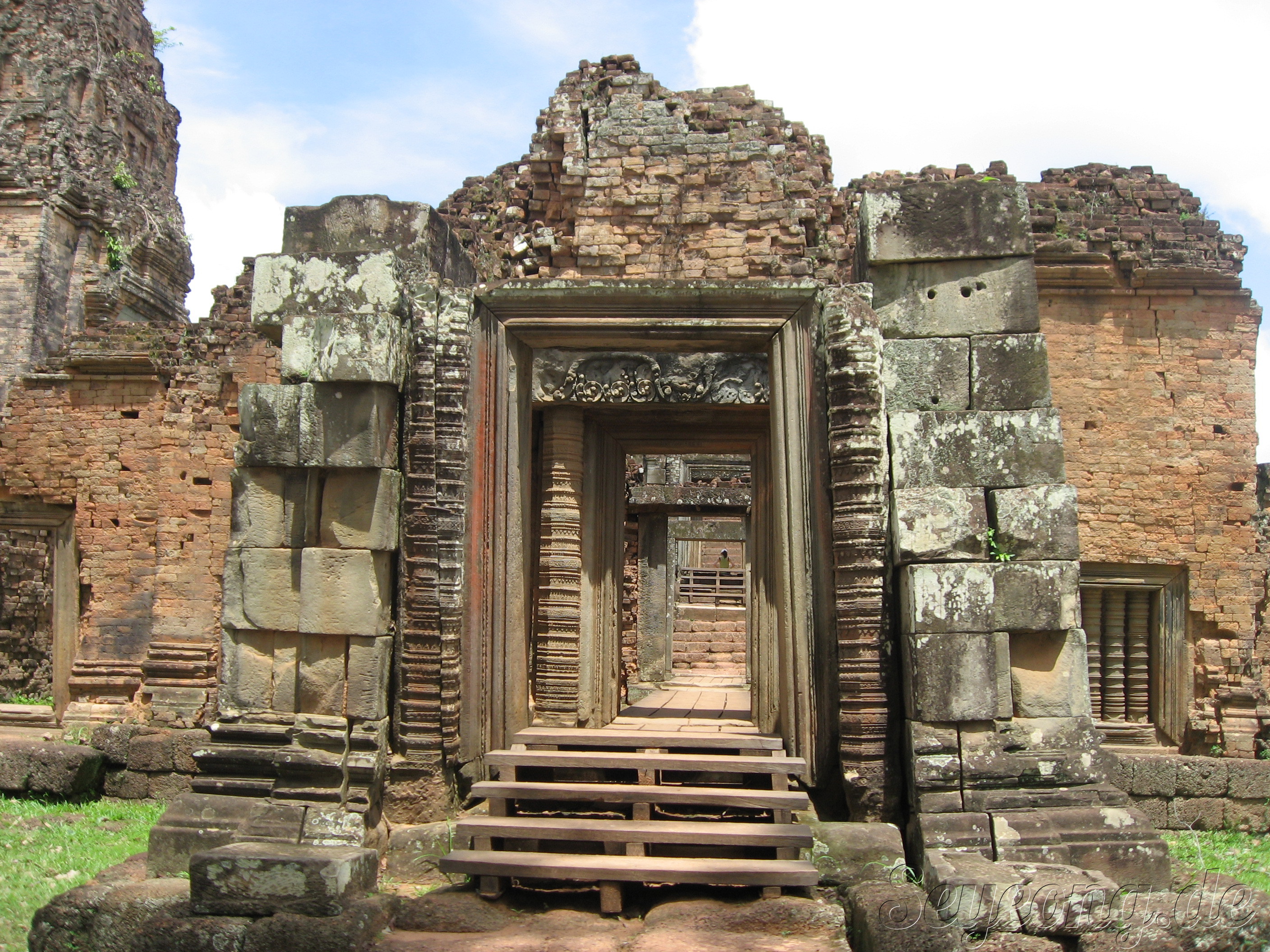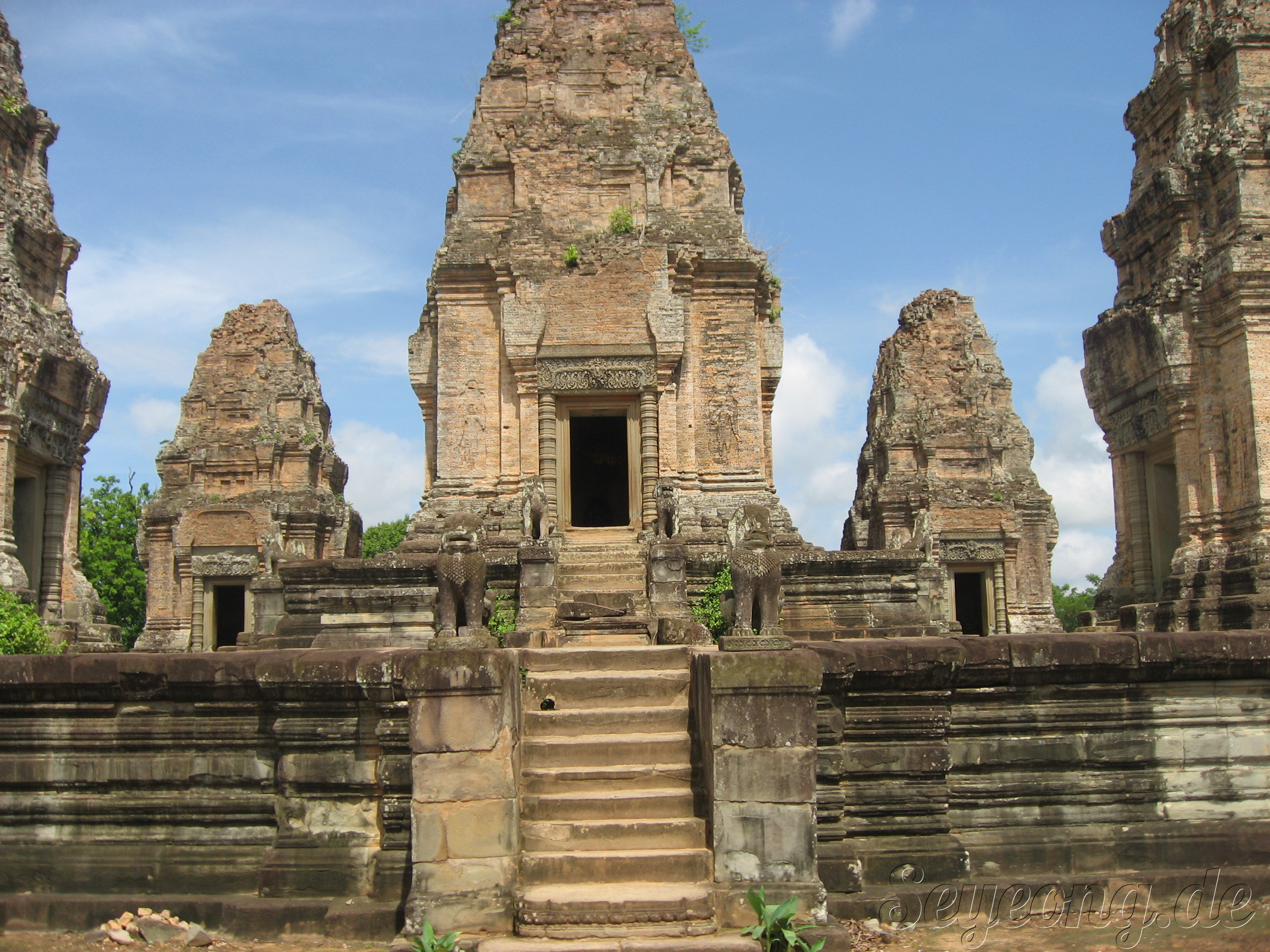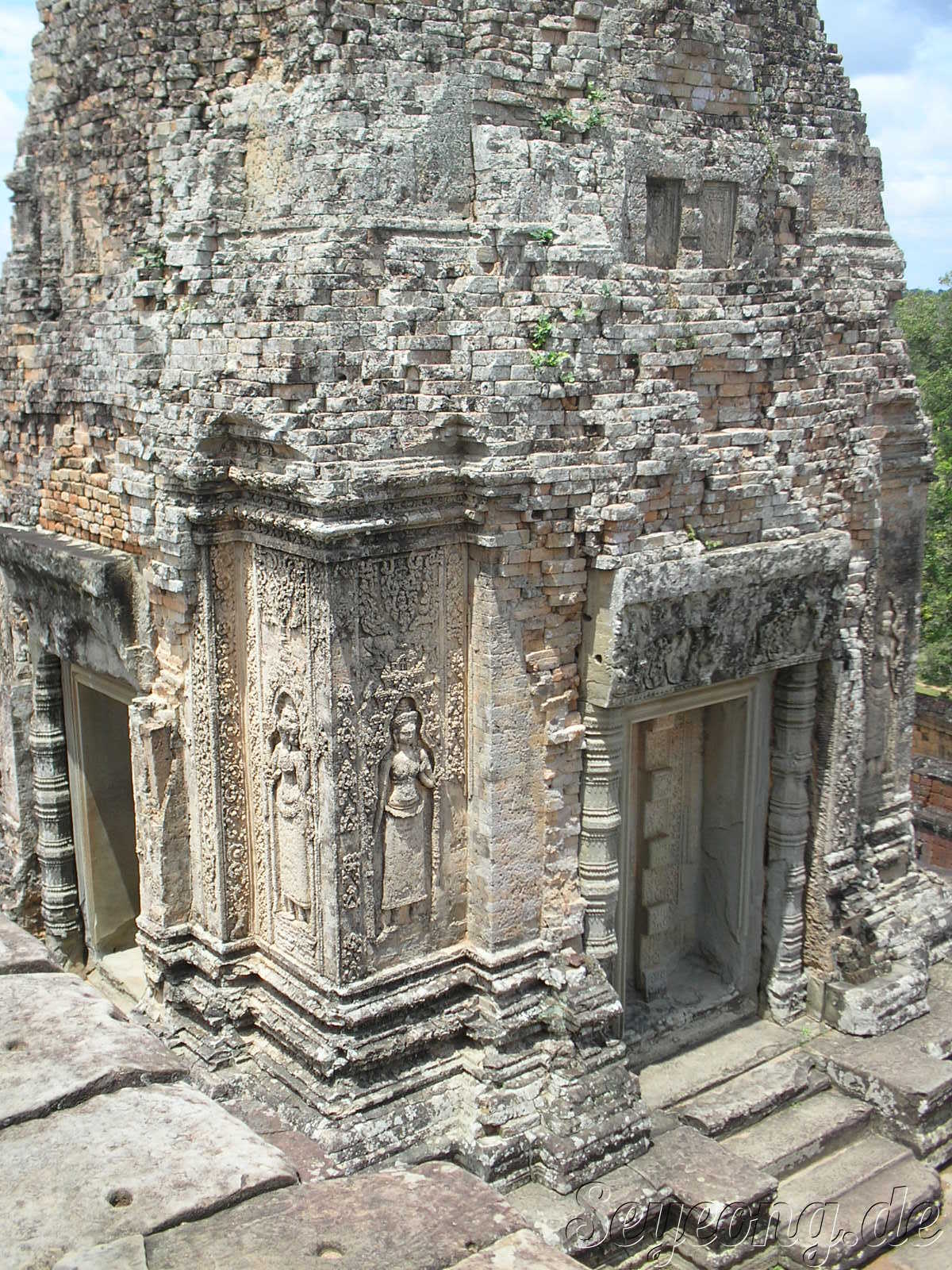 앙코르 주변의 사원과 다르게 이 당시에는 자근 벽돌을 사용하여 사원을 세웠던 점이다.