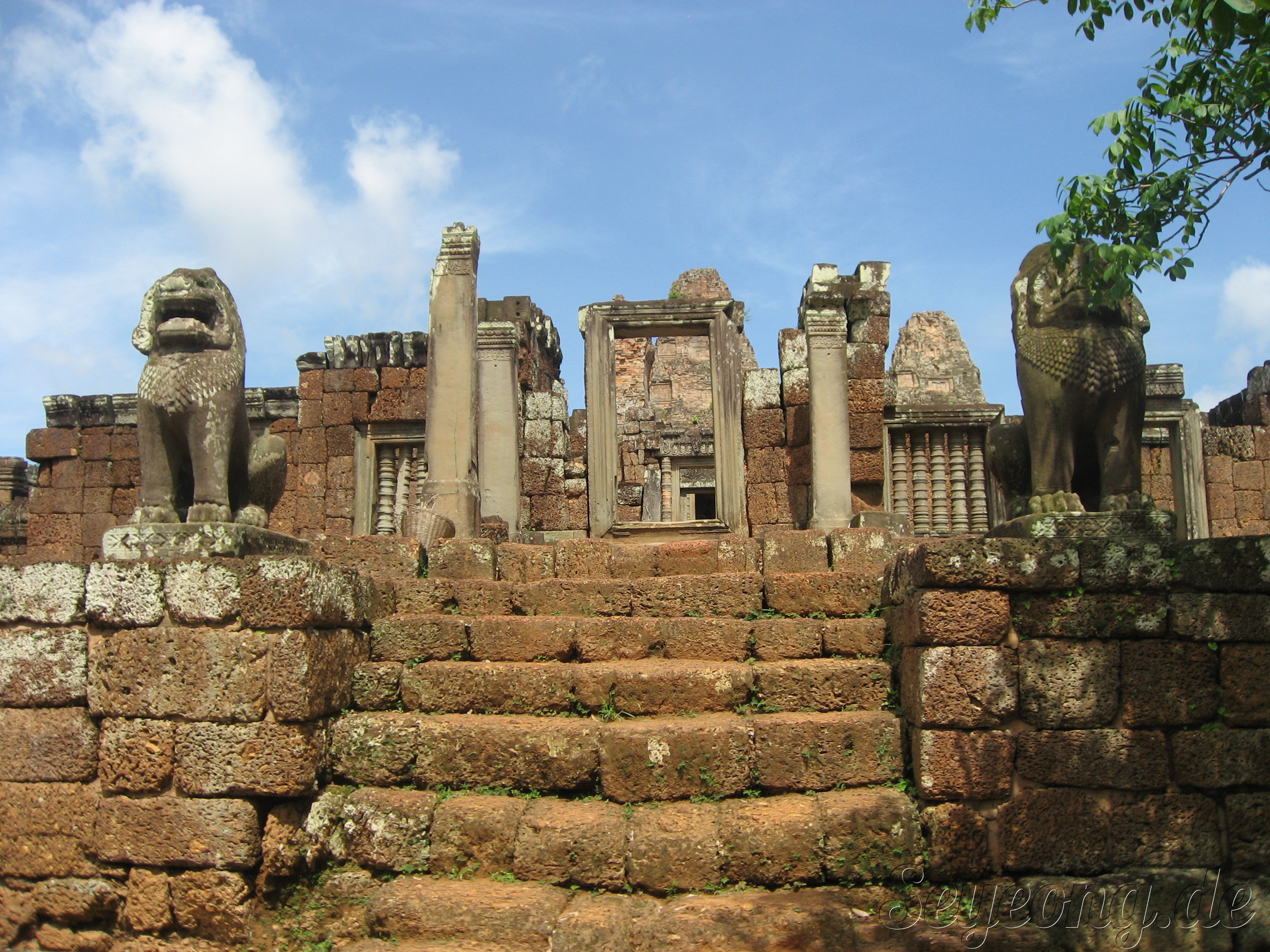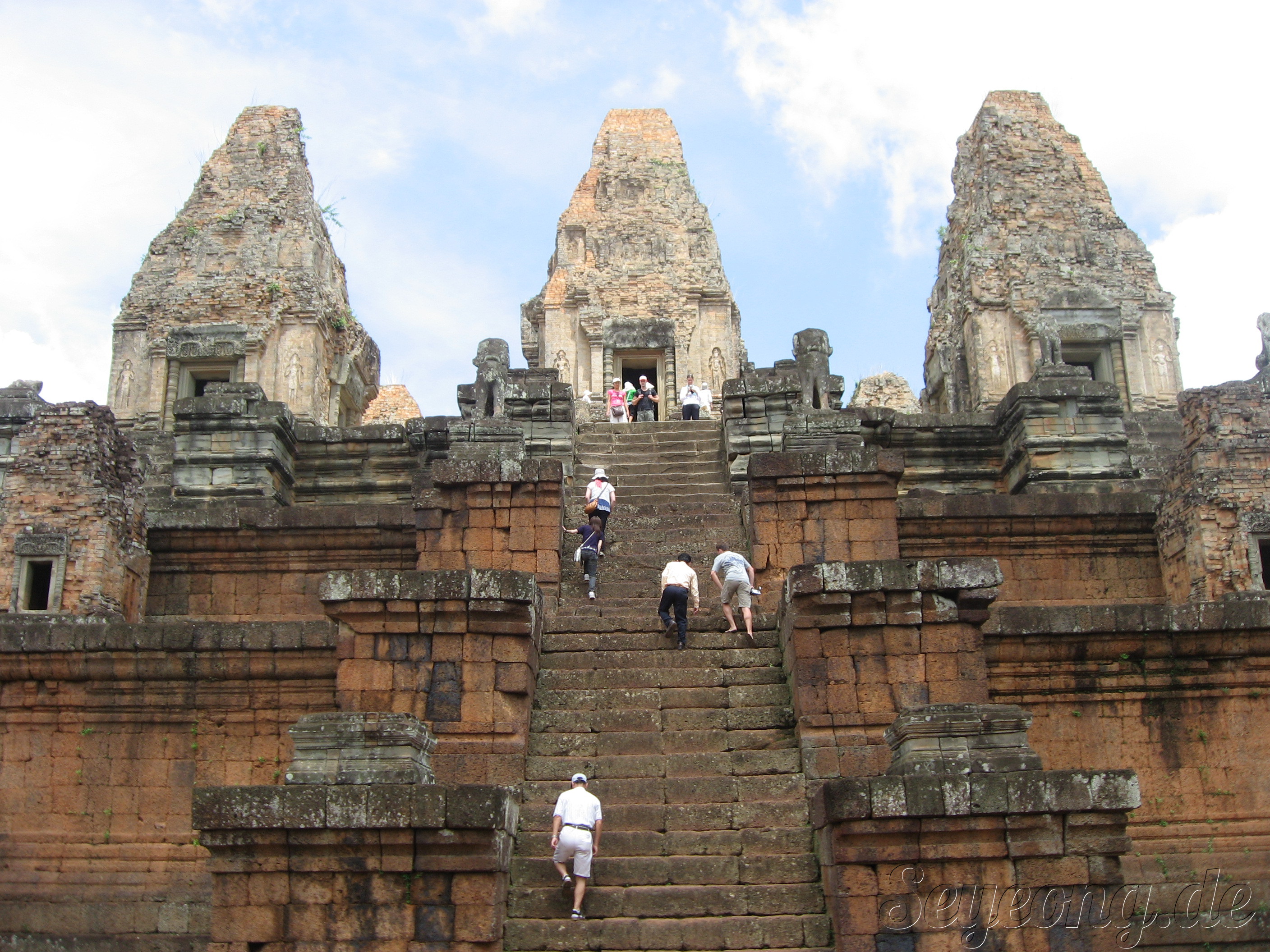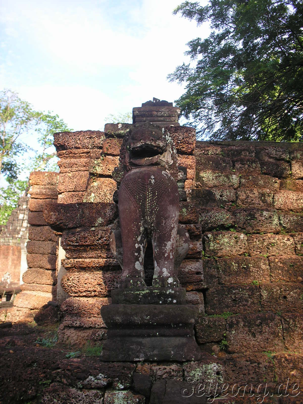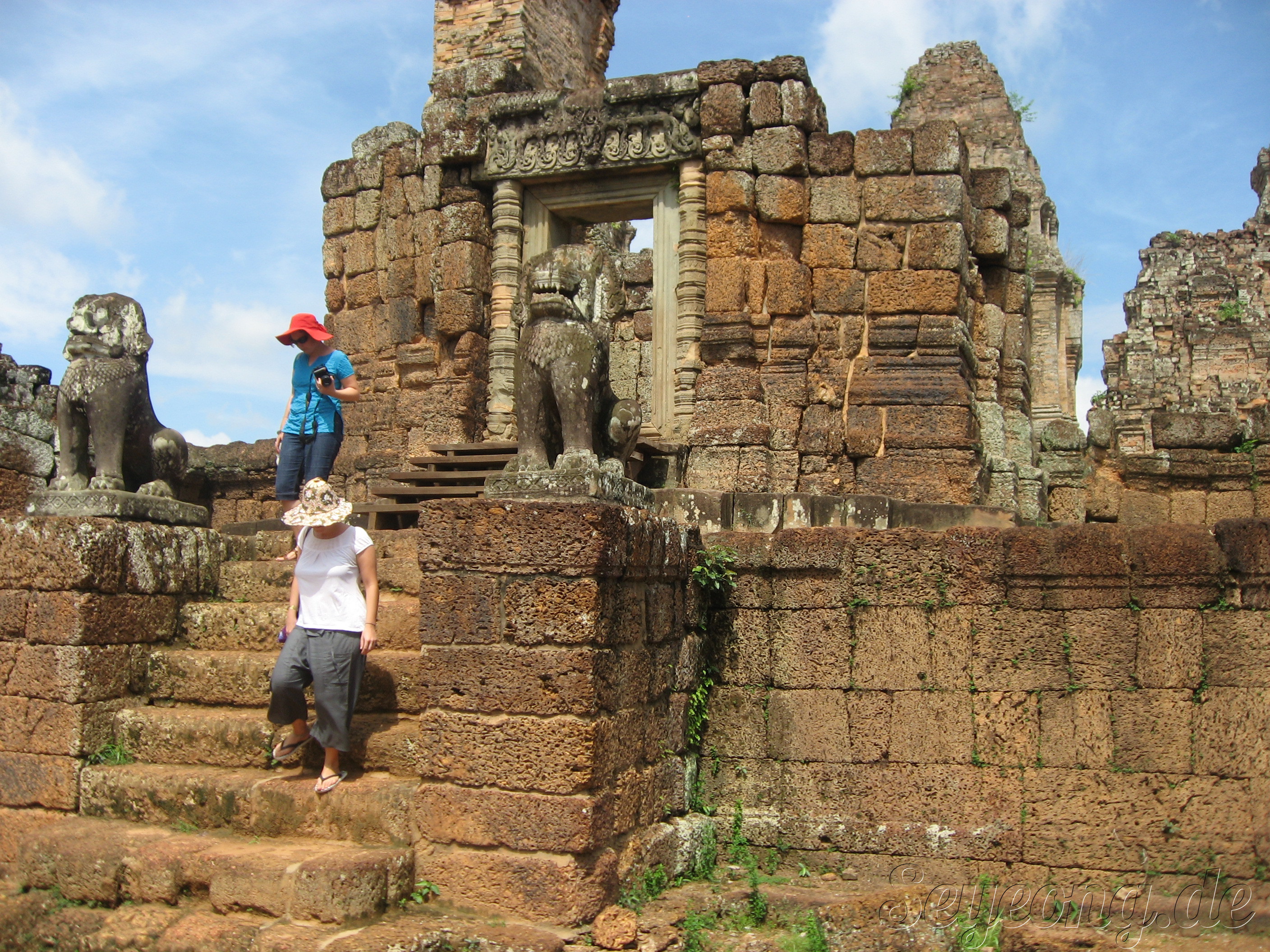 앙코르 주변의 사원과 다르게 이 당시에는 자근 벽돌을 사용하여 사원을 세웠던 점이다.