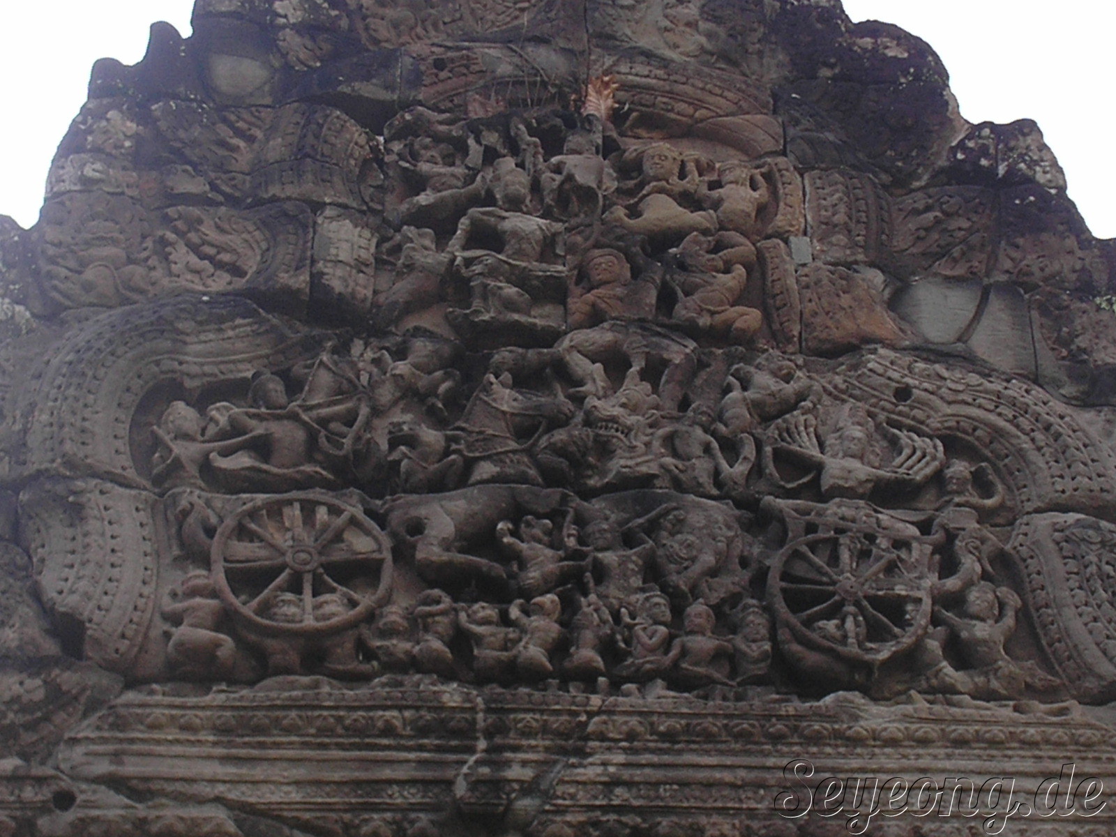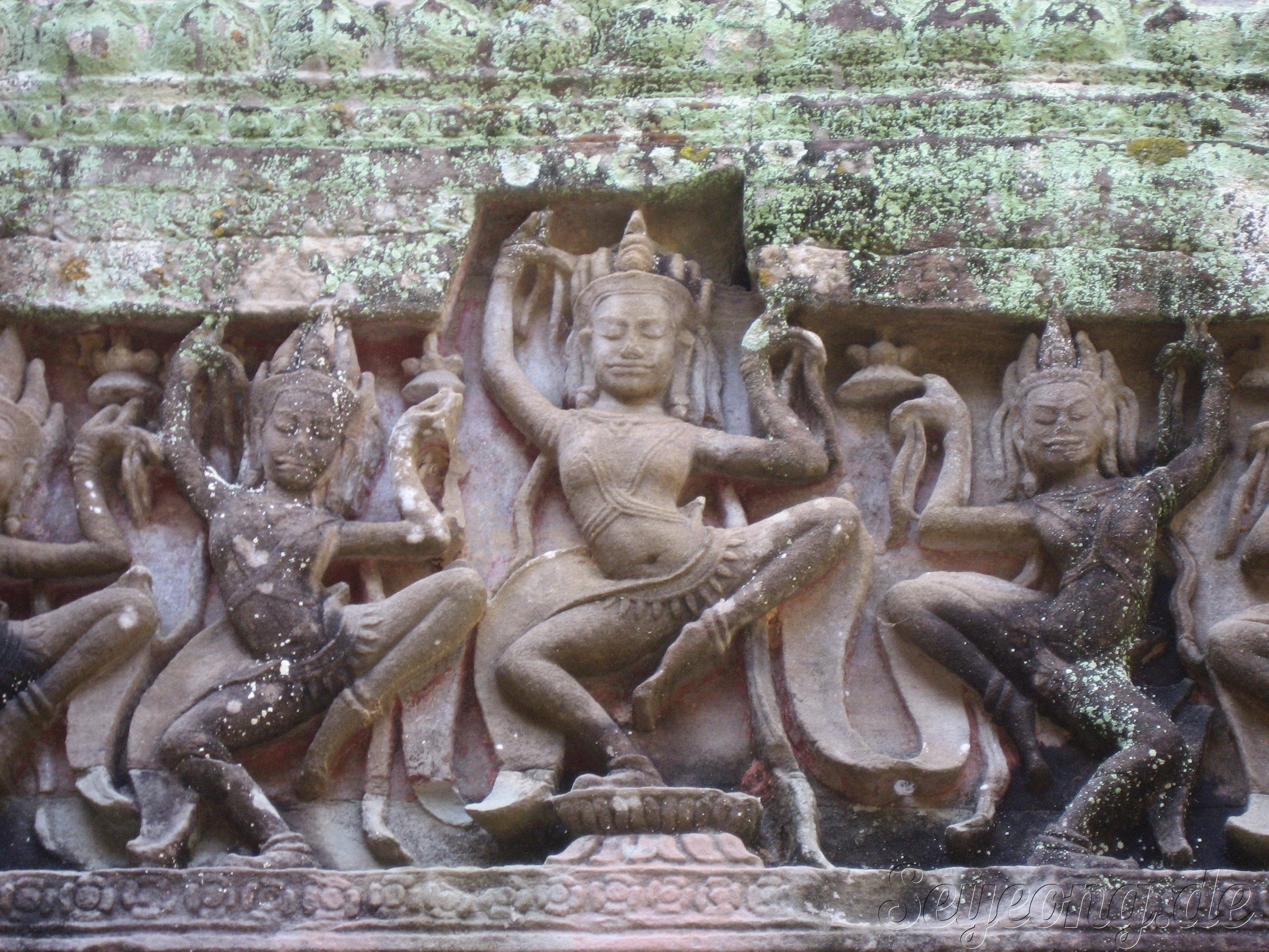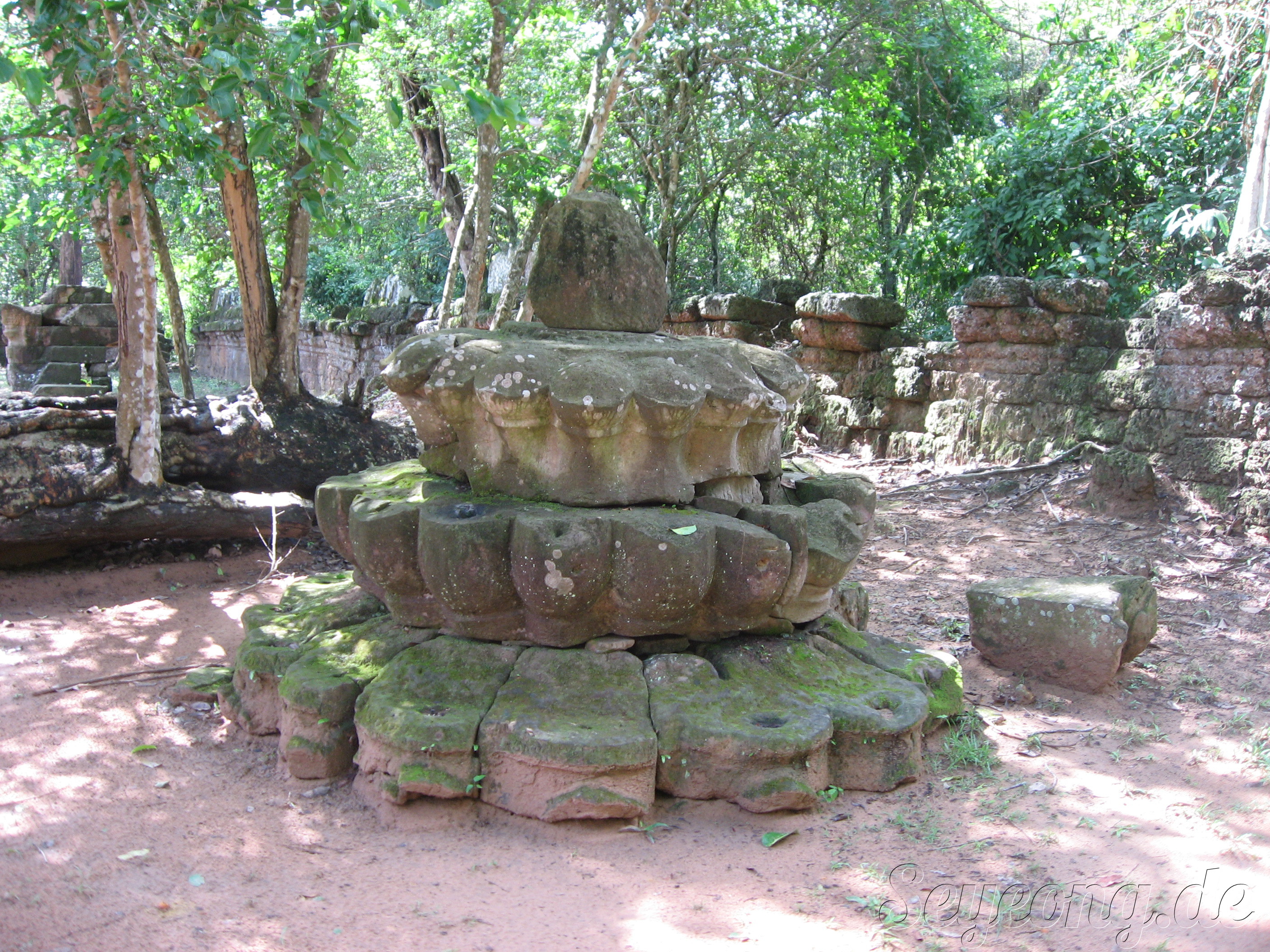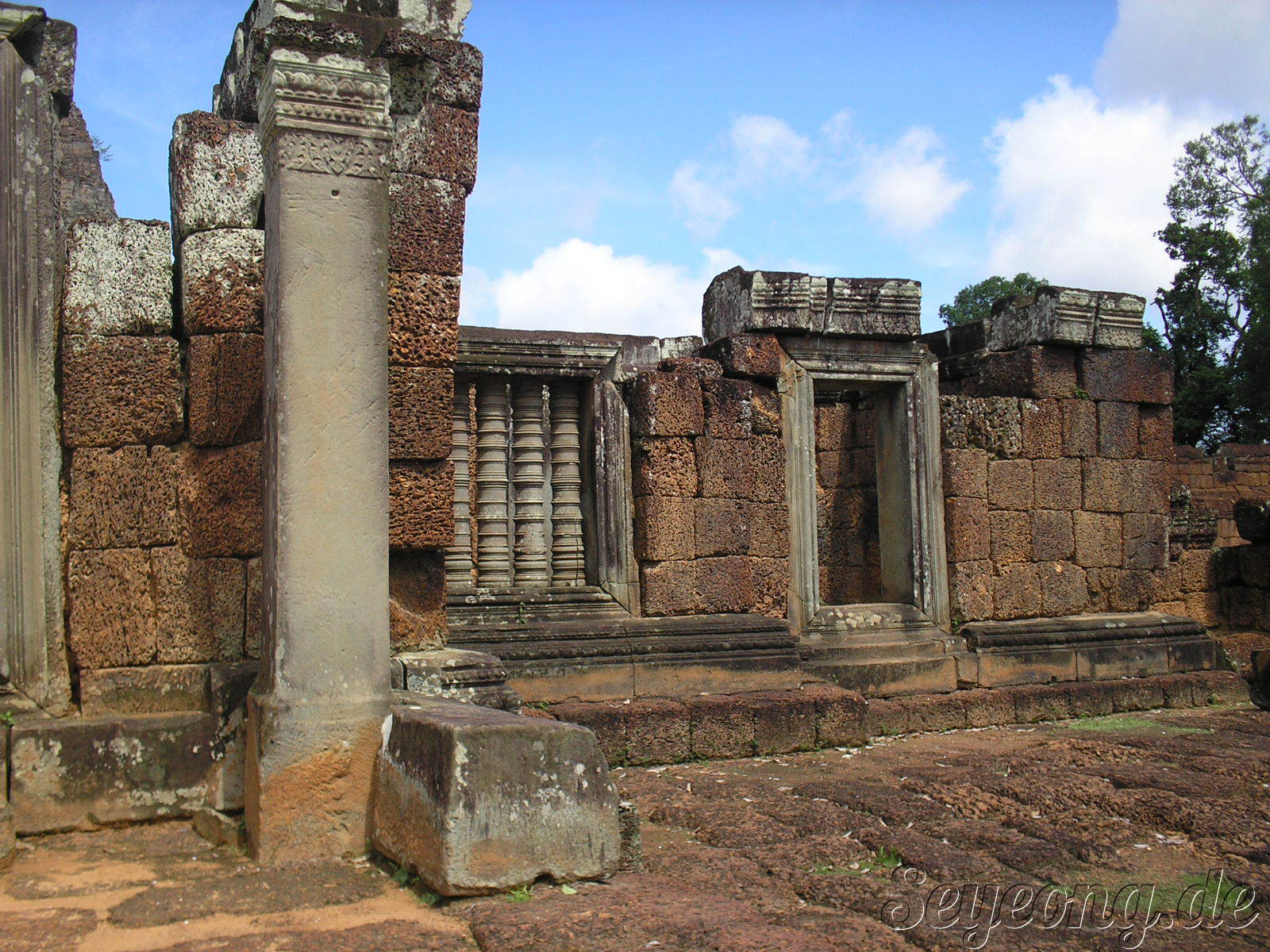 앙코르 주변의 사원과 다르게 이 당시에는 자근 벽돌을 사용하여 사원을 세웠던 점이다.