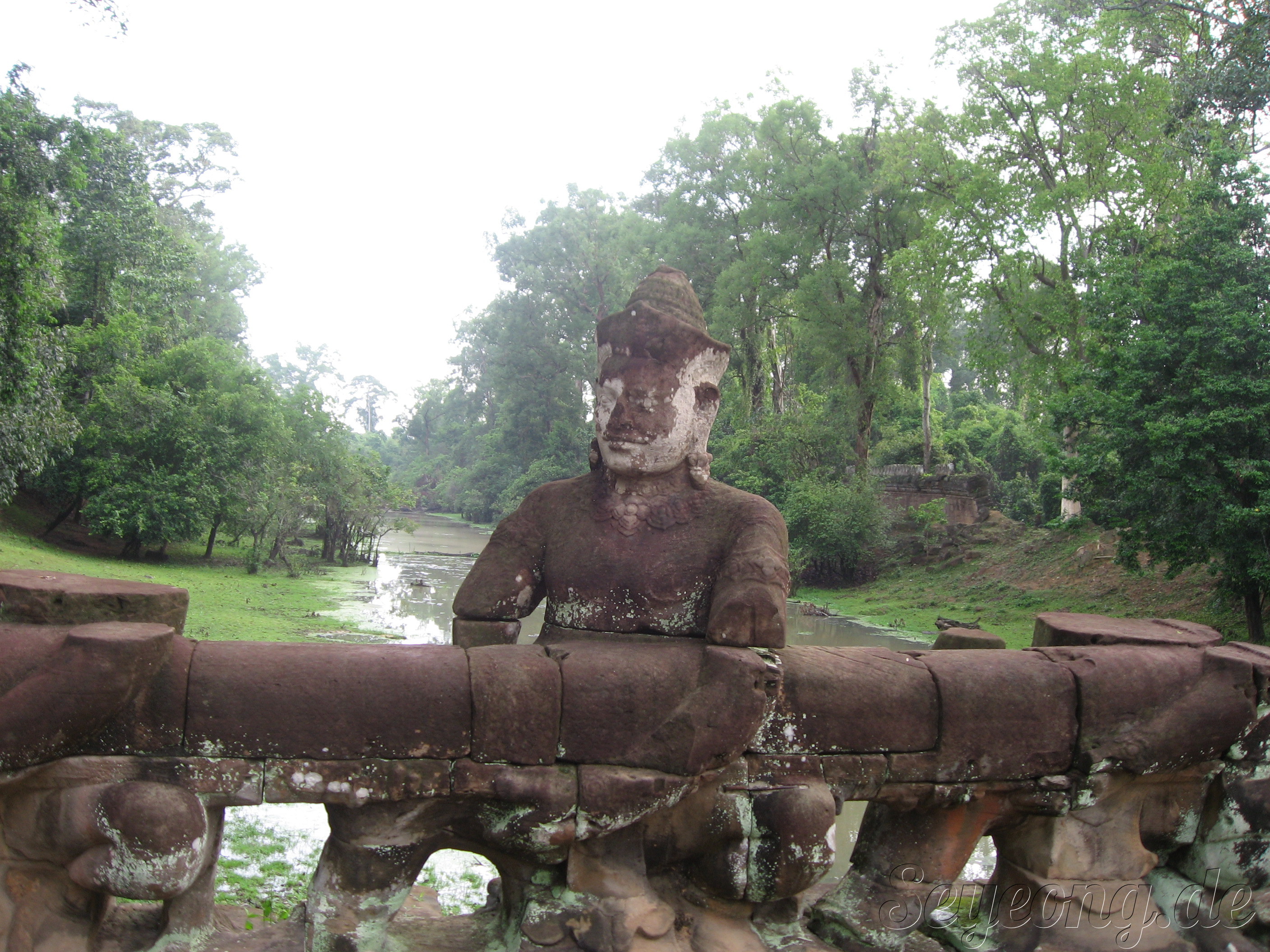 부다의 형상들이 세워진 다리를 지나.