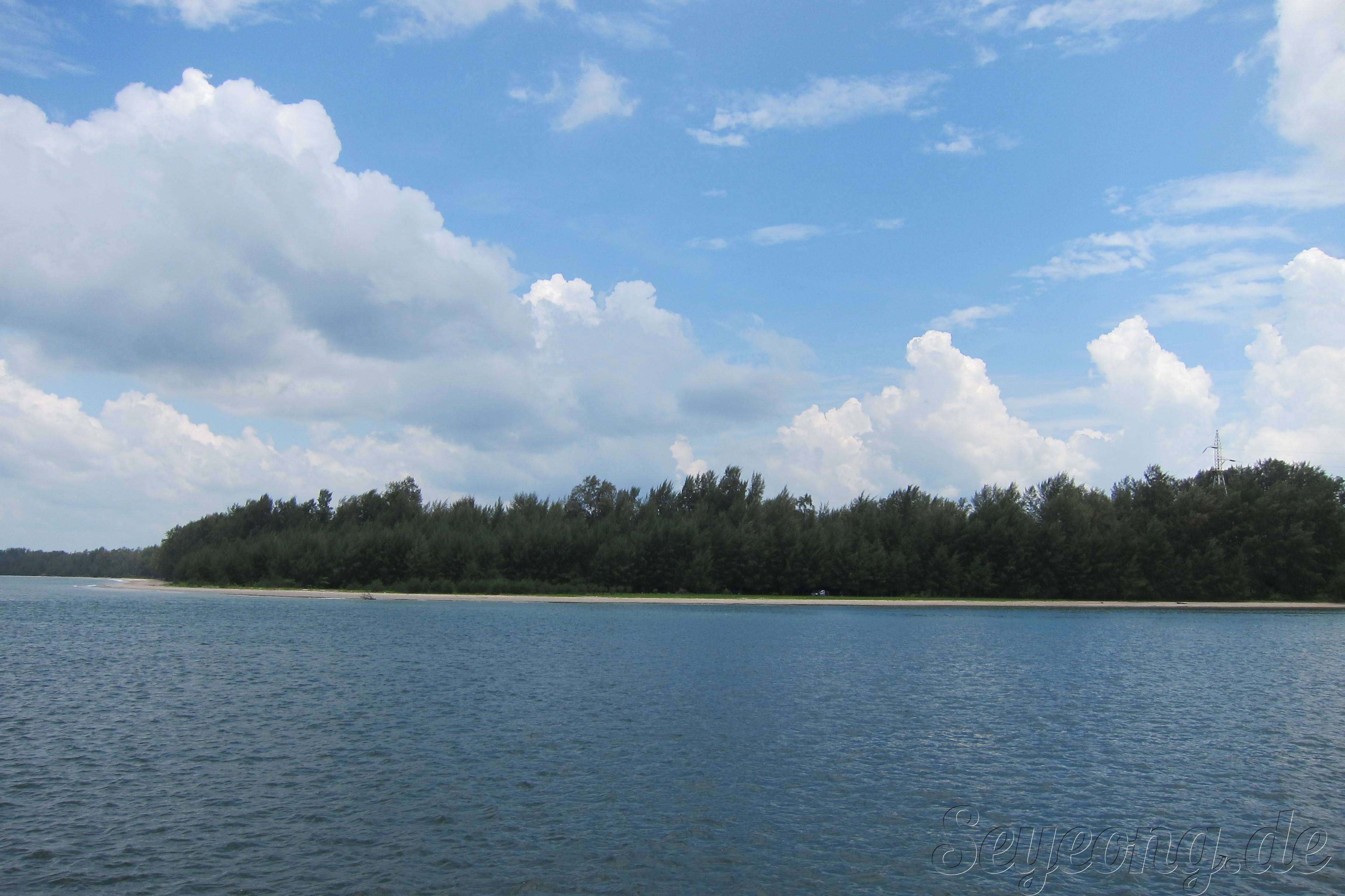 콜 란타 리조트에 있는 해변. 해변은 필리핀의 팔라완과 같은 에머랄드 블루는 아니나 한적은 해변은 가족 단위로 즐길 수 있는 한적함을 제공한다.