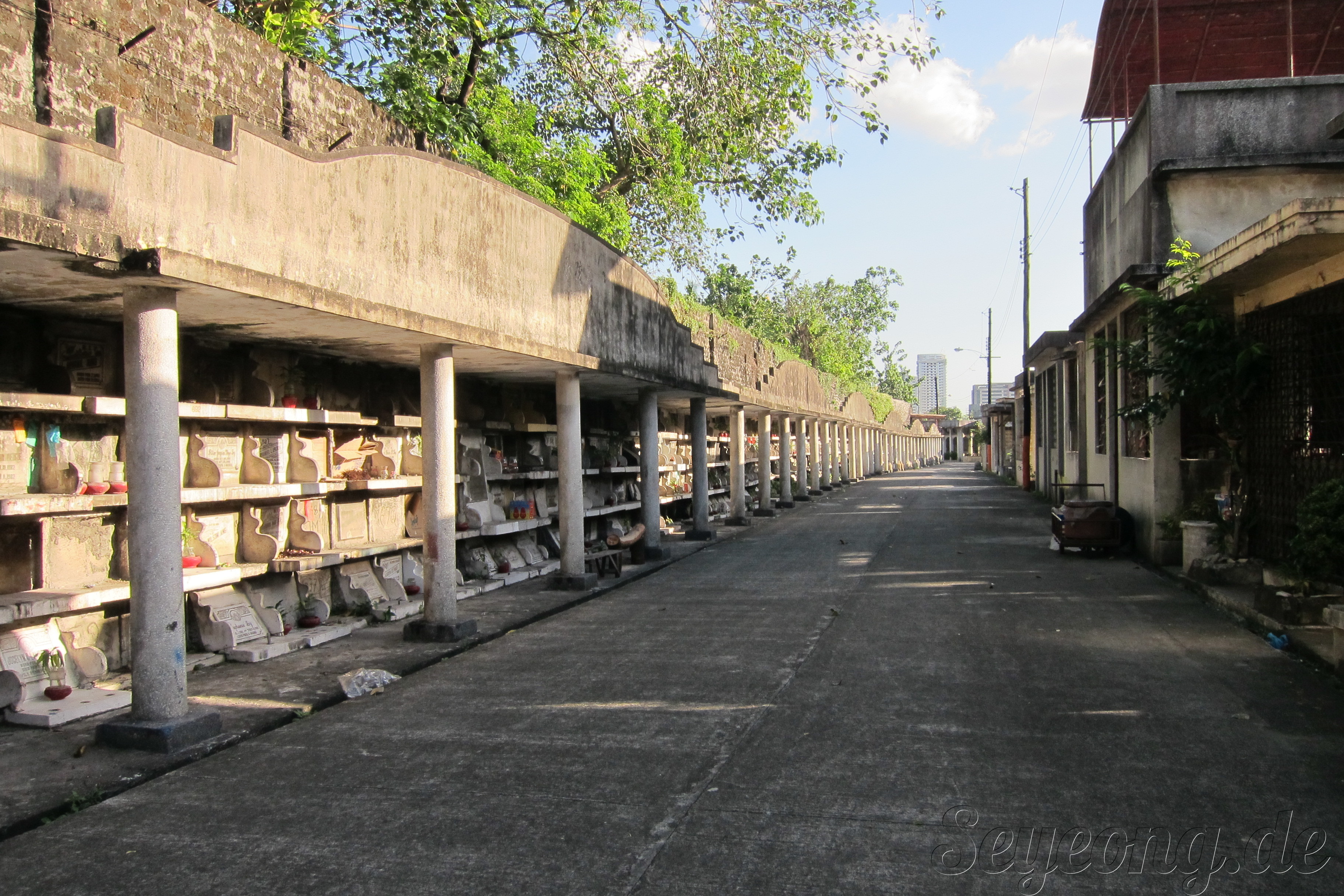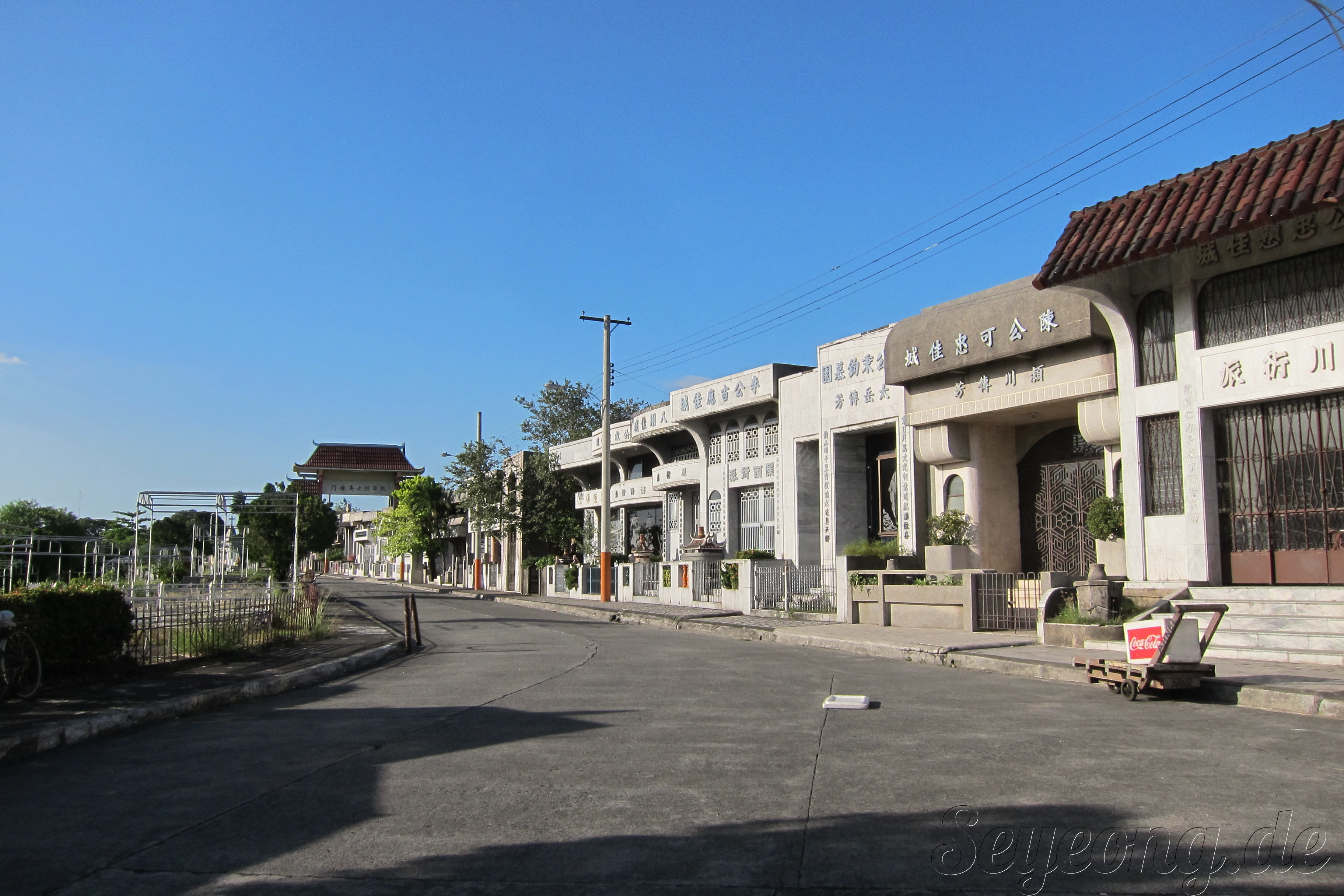 마닐라에서 시내를 내려다 볼 수 있는 명당에 잡은 중국 공동 묘지. 돈많은 중국 화교들은 집단 거주지를 구입하여 공동 묘지를 만들었다.
