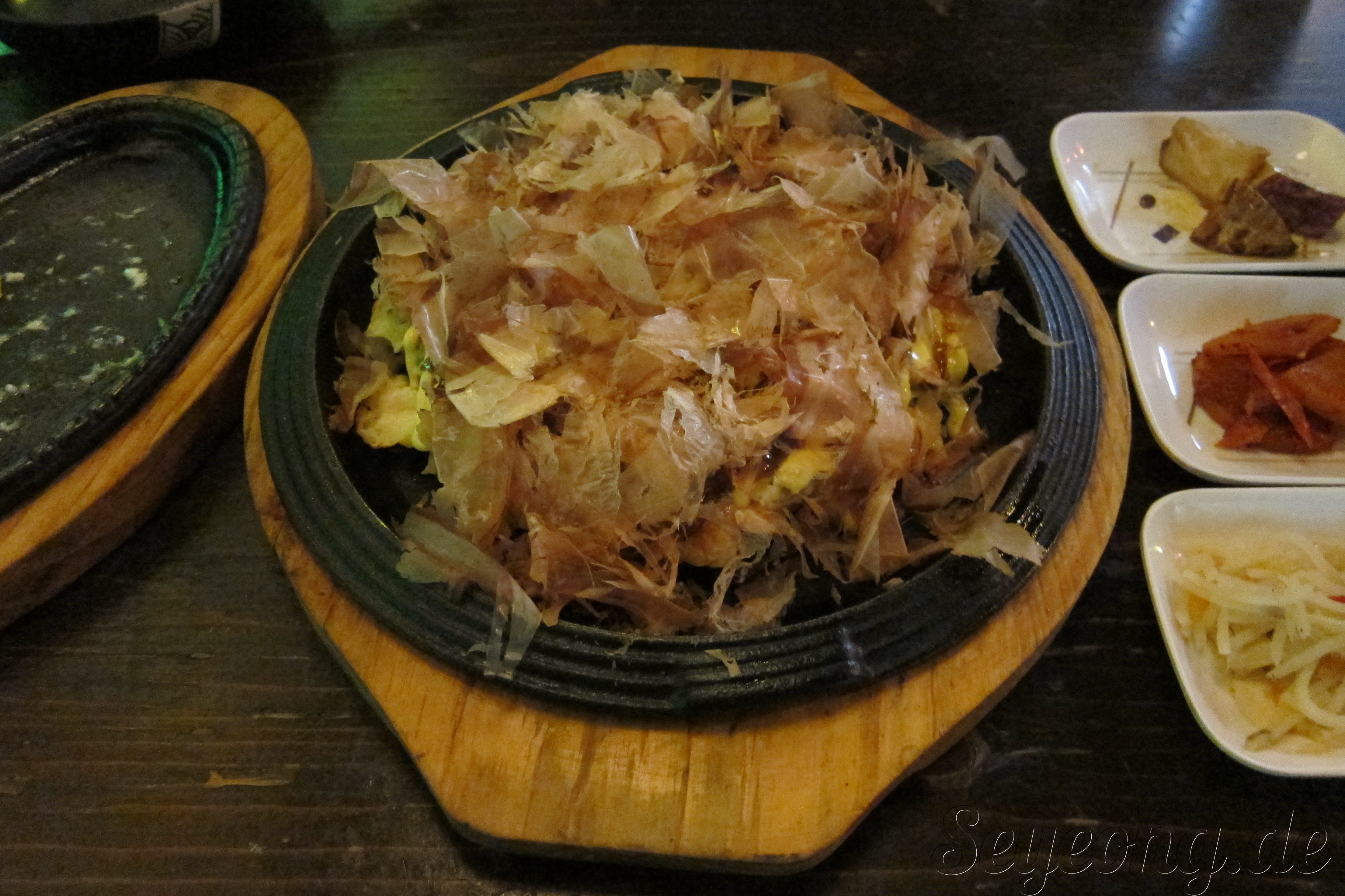 고르고 고른 음식점은 일본 음식점이다. 오랜만에 한국인냥 다양한 반찬에 오코노미야키를 먹었다.