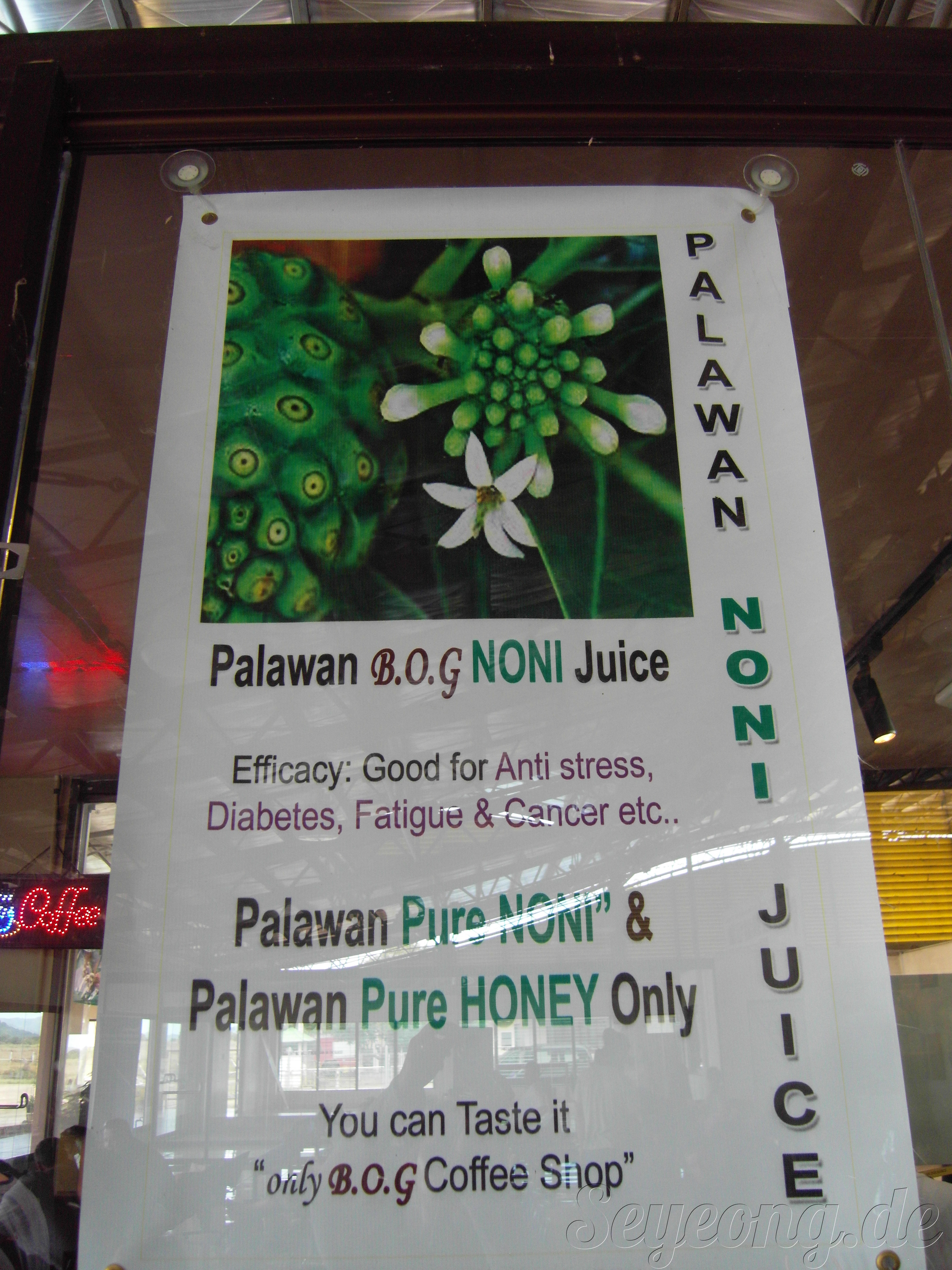 팔라완에서 먹어봐야할 특별한 꽃에서 나는 꿀으로 만든 노니주스.