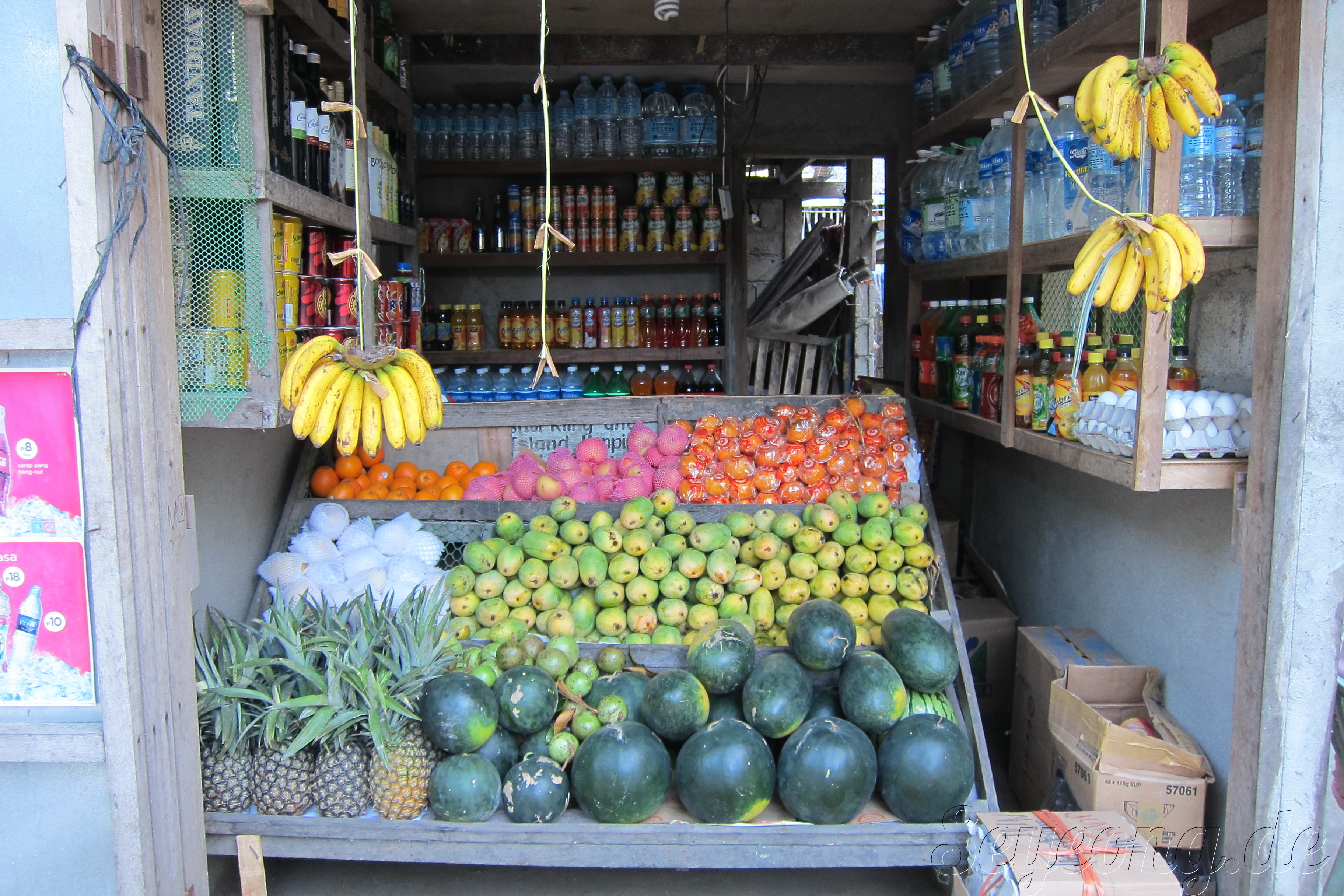 엘 니도에서는 작은 구멍가게들이 많이 물과 과일을 살 수 있다.