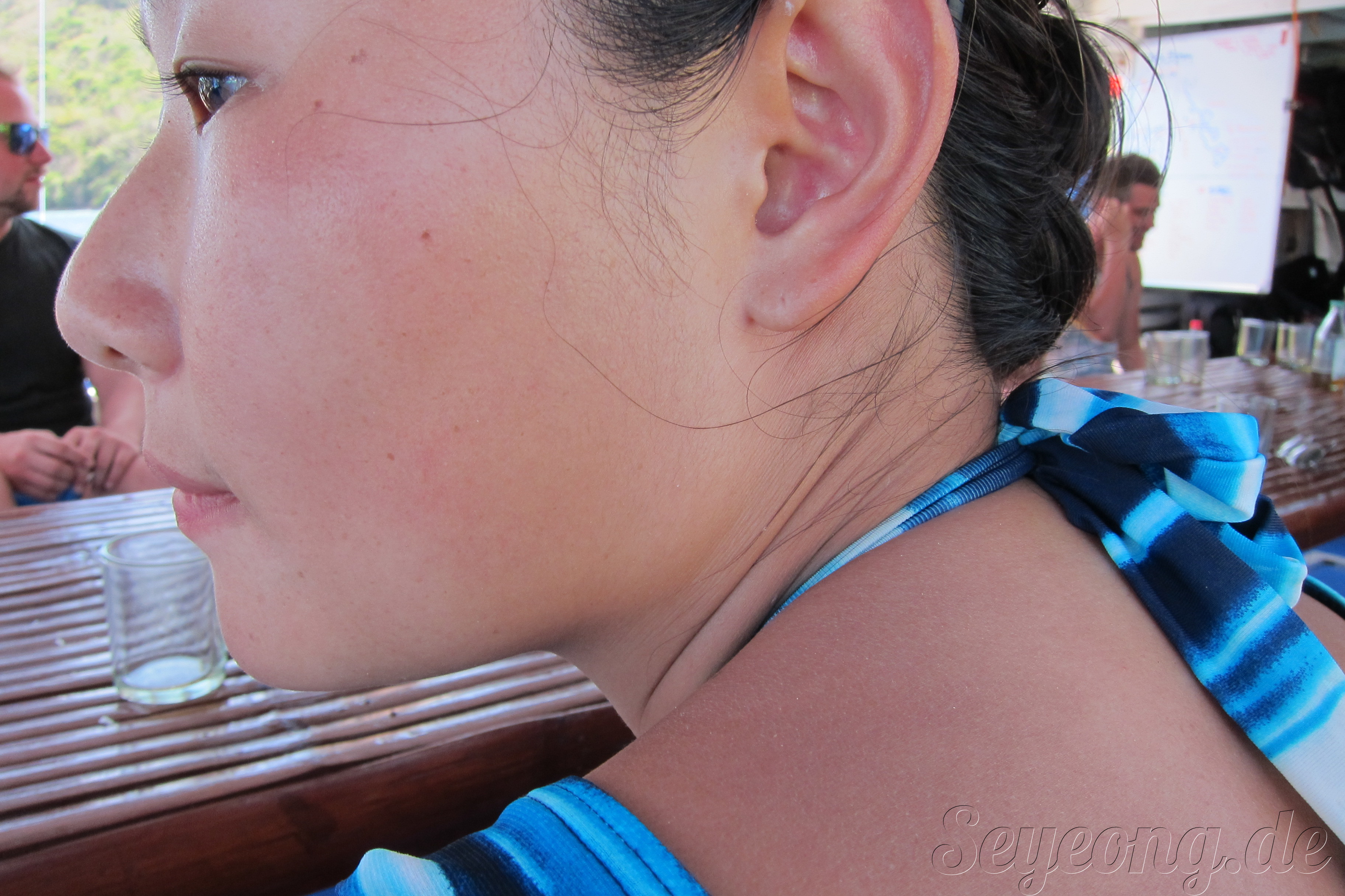 그리고 마지막 여정이었던 코랄 가든에서 스노클링을 하였다. 이상하게 오늘 부터 힘이 쭉 빠지더니, 깊은 바다라 수영하기가 만만치 않다. 사람들도 뿔뿔히 흩어지고, 해류가 센 곳이라 가도가도 잘 가지지 않는다. 파도도 생각보다 높고, 힘에 지쳐 그만 중간에 이러다 이곳에서 변당할 수 있겠다 싶어, SOS를 하였다. 다행히 나를 본 카약을 졌던 선원이 구해주었다. 아~ 남미의 4500m고도 경험 이후 두번째 느낀 이 무서움. 다행히 짐보이가 튜브로 수영하며 이끌어주어, 코랄 가든을 구경할 수 있었다.