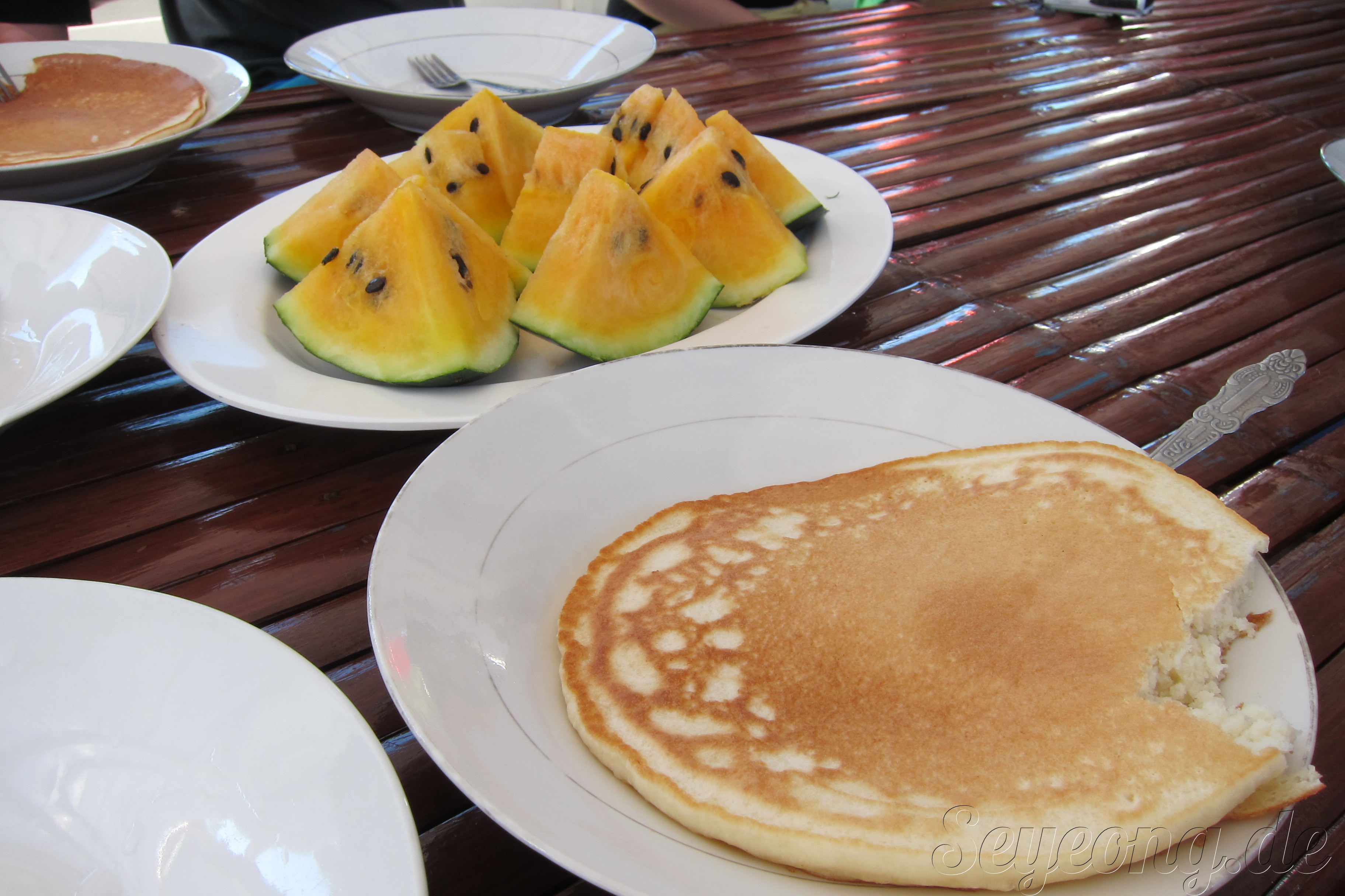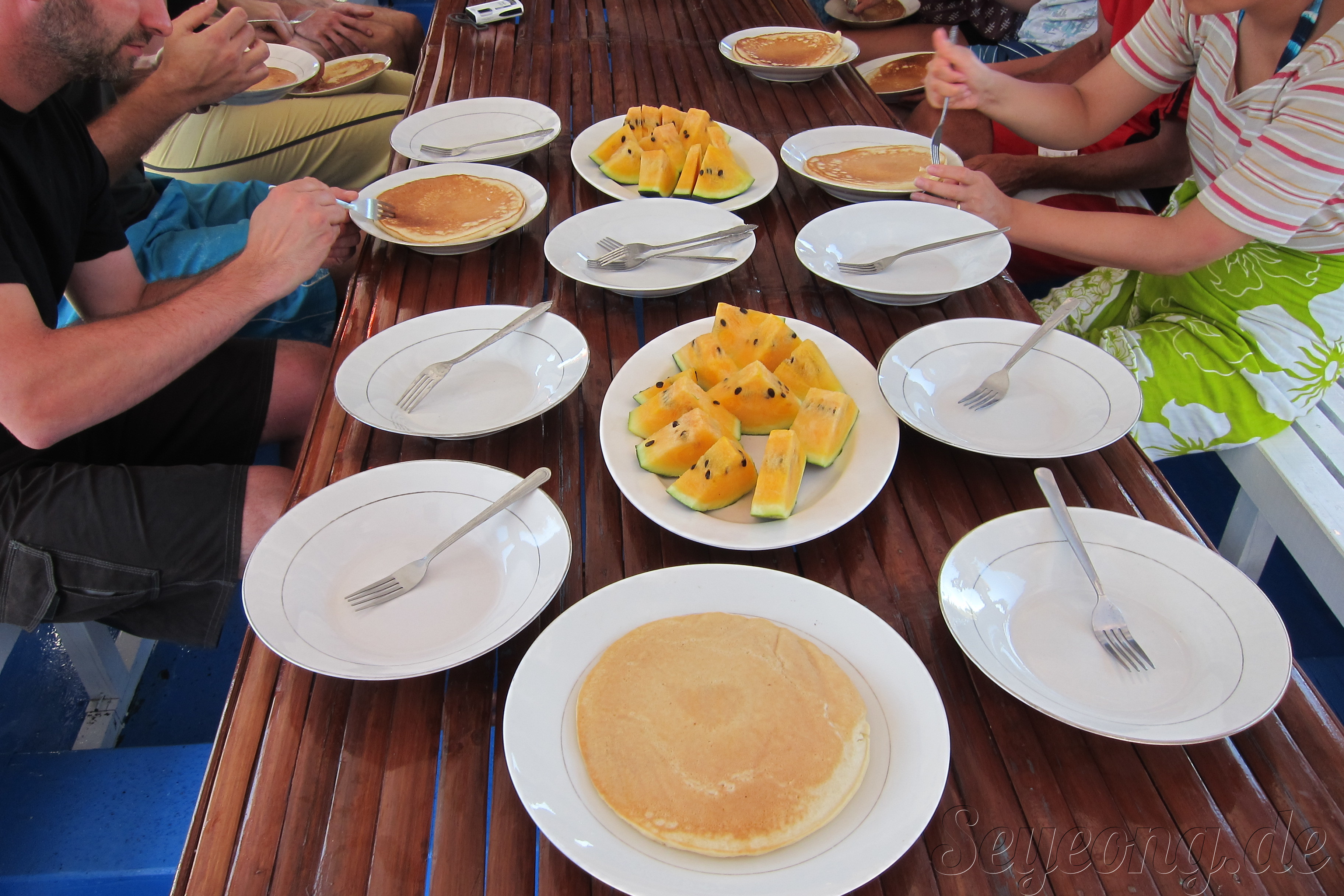 오늘은 짐보이가 아침으로 팬케이크가 있다며 농담 삼아 말했다. 이곳에서 팬케이크를 만들리가 없다며 모두들 먹을 걸로 장난치면 안된다는 분위기다. 하지만 아침에는 앤이 만든 맛나는 팬케이크가 준비되어 있었다. 바다에서 먹는 팬케이크 아침, 황홀하였다.