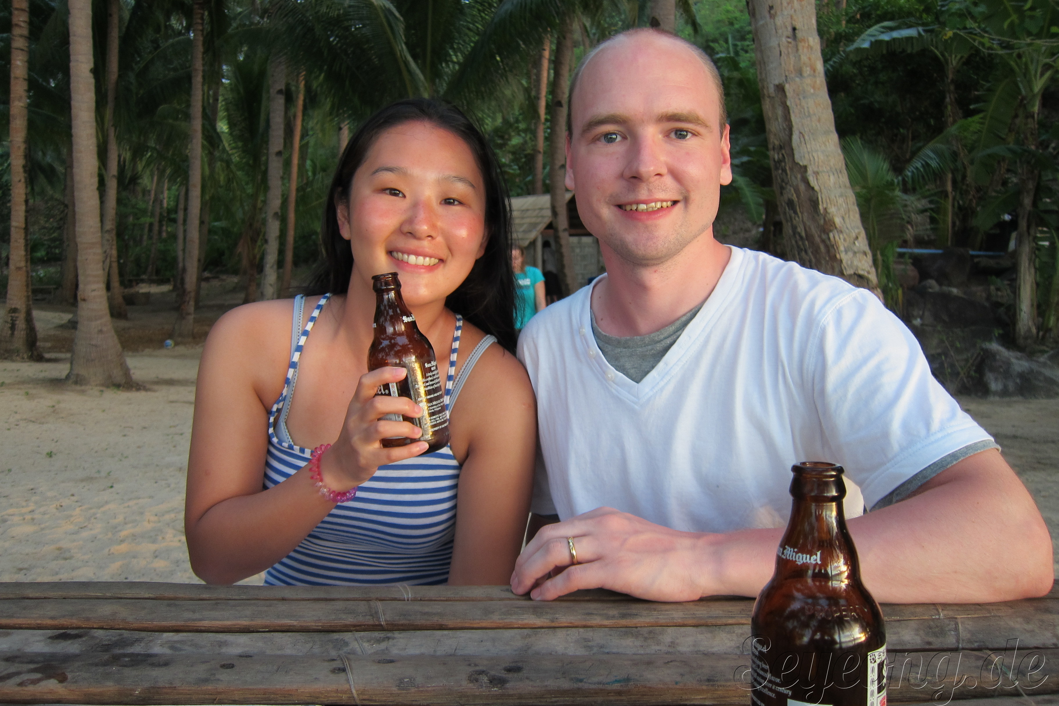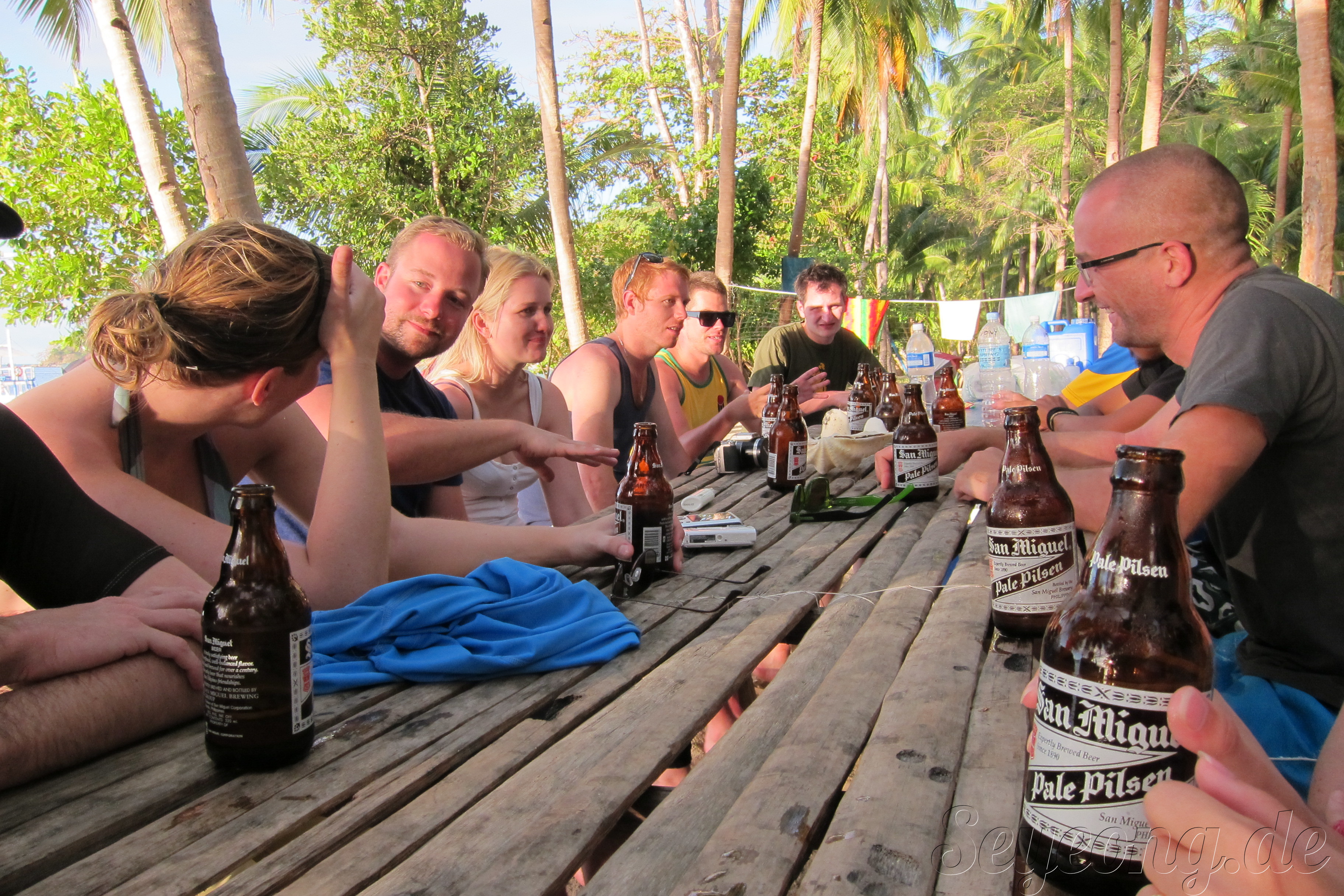 샤워를 마친 사람과 기다리는 사람들은 필리핀 맥주 산 미구엘을 마시면서 수다를 같이 떨었다.