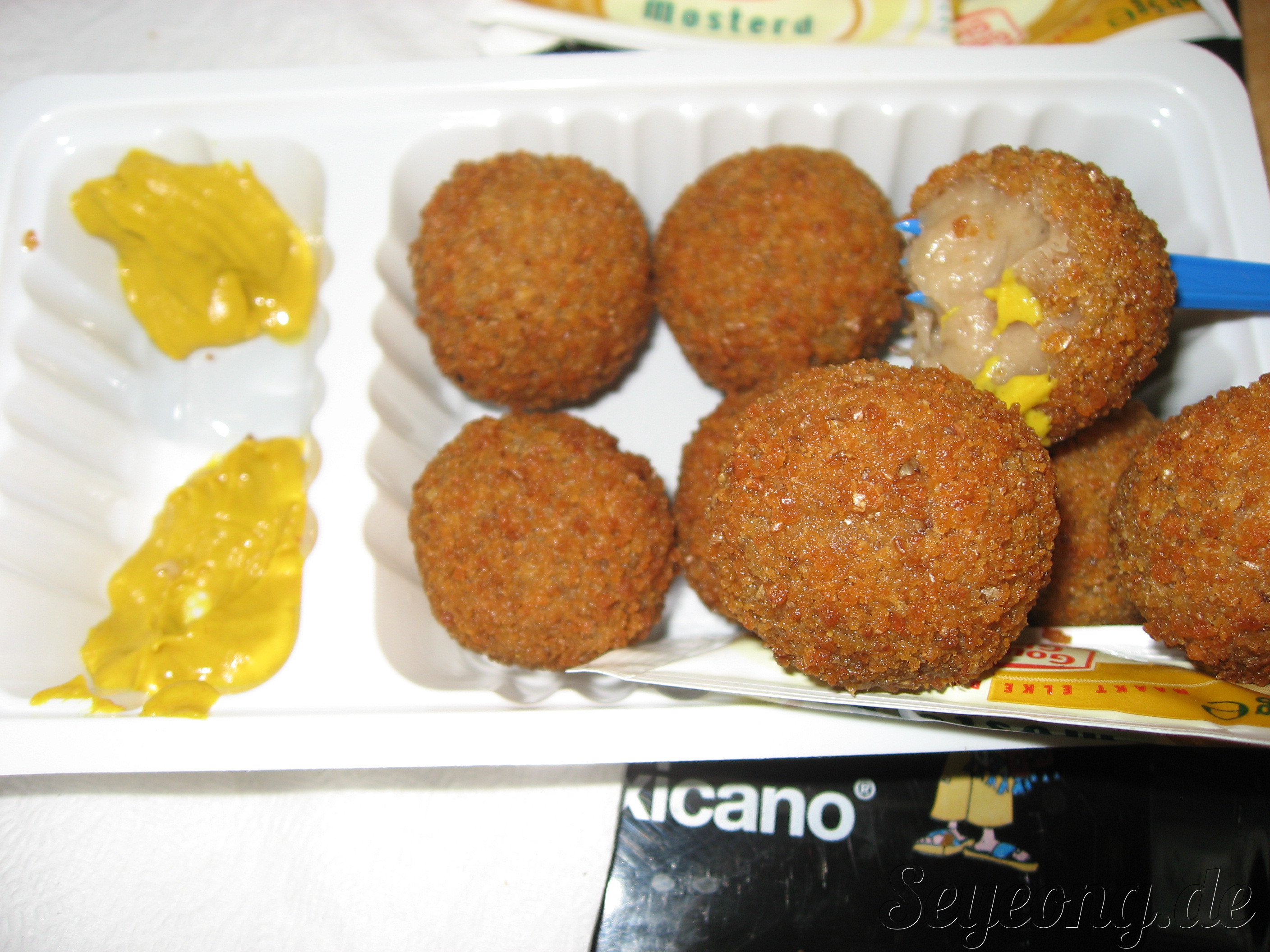 네덜란드의 간식거리. 크로켓. 감자 튀김으로 머스타드 소스에 찍어먹으면 맛나다.
