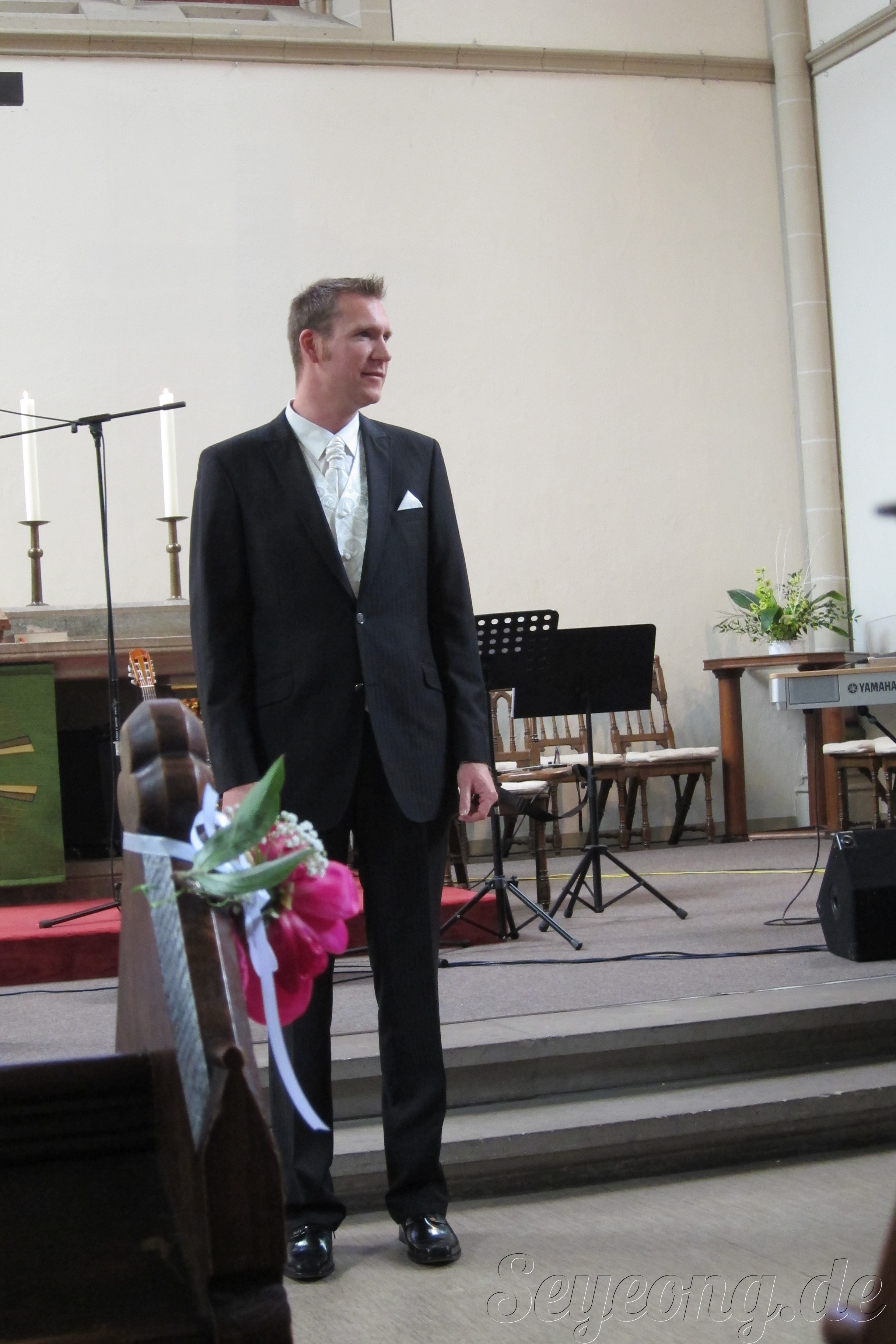 테아를 기다리는 아드리안. 독일에서는 신랑이 신부의 하얀 웨딩드레스를 결혼식 전에 보는 것이 금기되어 있다. 그래서 얼마나 아드리안이 궁금해 할 런지 모두 예상할 수 있었다.