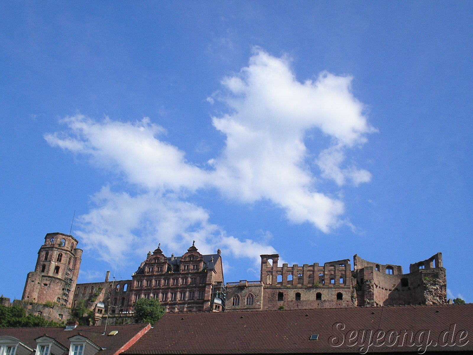 긴 이 거리를 걸으니 어쩌다 하이델 베르크 성이 나왔다. 무언가 무너질 듯한 고성, 산위에 절경이었다.