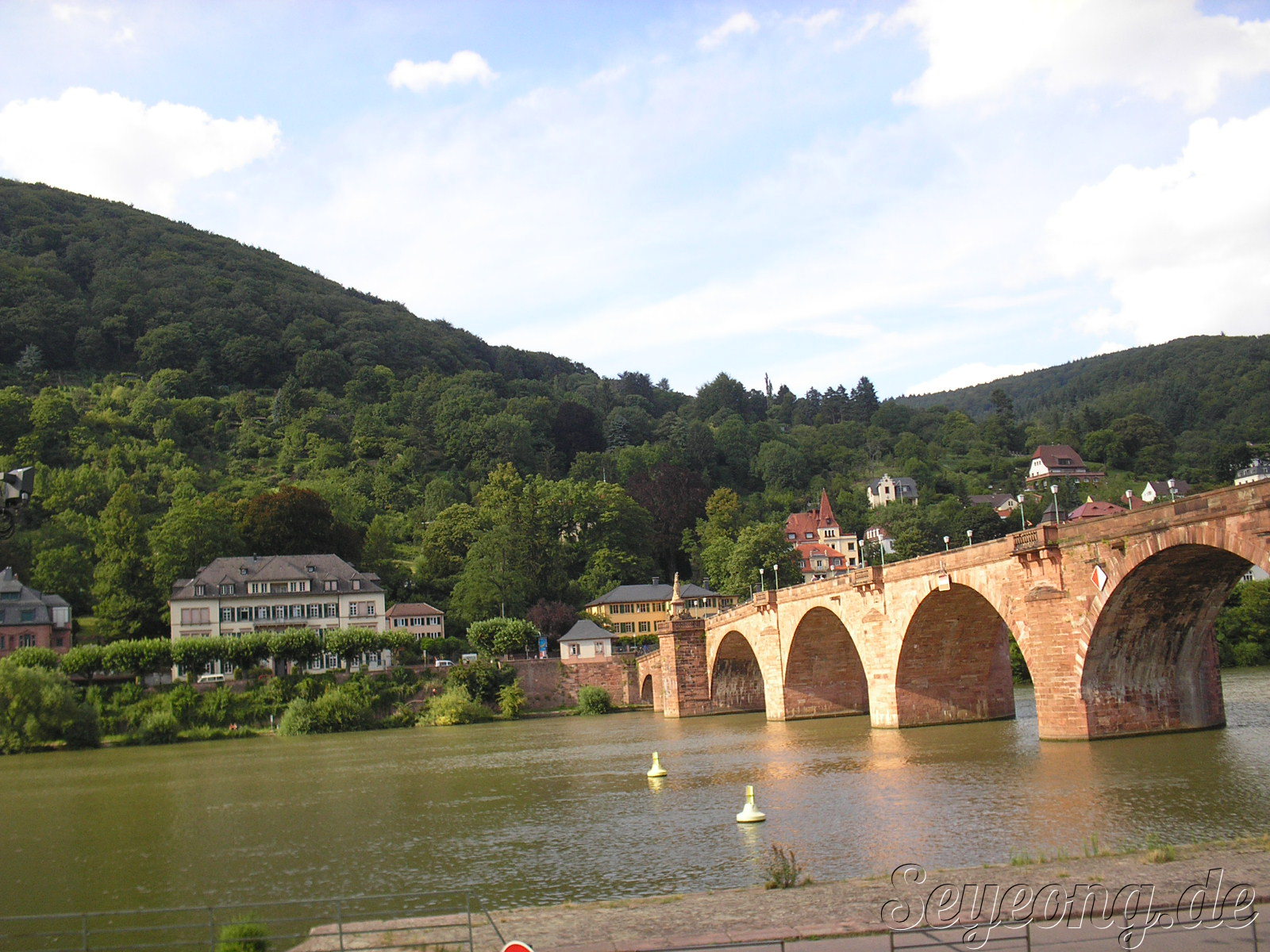 뒤로 살짝 걸어 왼쪽으로 빠지니, 칼테오드르 다리가 보였는데, 그 근처의 원경이 집과 산 그리고 다리와 넥카 강과 조화 되어 너무나 예뻤다.