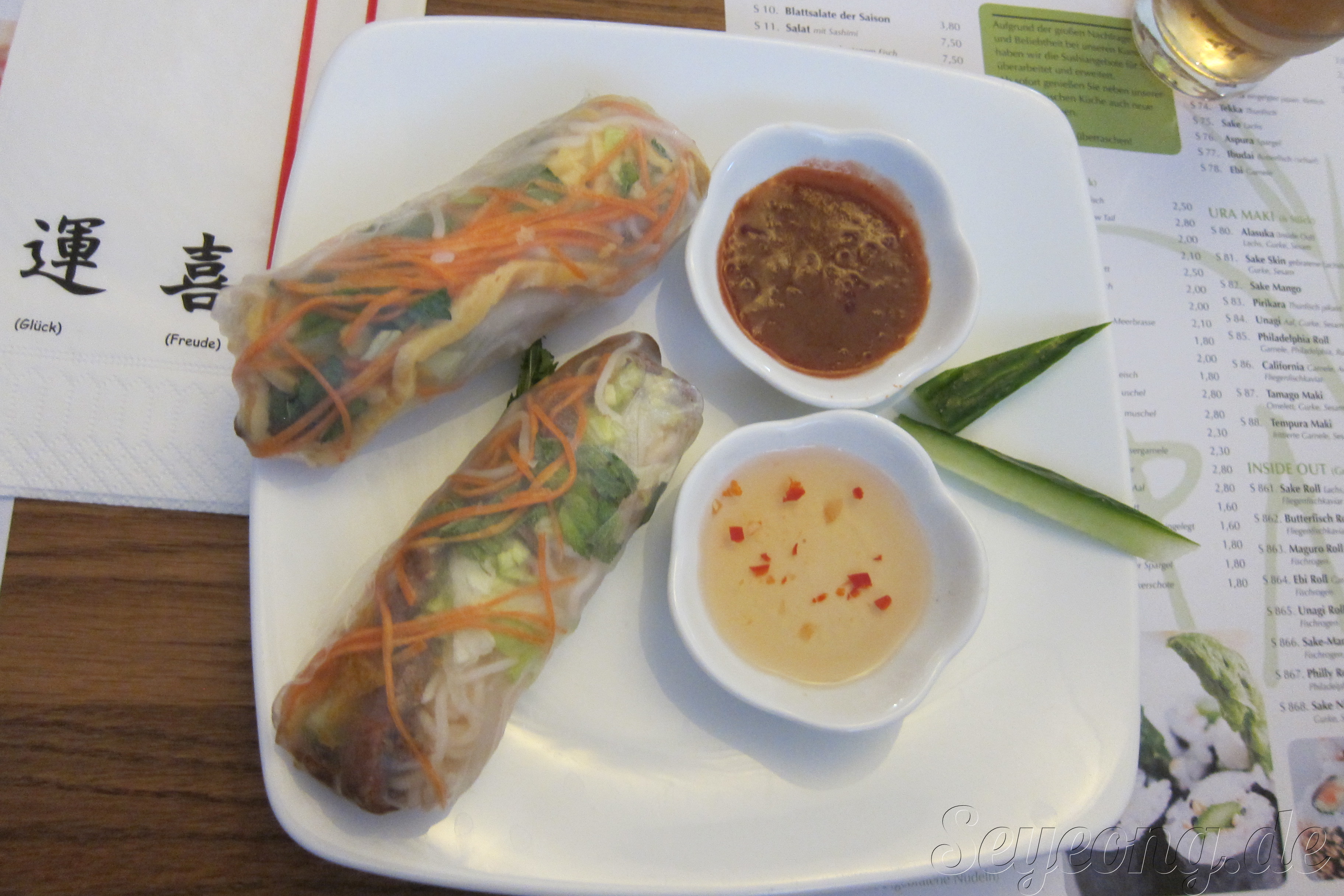스프링 롤과 쌀국수, 오리 요리.