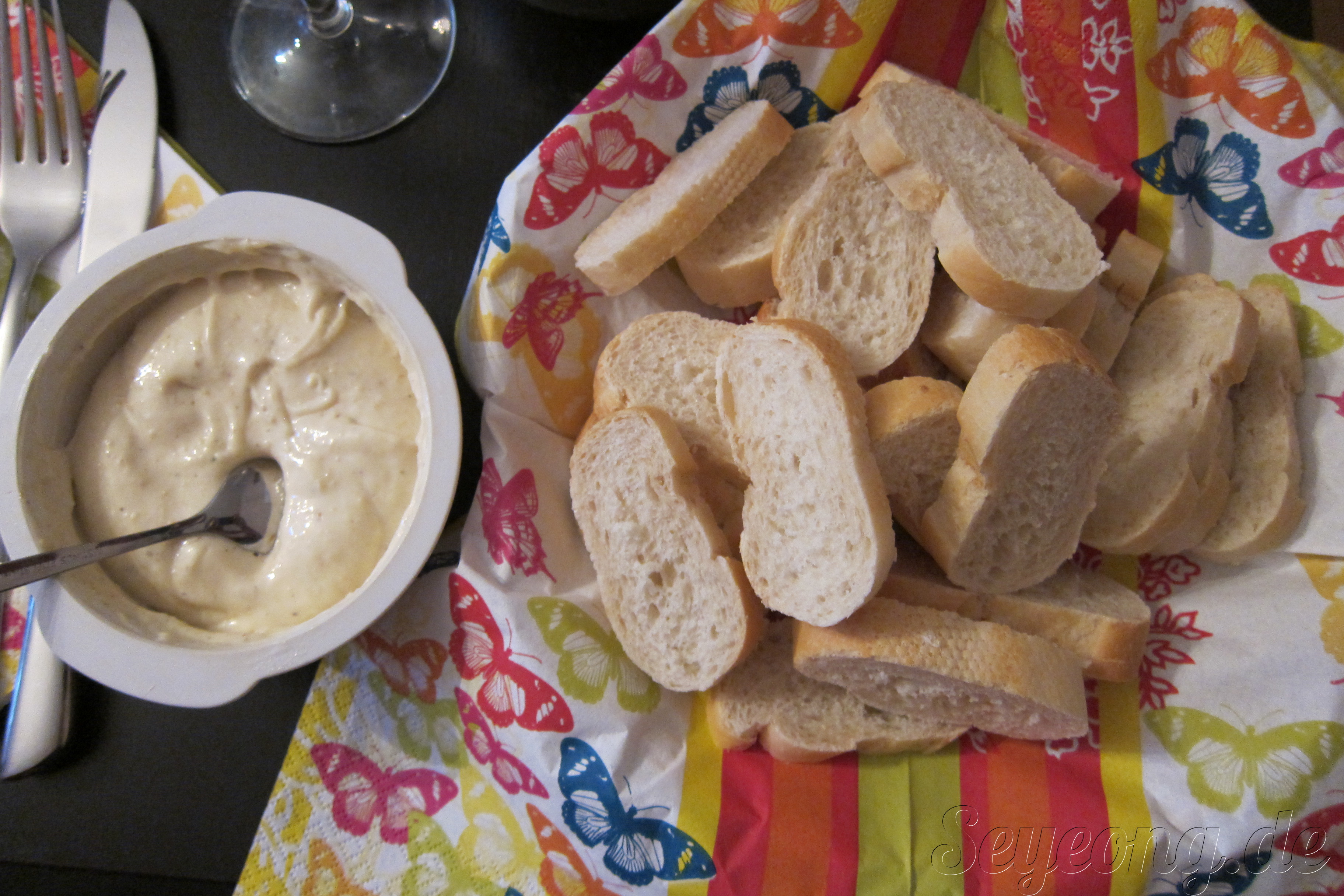 아이올리 딥. 마늘로 만든 딥핑으로 바게뜨에 찍어 먹는다.