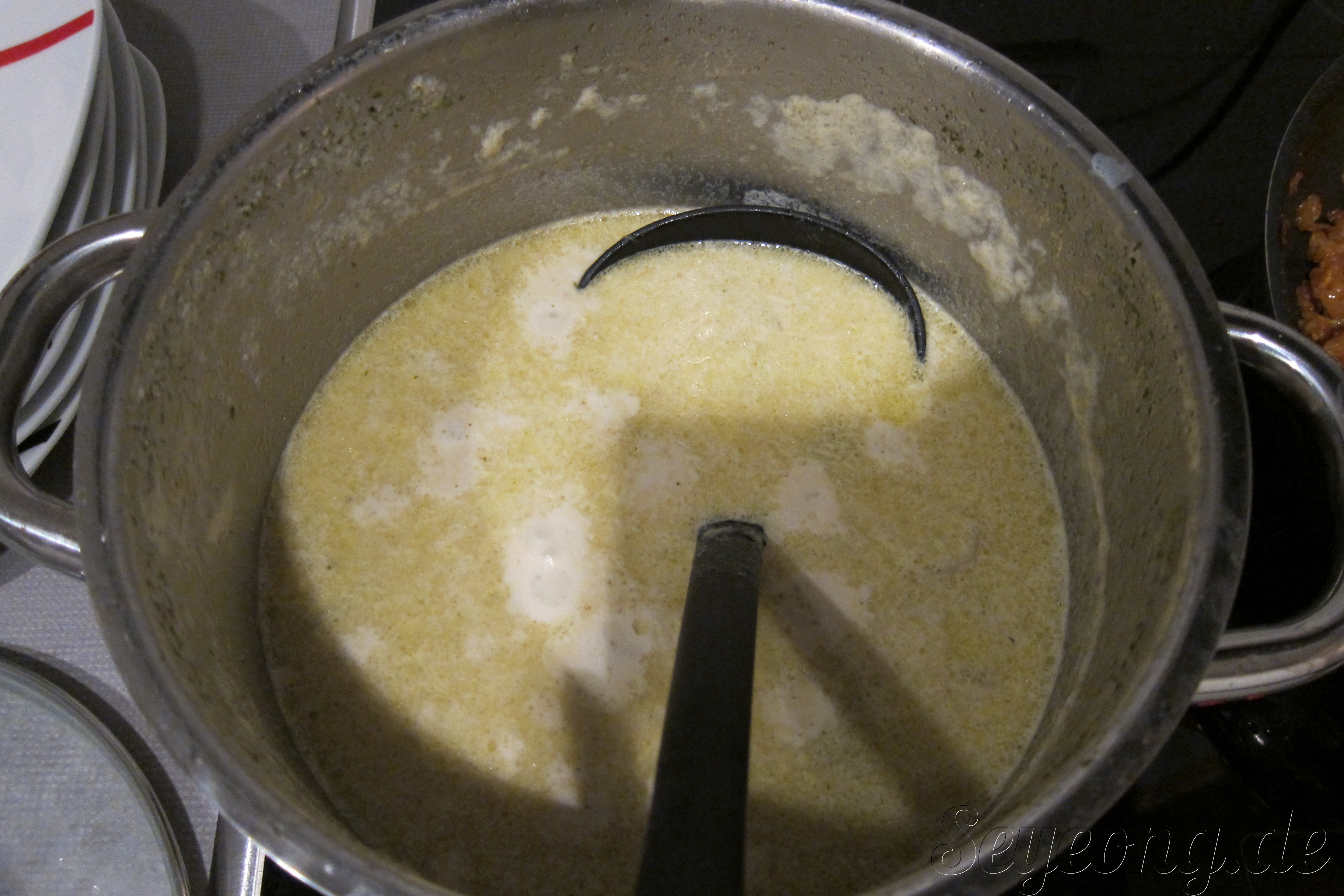 또 다른 전채음식으로 플로리안이 준비한 치즈 스프. 안에 다양한 야채와 고기가 들어 있다.