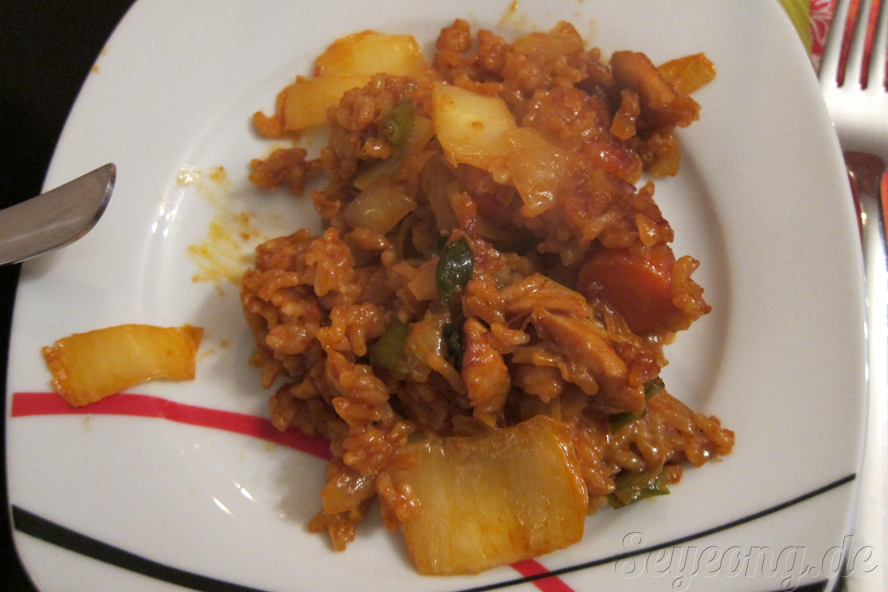 한국 음식으로 준비한 닭갈비 볶음밥.