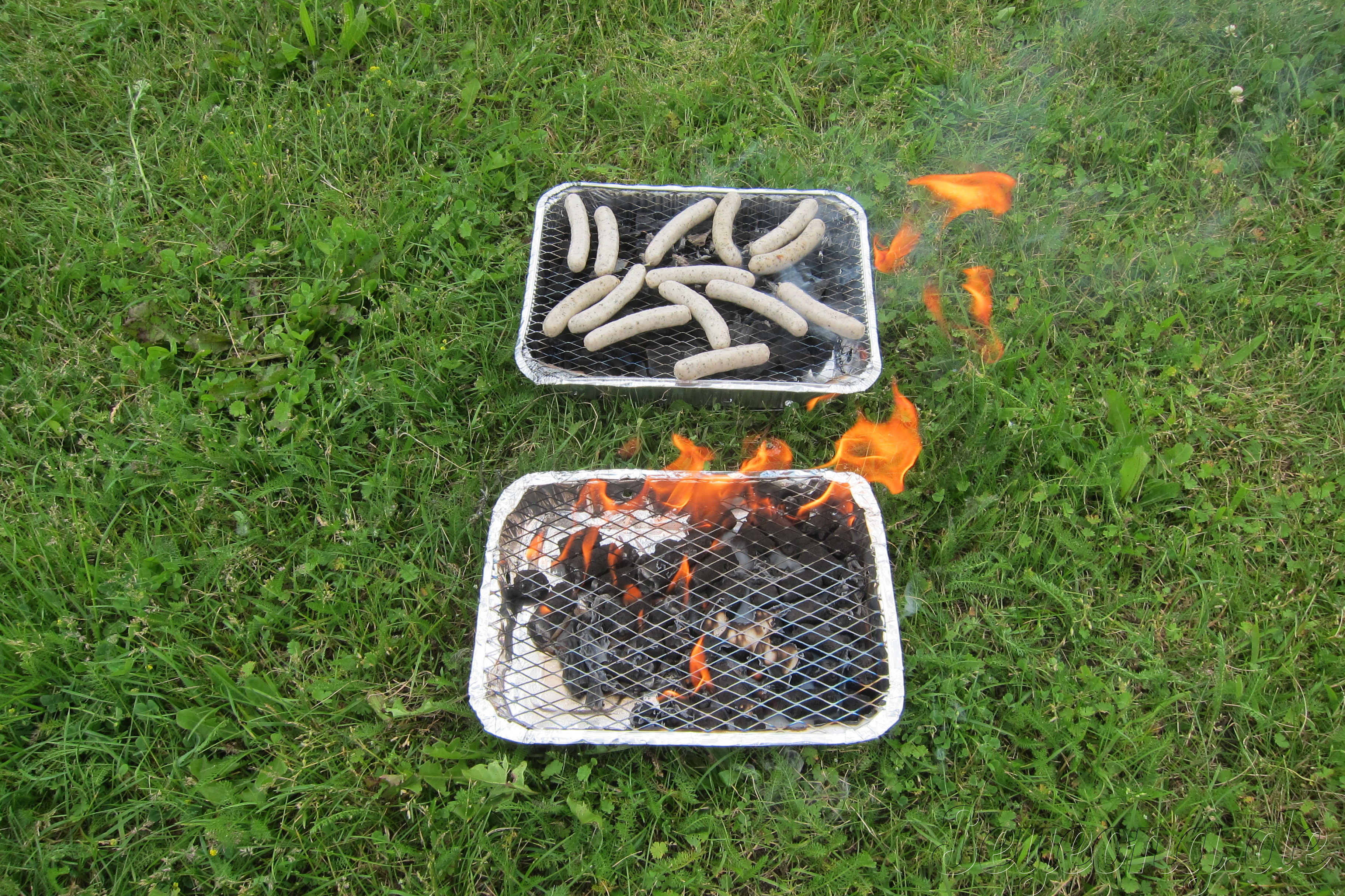 잘 익고 있는 뉘른베르크 소세지.