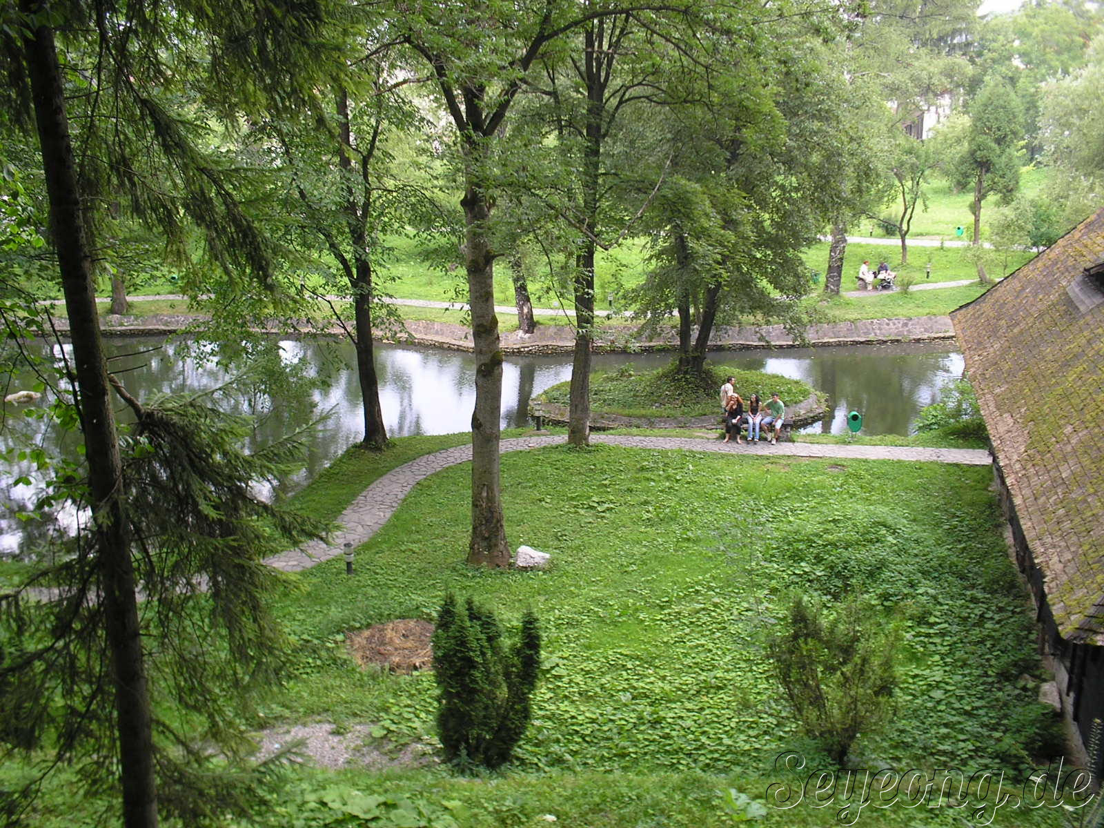 성 옆의 공원인듯한 푸른색 잔디가 이 성의 음흉함을 덜어주는듯..