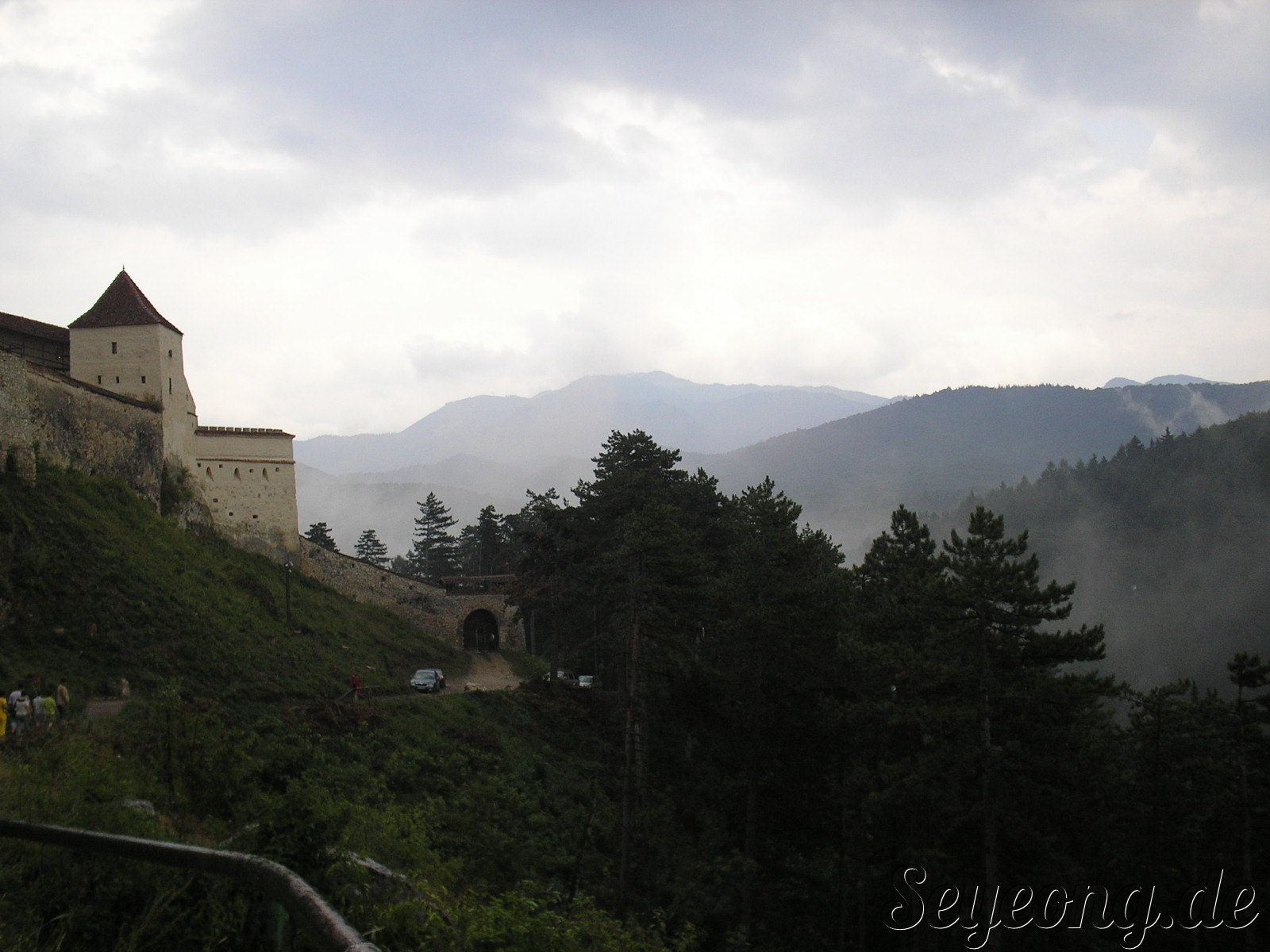 비로인해 김이 모락모락나는 산을..폐허가 되어버린 성벽에서 내려다 보았다 =_=