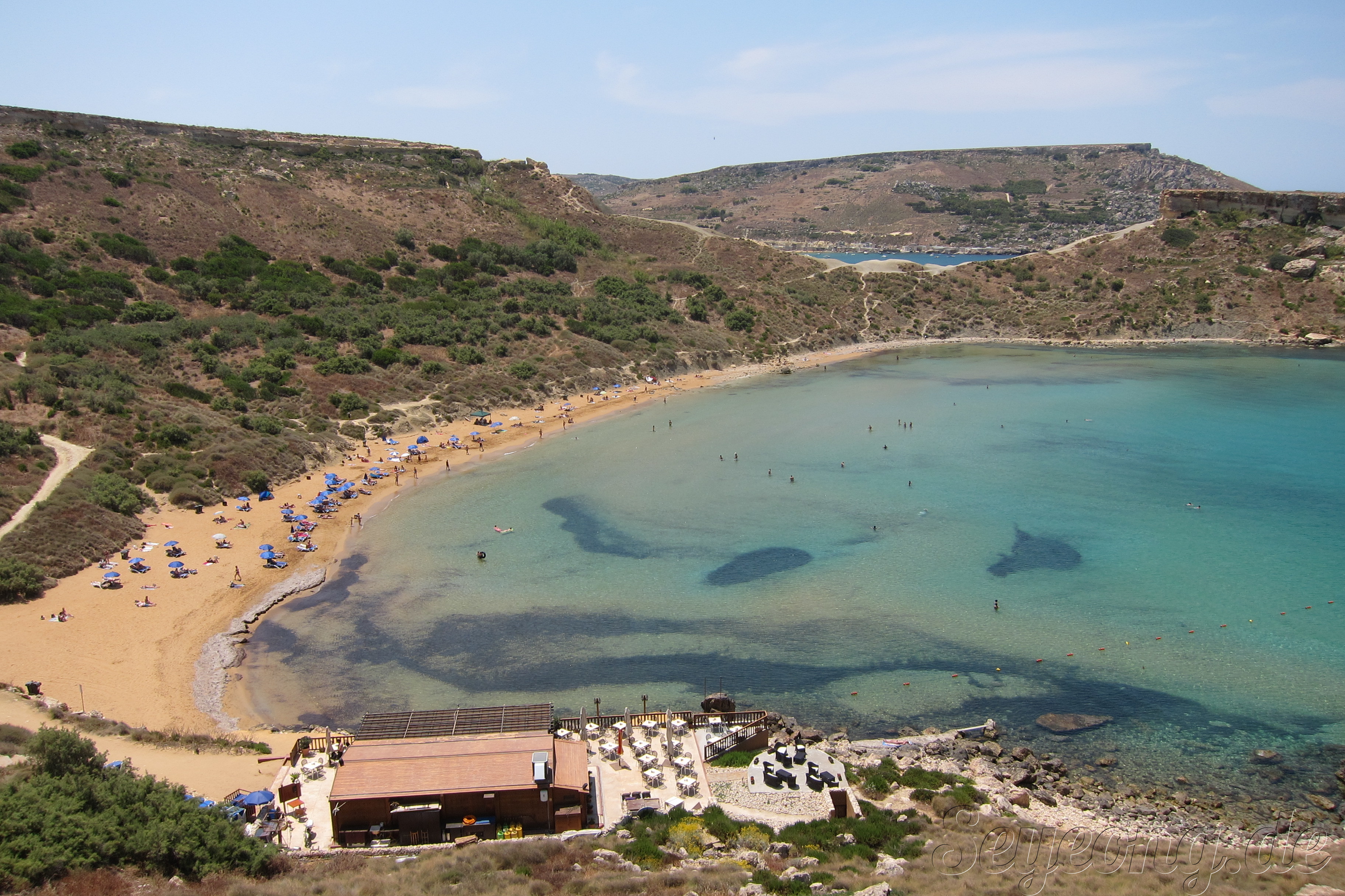 이곳에서는 작은 배를 통해 블루 라군이라고 불리는 몰타와 고조 섬 사이의 해수욕장을 방문할 수 있다.