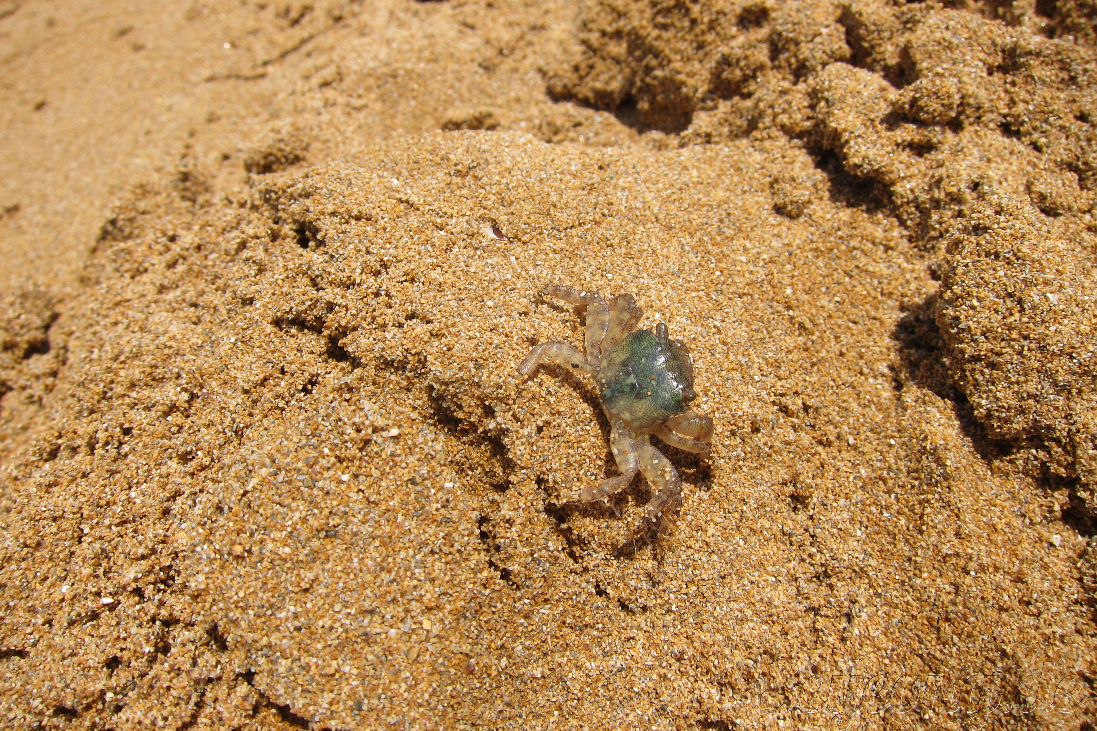 해변에 누우니 보이는 작은 꽃게들.