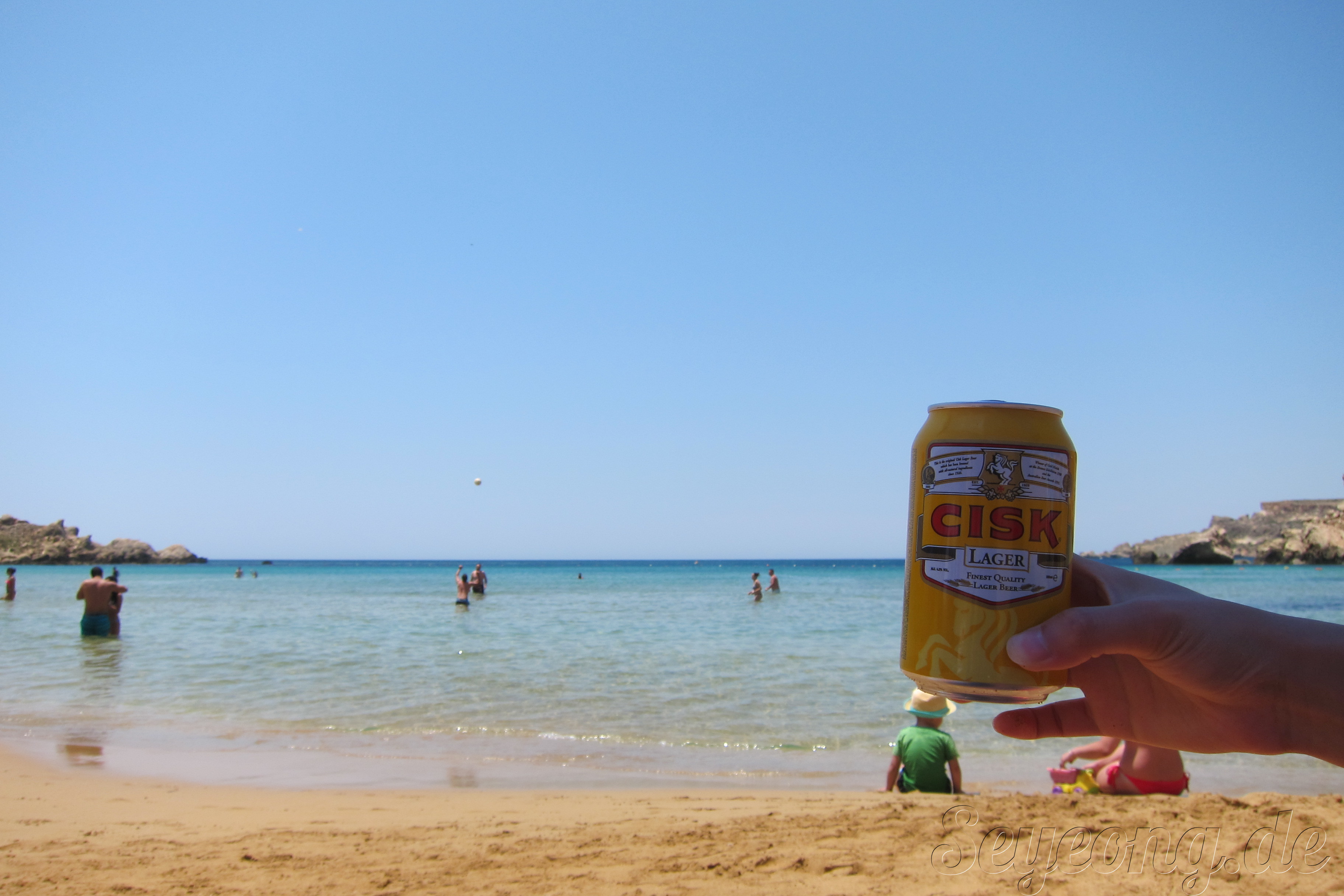 해변에서 몰타 맥주 CISK를 빼놓을 수 없다.