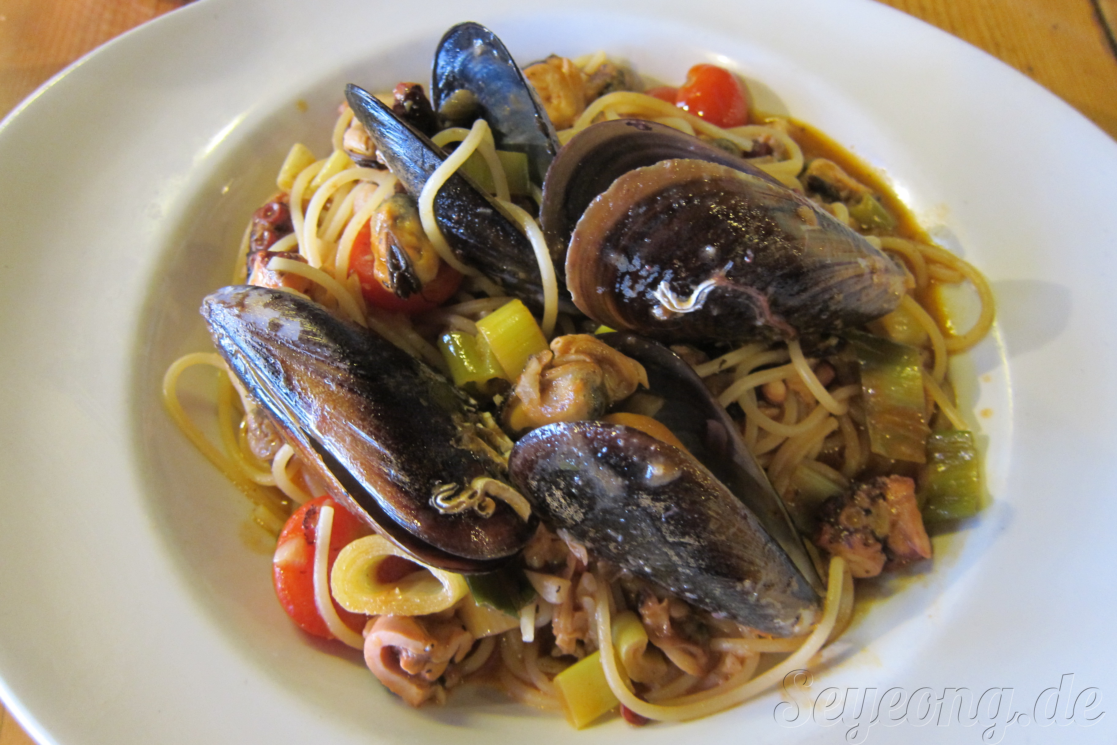 오늘은 해산물 스파게티. 이렇게 많은 해산물이 담긴 스파게티는 처음. 소스도 입에 척척 감긴다.