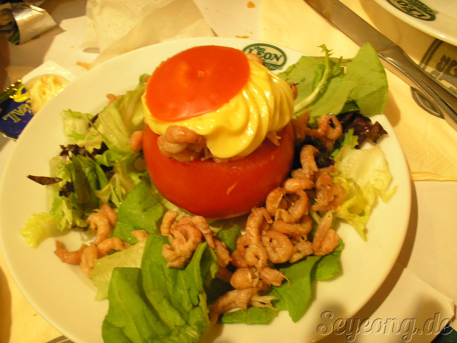 내가 주문한 해산물 요리. 새우 소스가 가미 되었다.