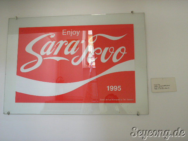 사라예보를 알리는 듯한 반어적인 코카콜라 광고와의 조화..