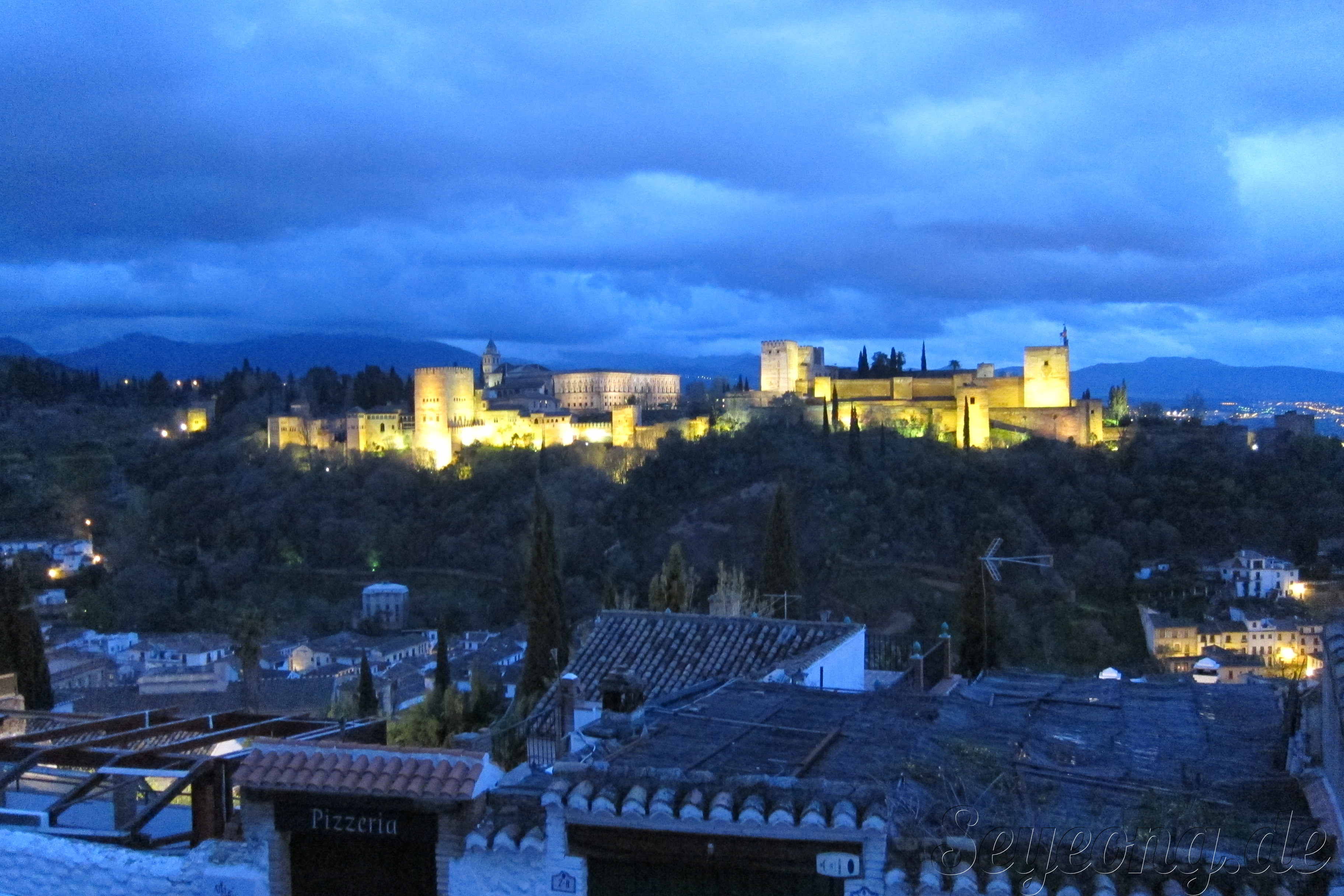 해거 저물면서 보이는 알함브라 궁전. 그라나다 관광의 핵심 포인트이기도.