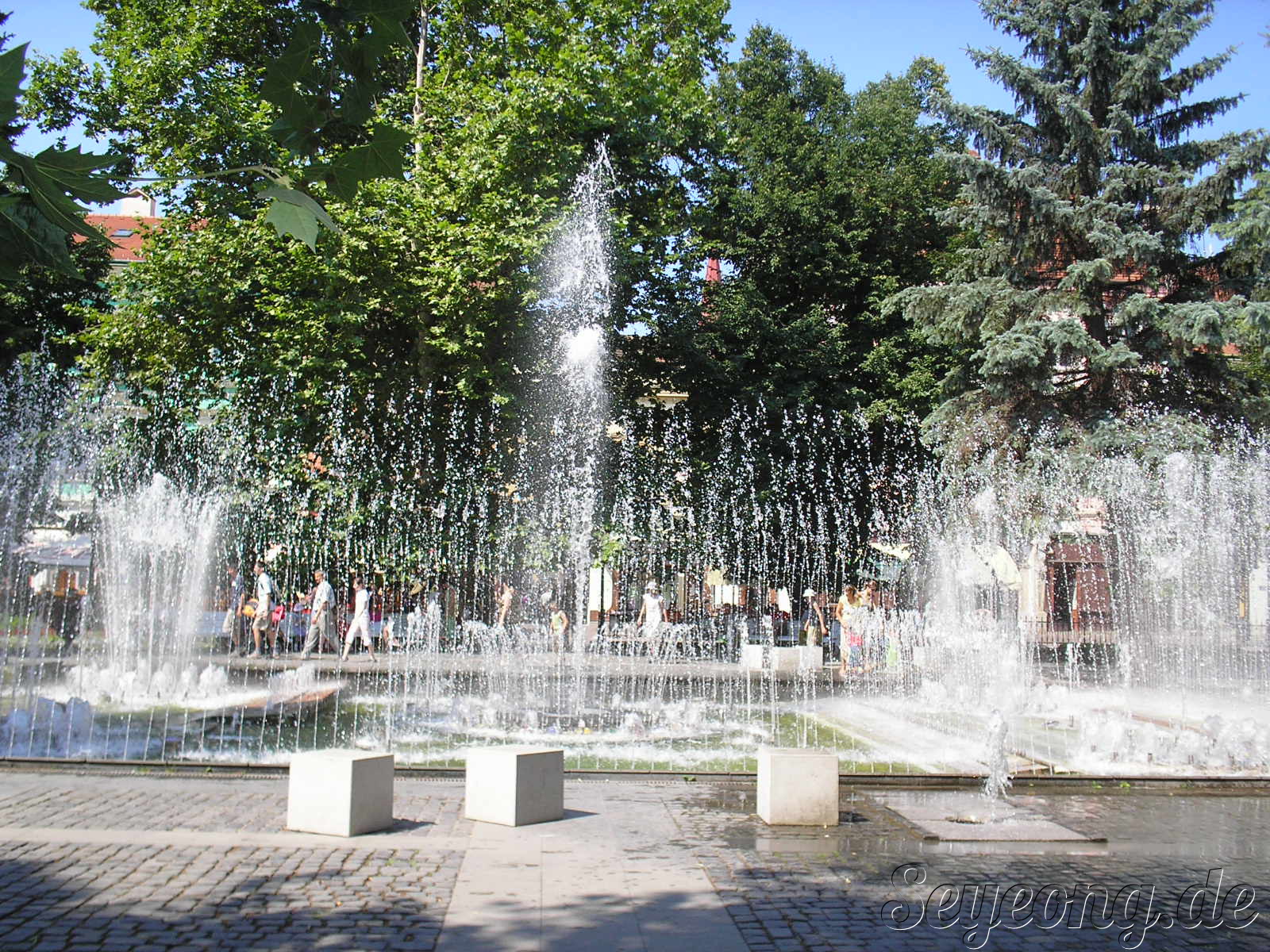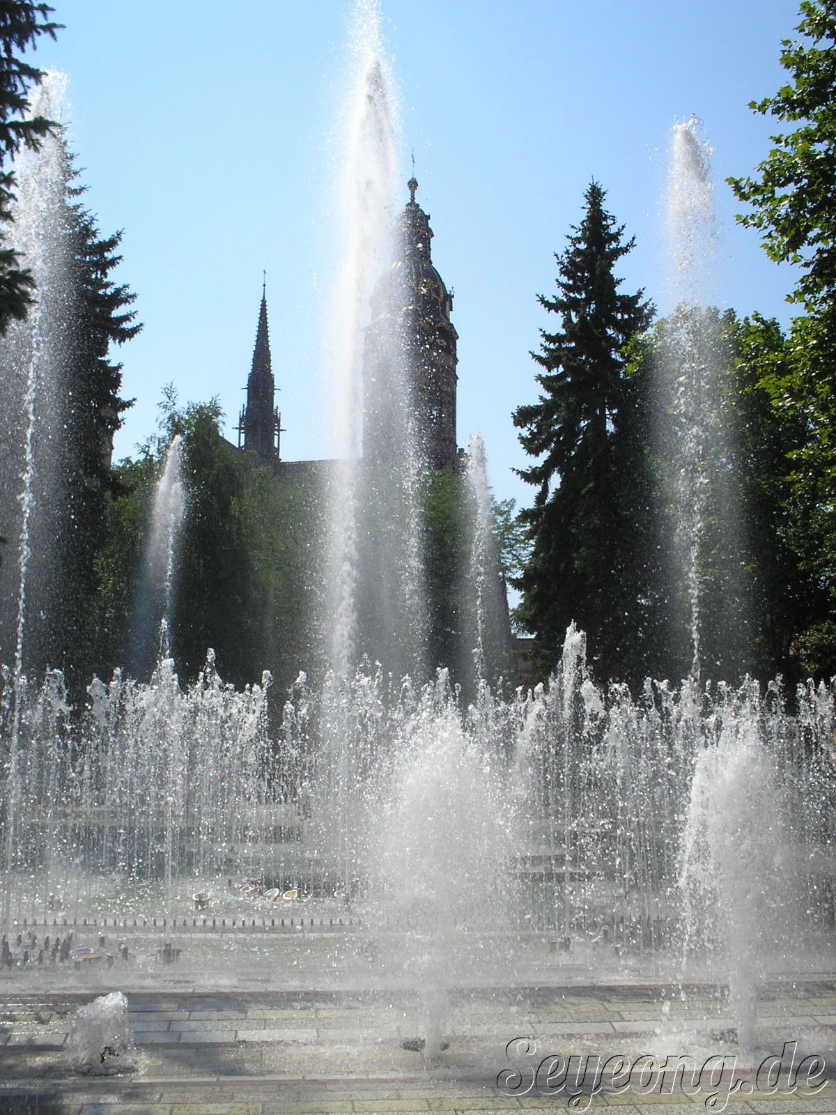 정말 작고 볼것 없다는 시내에서 아주 천천히 정말 시간이 남아 돈다. 땀 안나게 그늘 진 곳만을 향해 걷다가 인포에서 정보 좀얻고 조금 걸어가니 노래에 맞추어 물이 뿜어져 나오는 분수가 보인다.