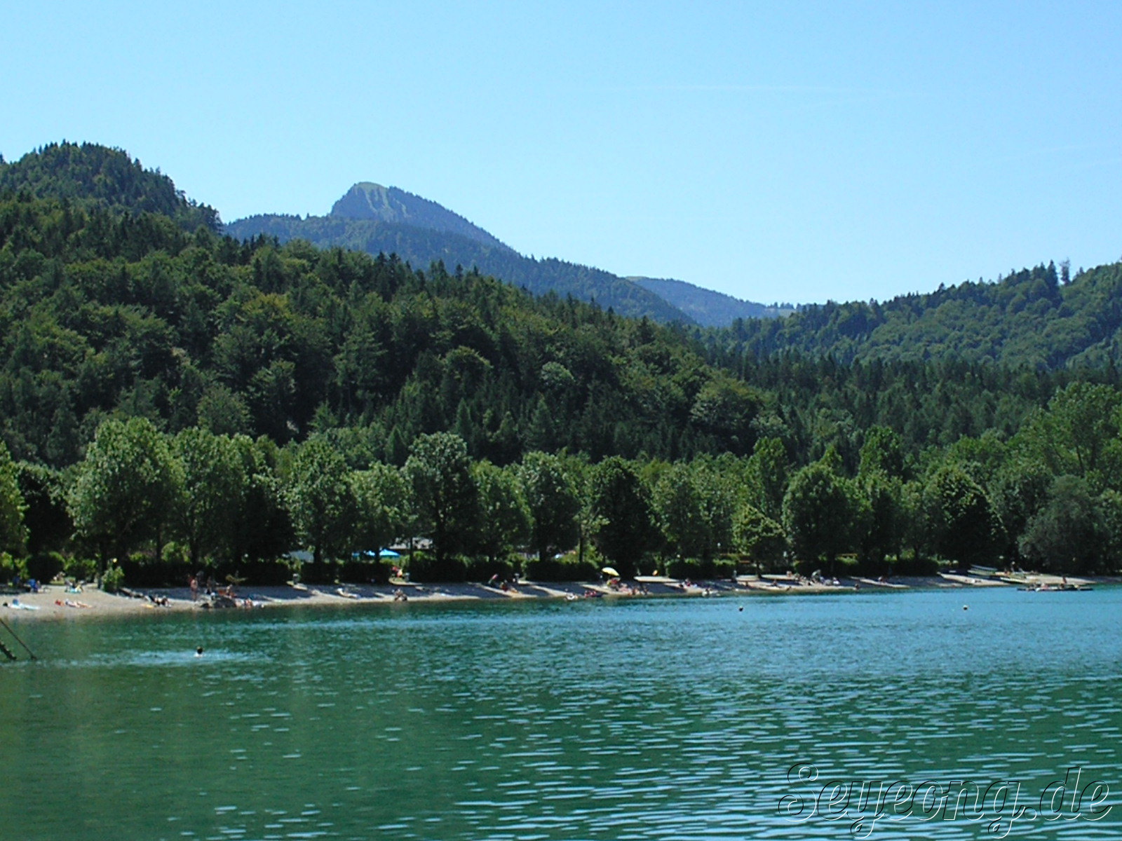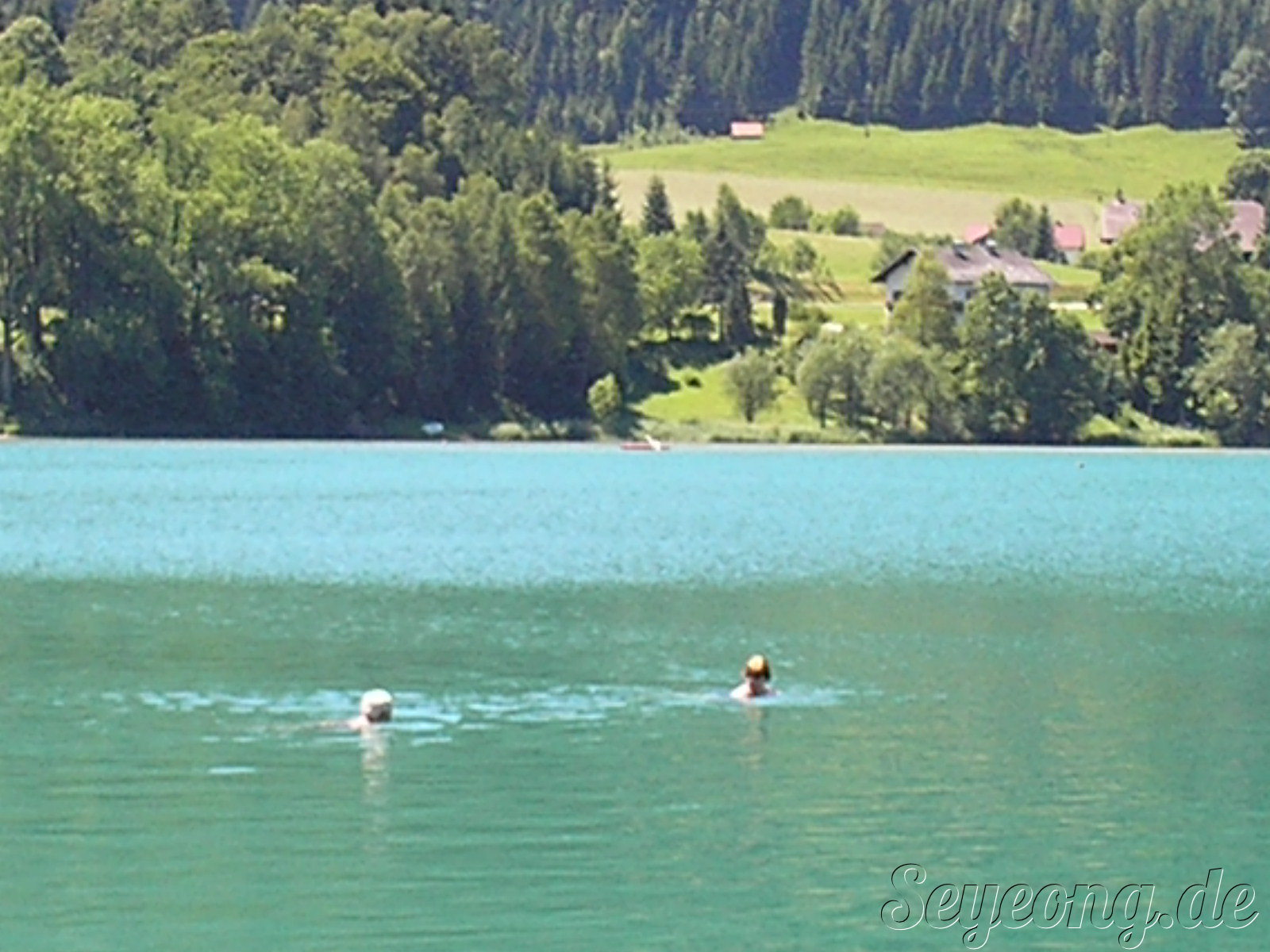 People swim in Fuschl Lake