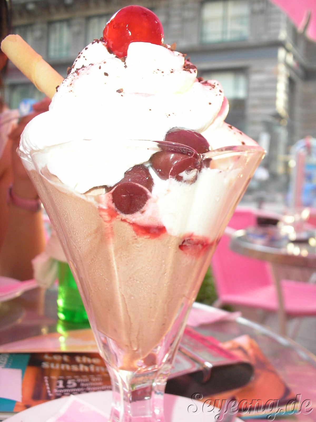 그래서 케른트너거리로 돌아가 더운 나머지 비싼 아이스크림을 먹었다.
