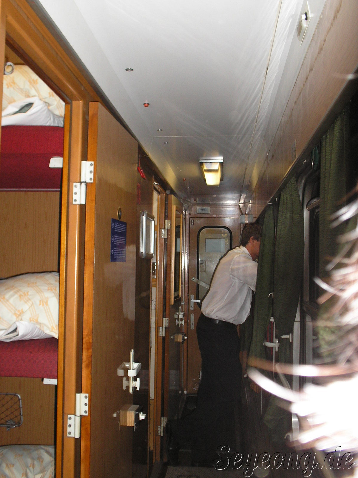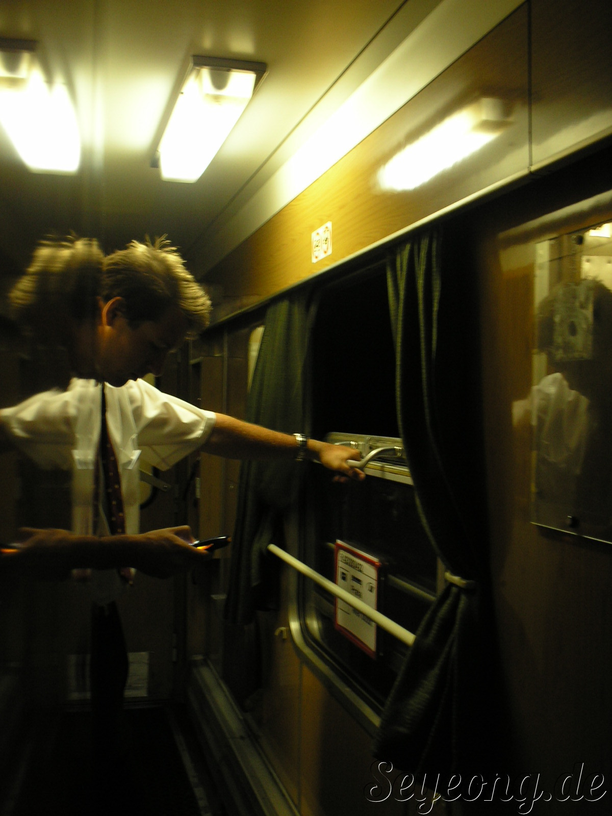 내가 세면실에 모르고 떨어뜨린 칫솔통을 찾아서 갖다주고, 침대가 가라앉았을때도 재빨리 도왔다. 무거운 캐리어를 올리는 것을 도와주는 걸로 보아 이 사람 너무 착할 꺼 같다. 사실 왠만한 차장은 차표 검사만 하지 이런 일은 하지 않는다.