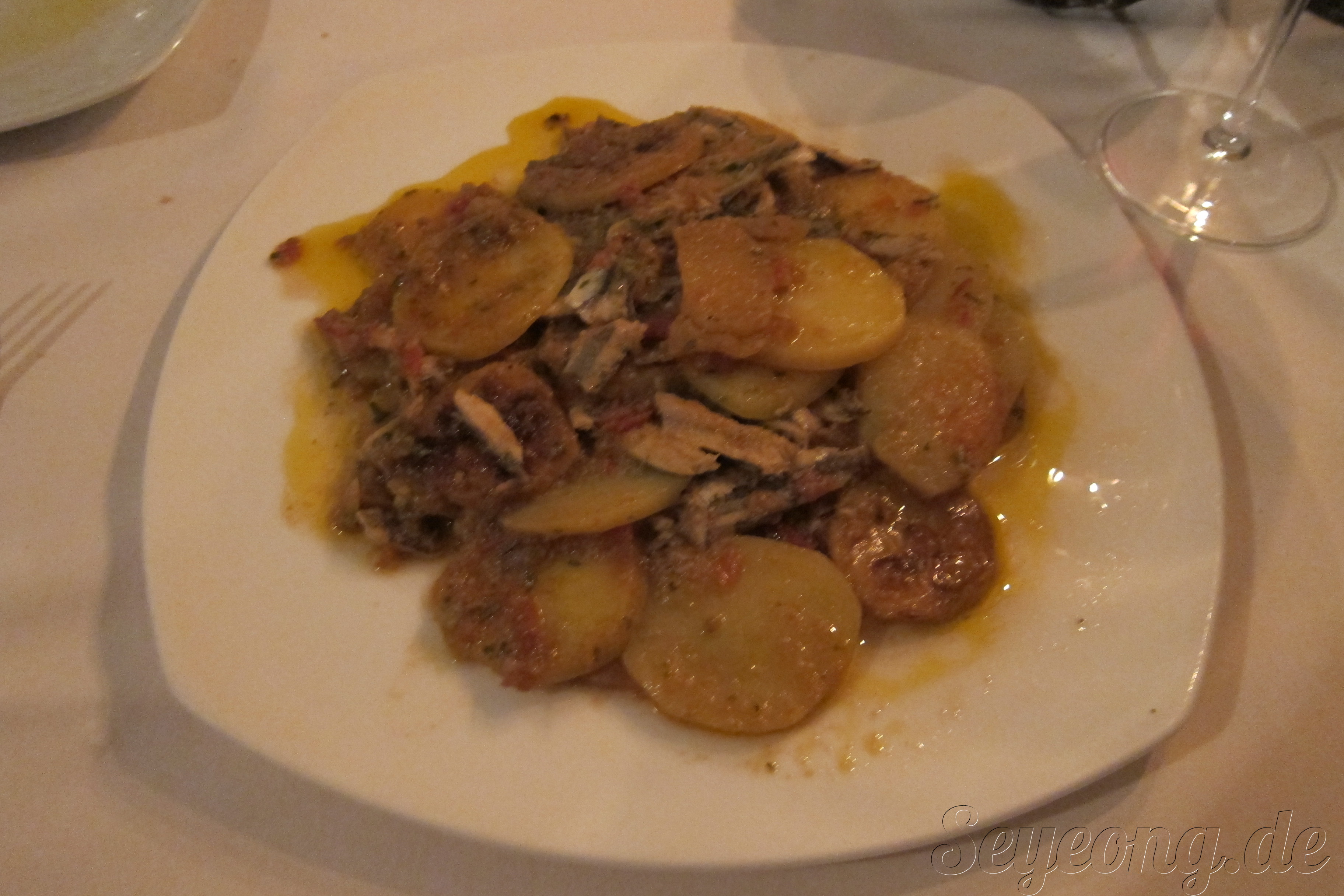 토마토와 감자로 요리된 멸치.