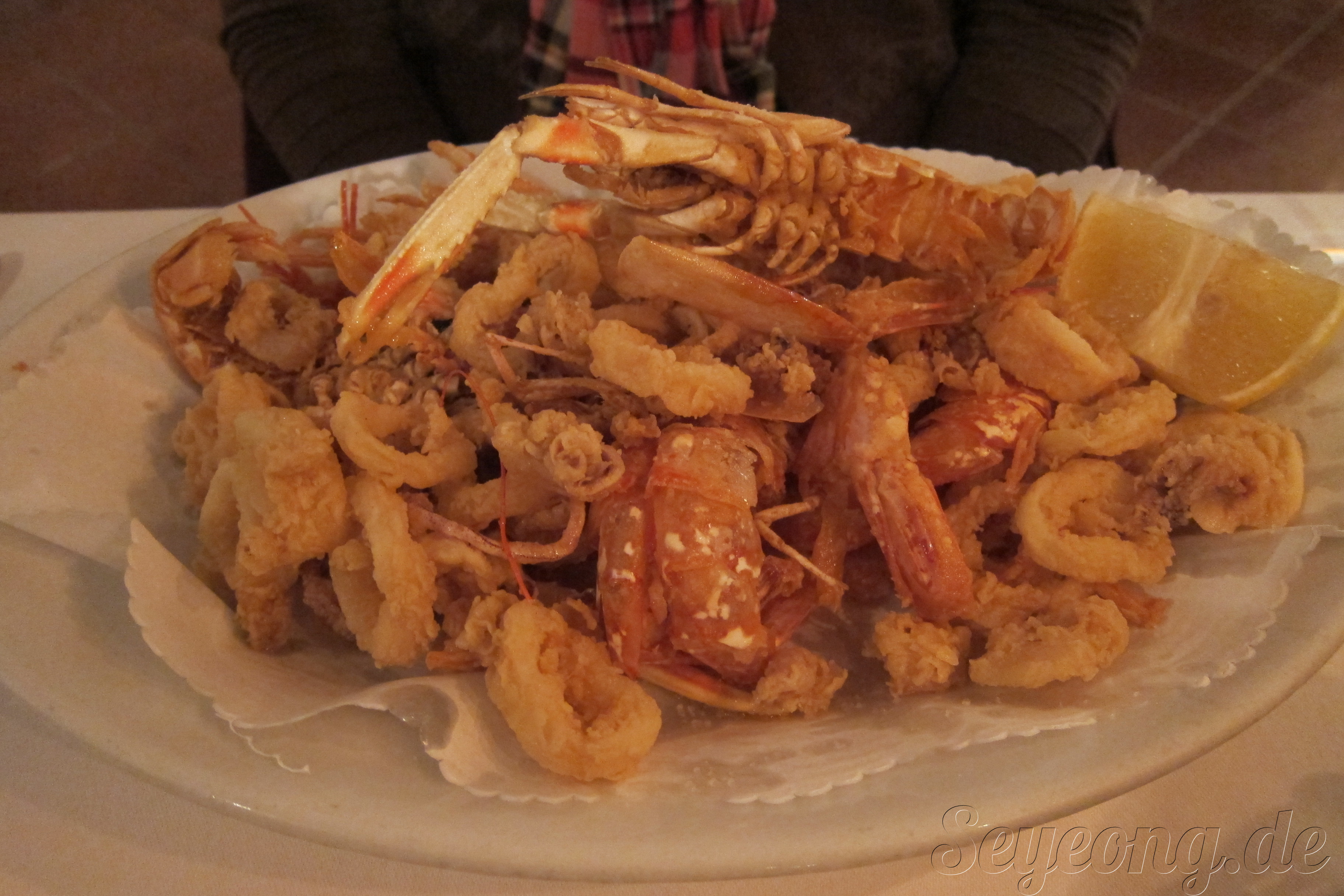 여러 가지 해산물을 튀긴, 정말 싱싱하고 바로 튀긴 해산물이라 그 맛은 일품이다.