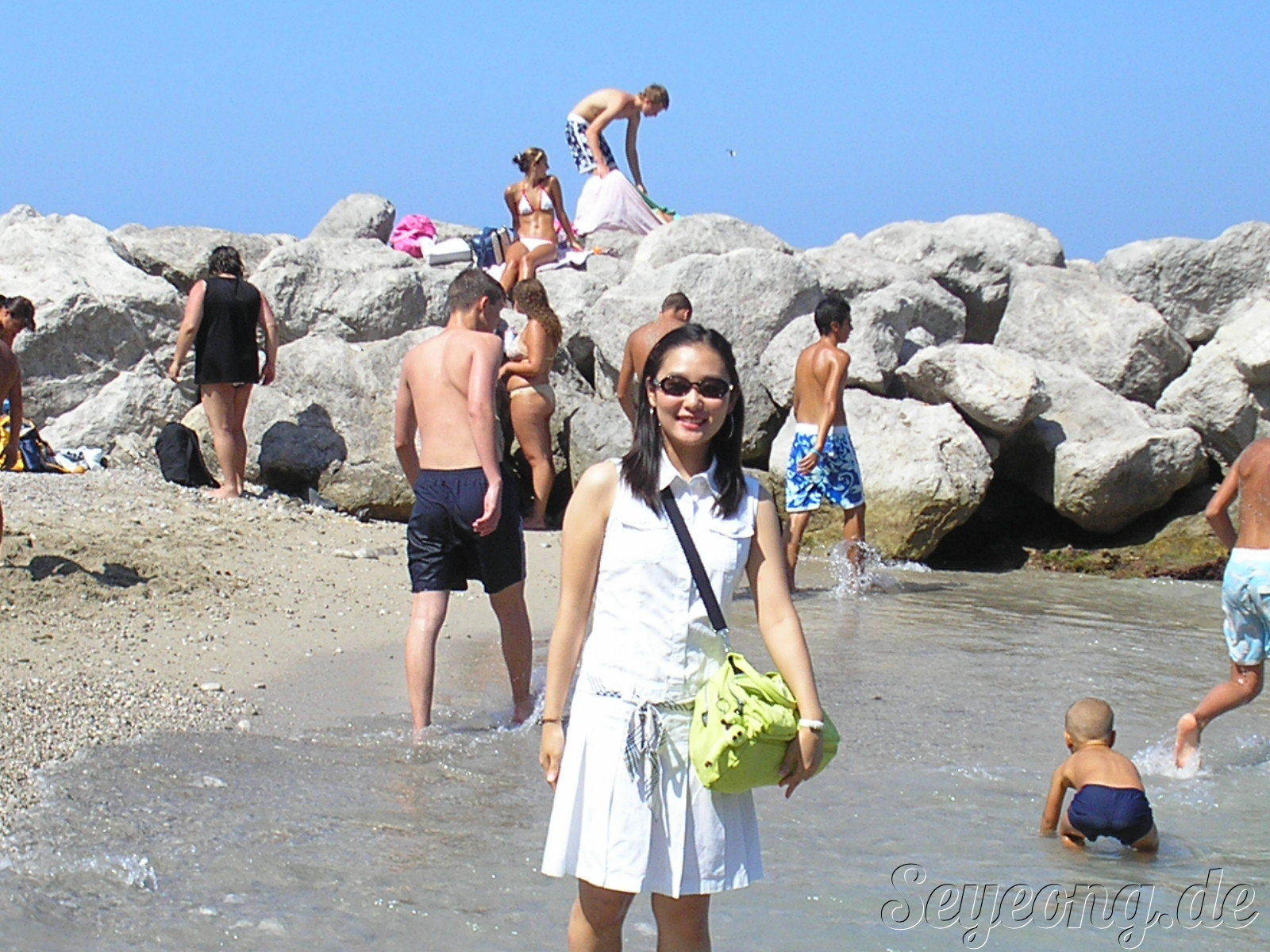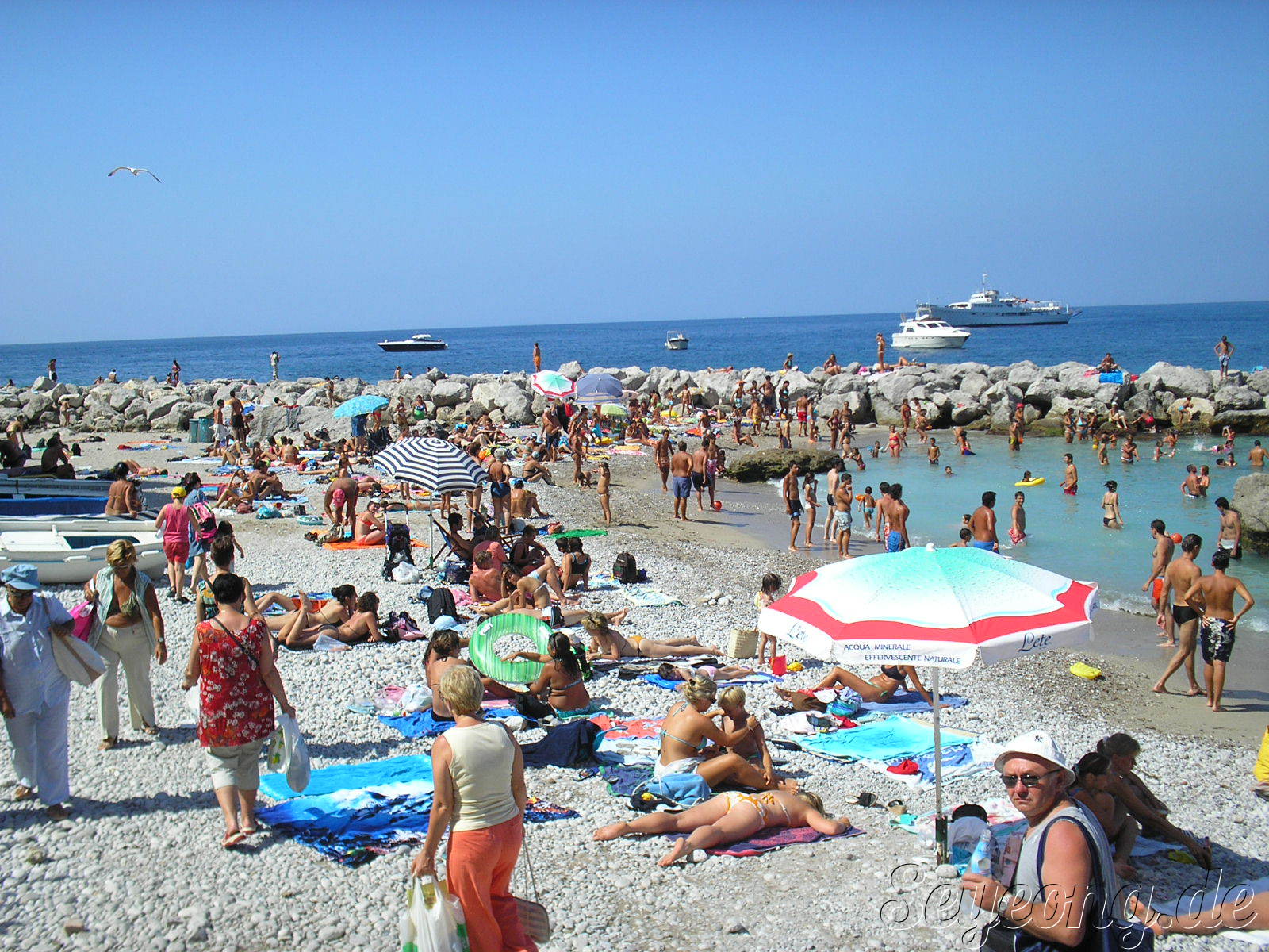 그러면서 우리는 헐리우드 스타들도 놀러온다는 카프리 해변을 돌아다니며, 해수욕을 즐기는 이들을 구경하며, 이들 사이를 비집고 다니며 자갈 해변을 거닐었다.