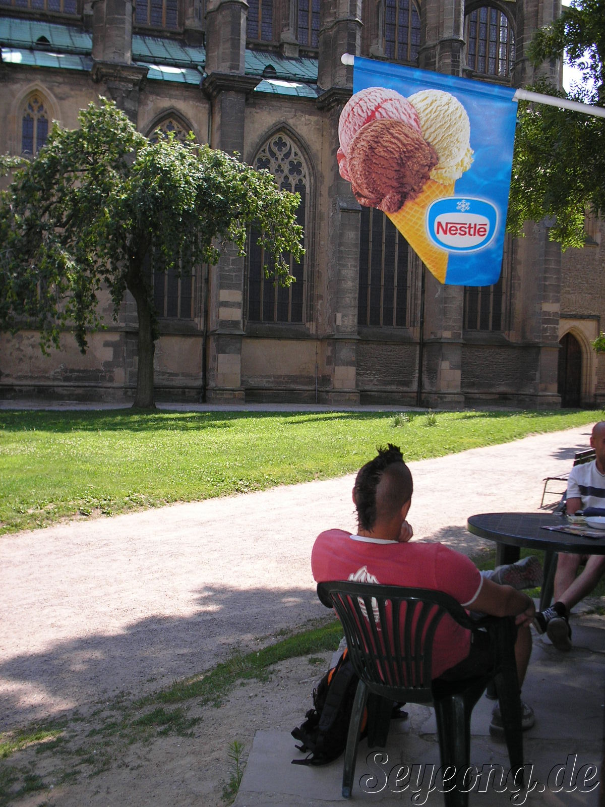 아이스크림을 먹다 발견한..개성 넘치는 젊은이의 헤어스타일이란~~